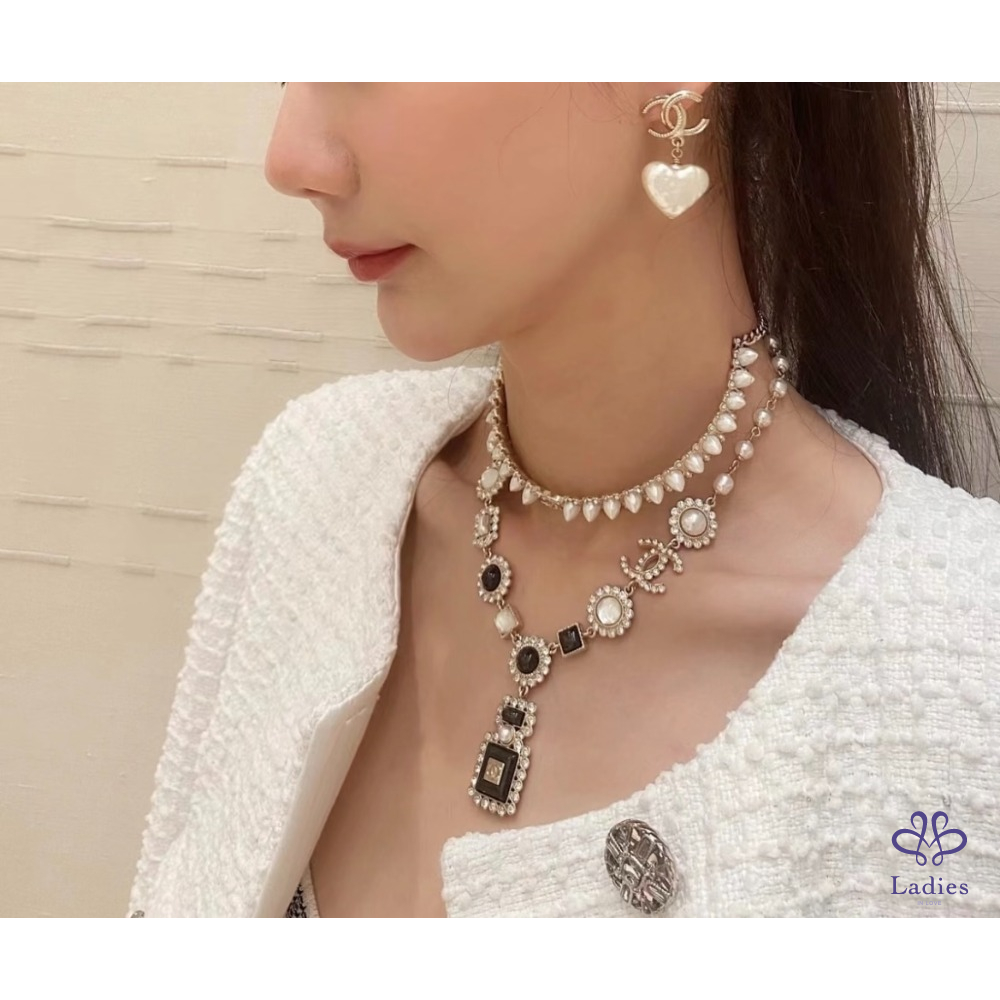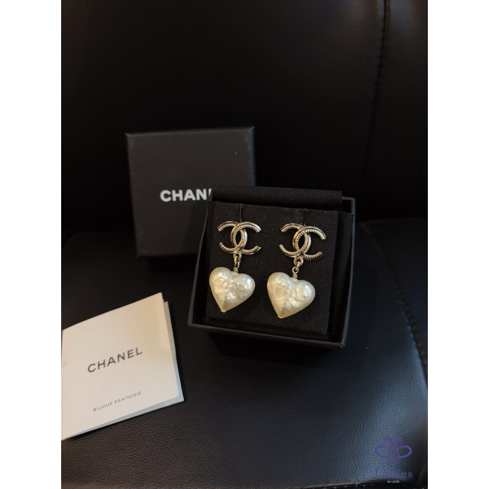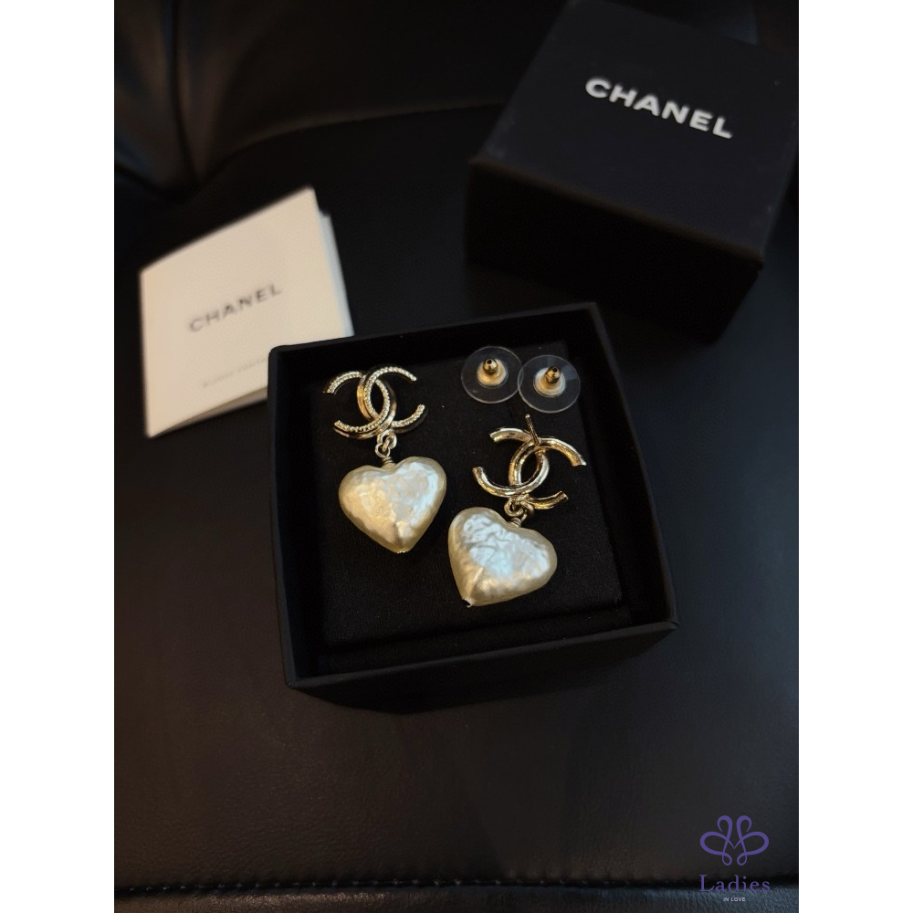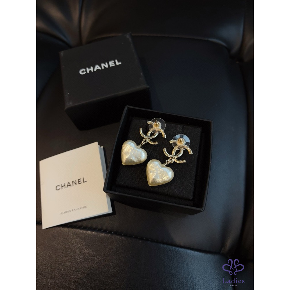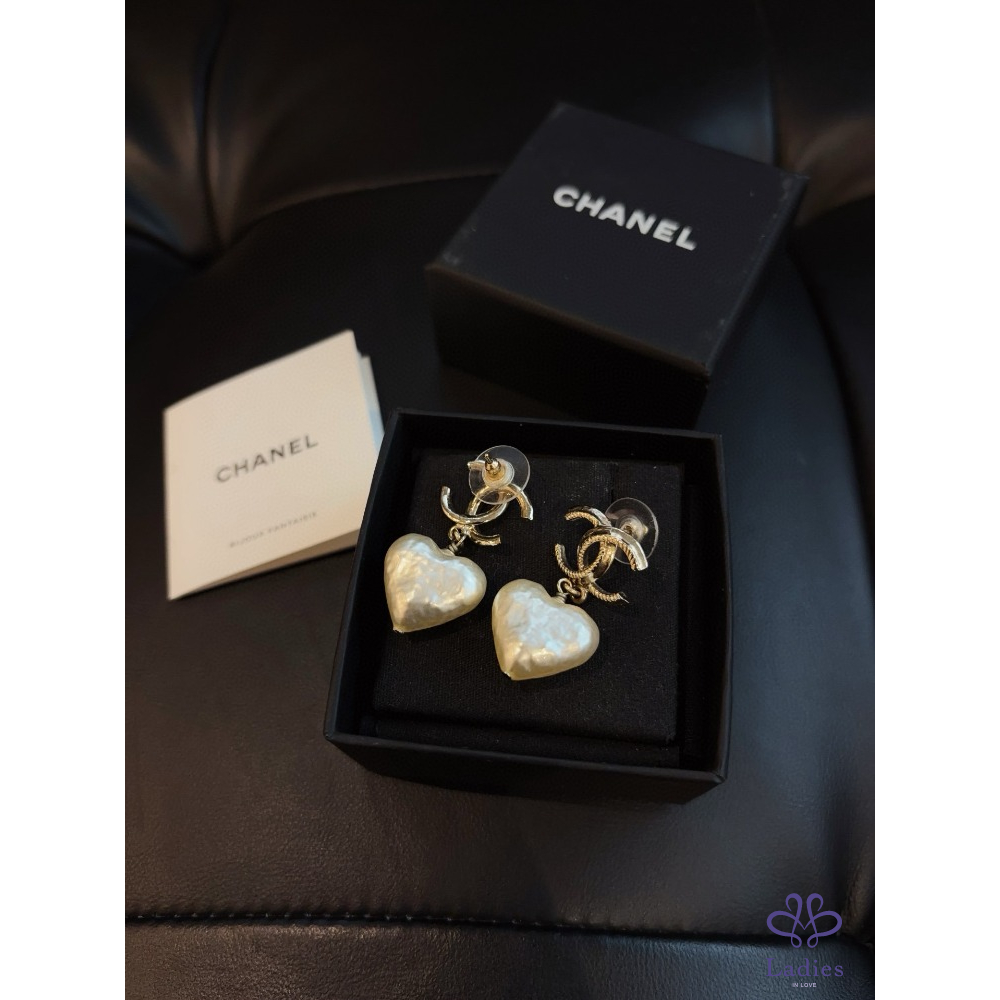 首頁 精品配件 CHANEL香奈兒 22V 淡金巴洛克雙 C 愛心珍珠耳環