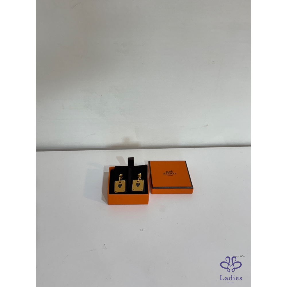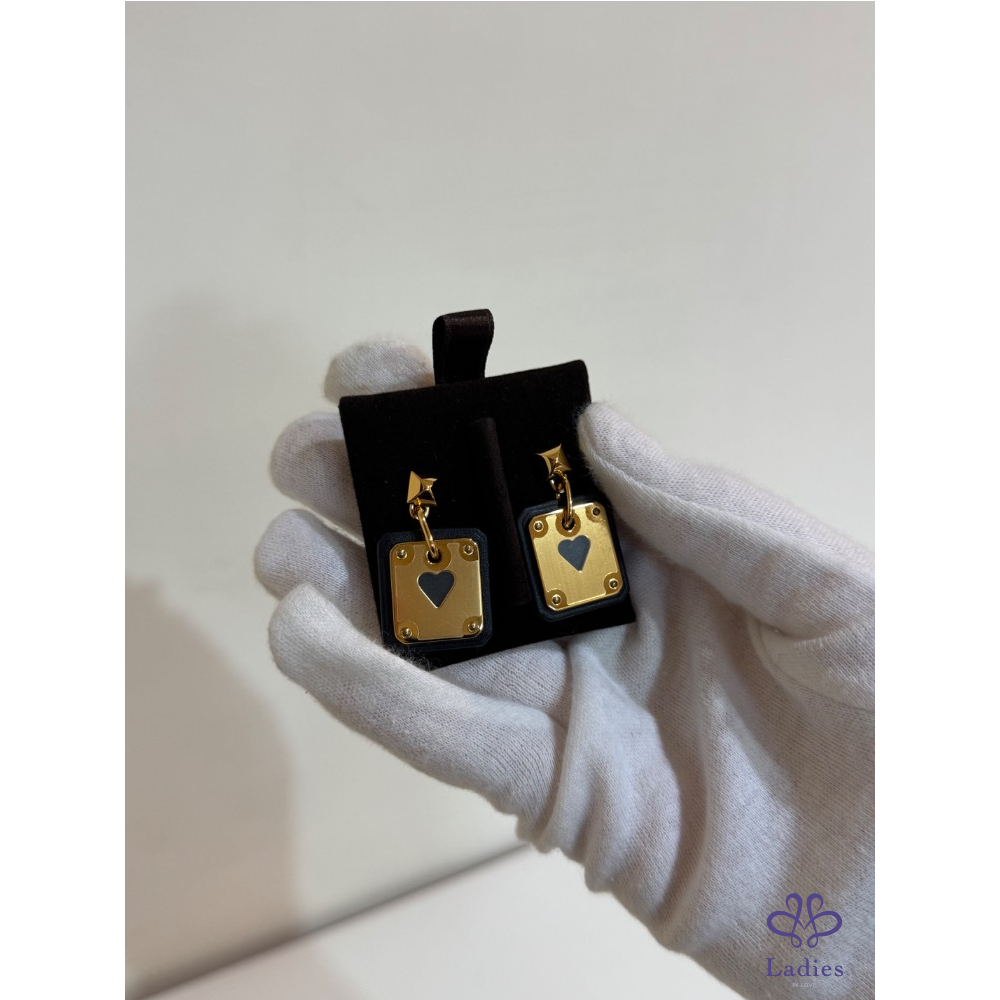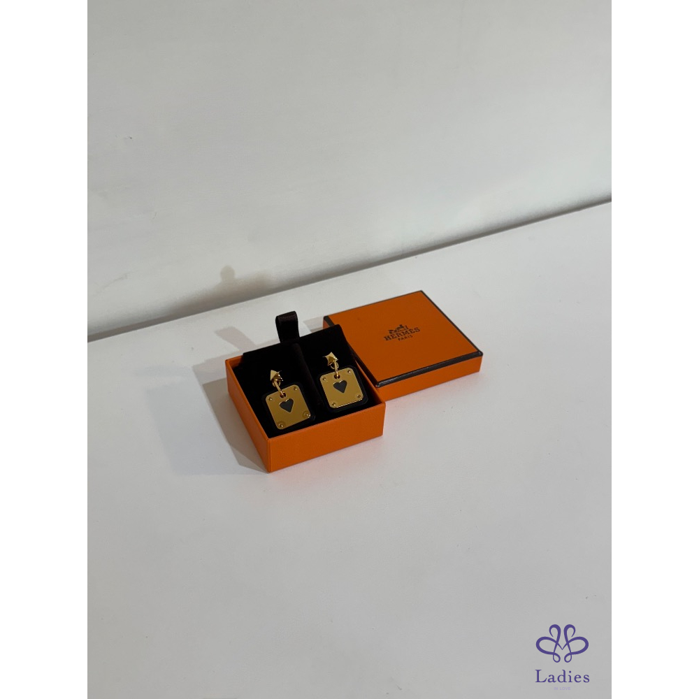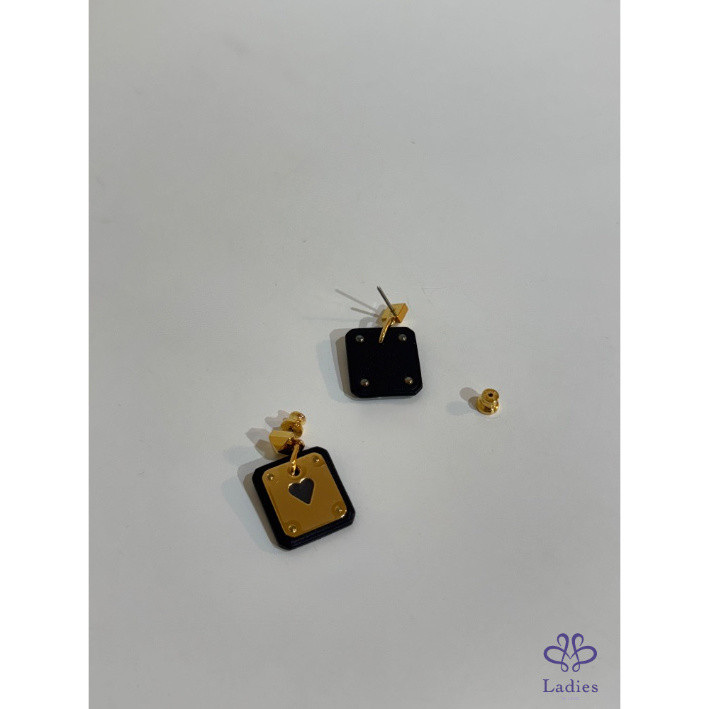 🖤♥️✨ Hermès As de Cœur 撲克牌耳環|黑 × 金