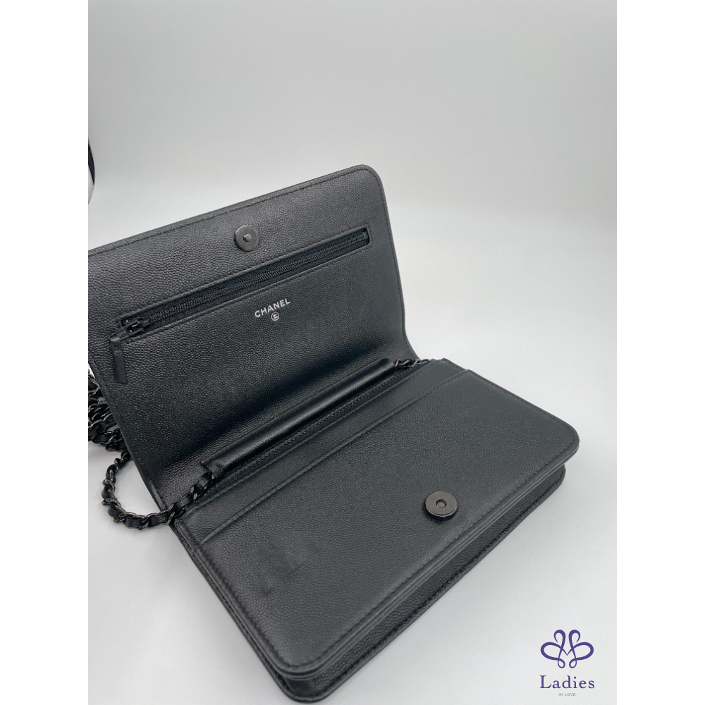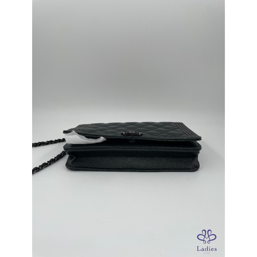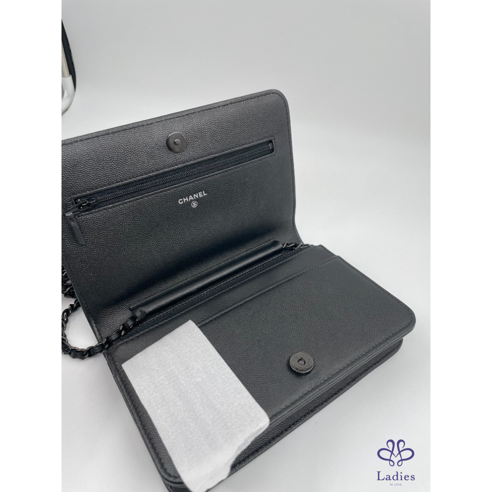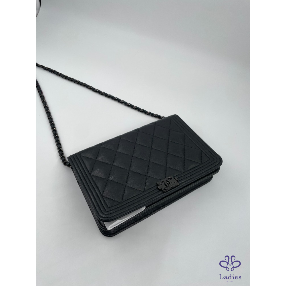 CHANEL 香奈兒 WOC 武士黑 Leboy 皮穿練 鏈條包 99❤️