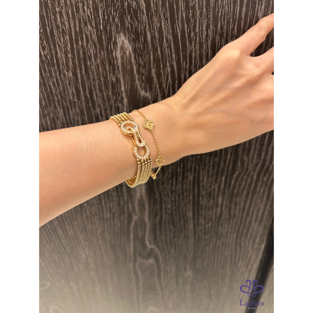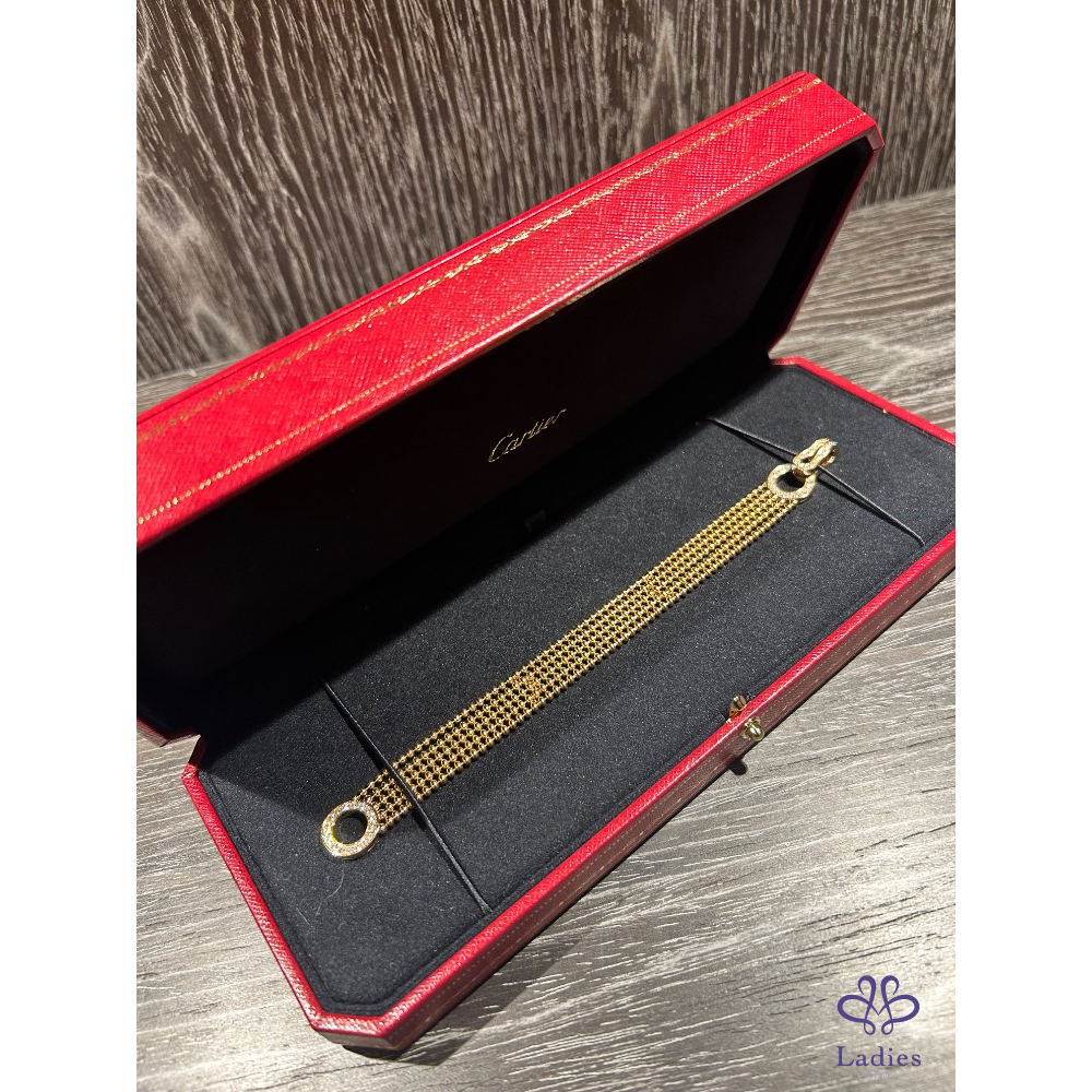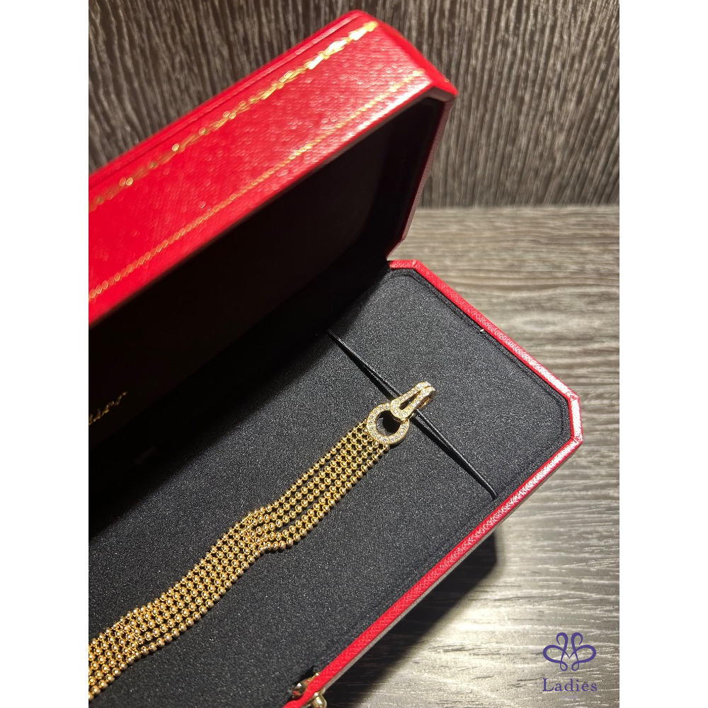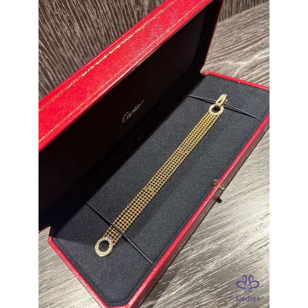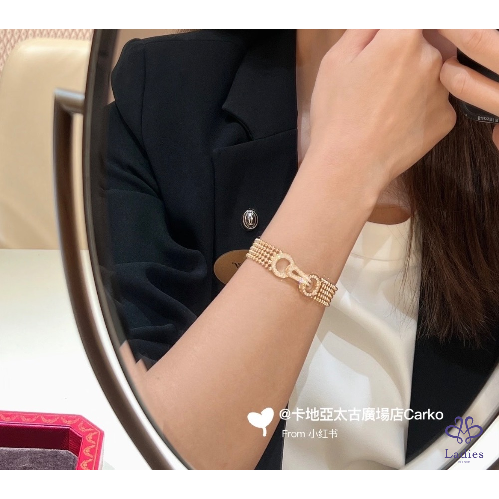 產品信息 A027671 AGRAFE手鏈,半鋪鑲鑽石猶如服裝般的珠寶,柔軟、流暢且輕盈,可輕鬆繫上、穿戴或解開按扣。卡地亞透過此系列,將日常細節注入高級訂製時裝的韻味,讓每一件作品都更顯璀璨。 戴過二三次,非常稀有珠寶系列。尺寸16 299800不含運不議價(原價50幾) 配件、盒、證書、購證