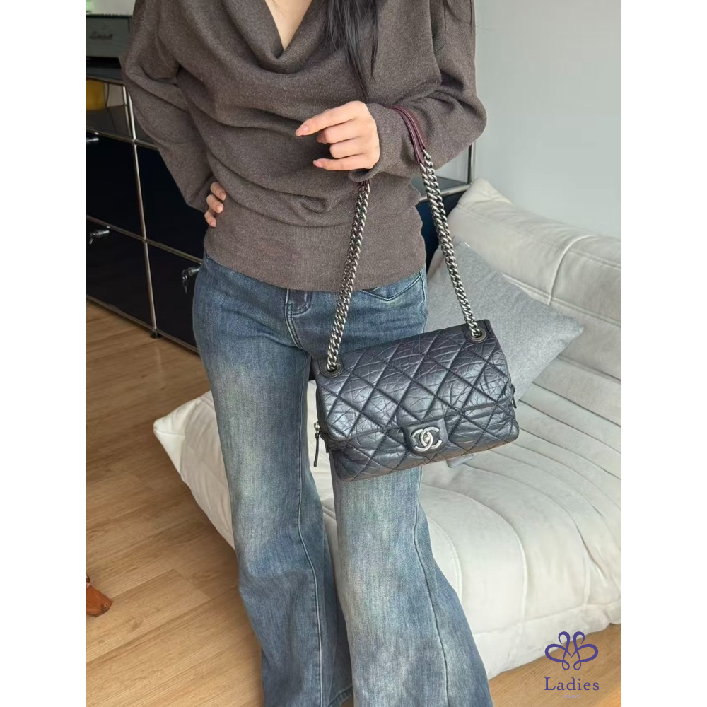 首頁 精品包包 CHANEL 香奈兒 黑銀孟買油蠟皮 CF