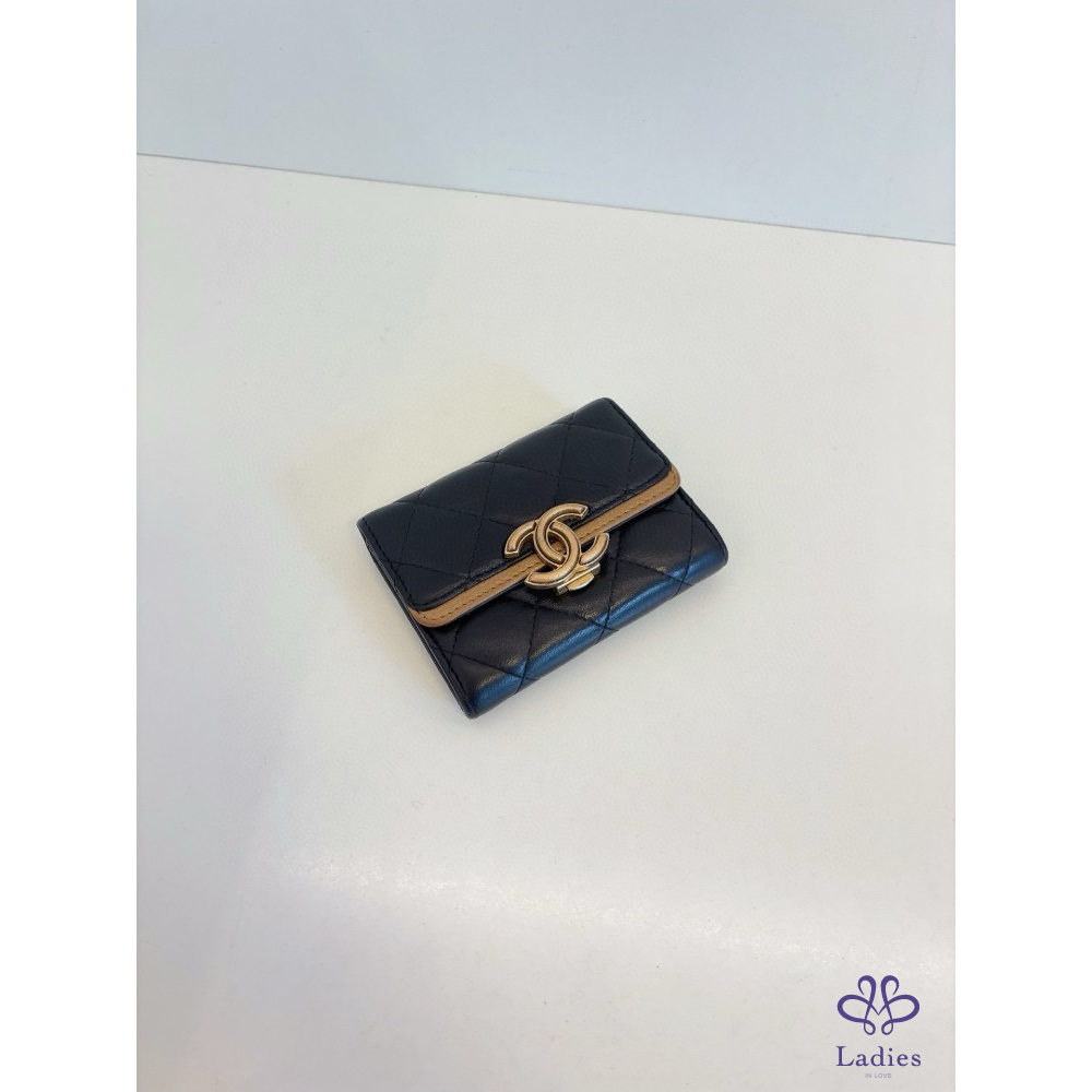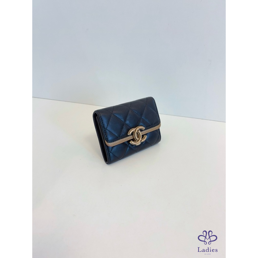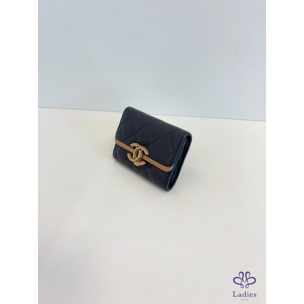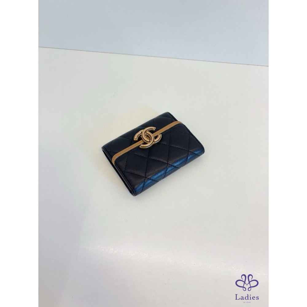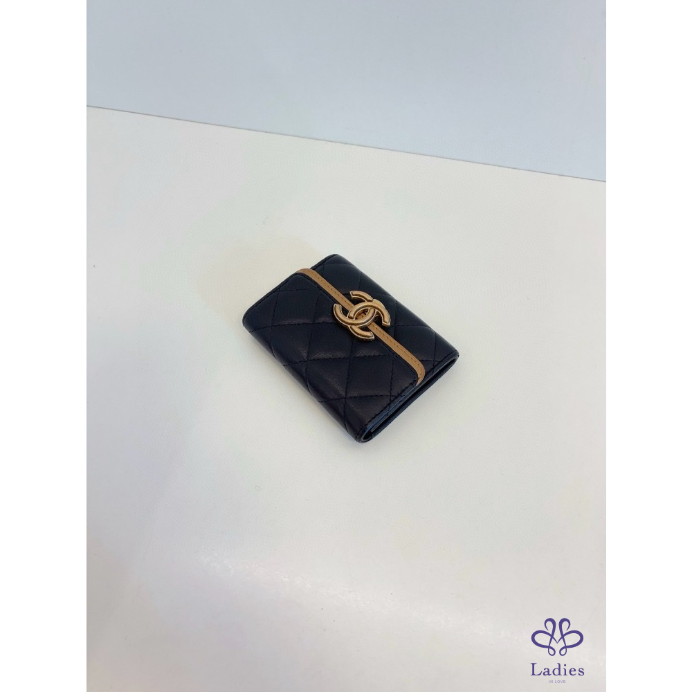 CHANEL 香奈兒 金邊大雙 C 翻蓋短皮夾 / 卡夾 28 開