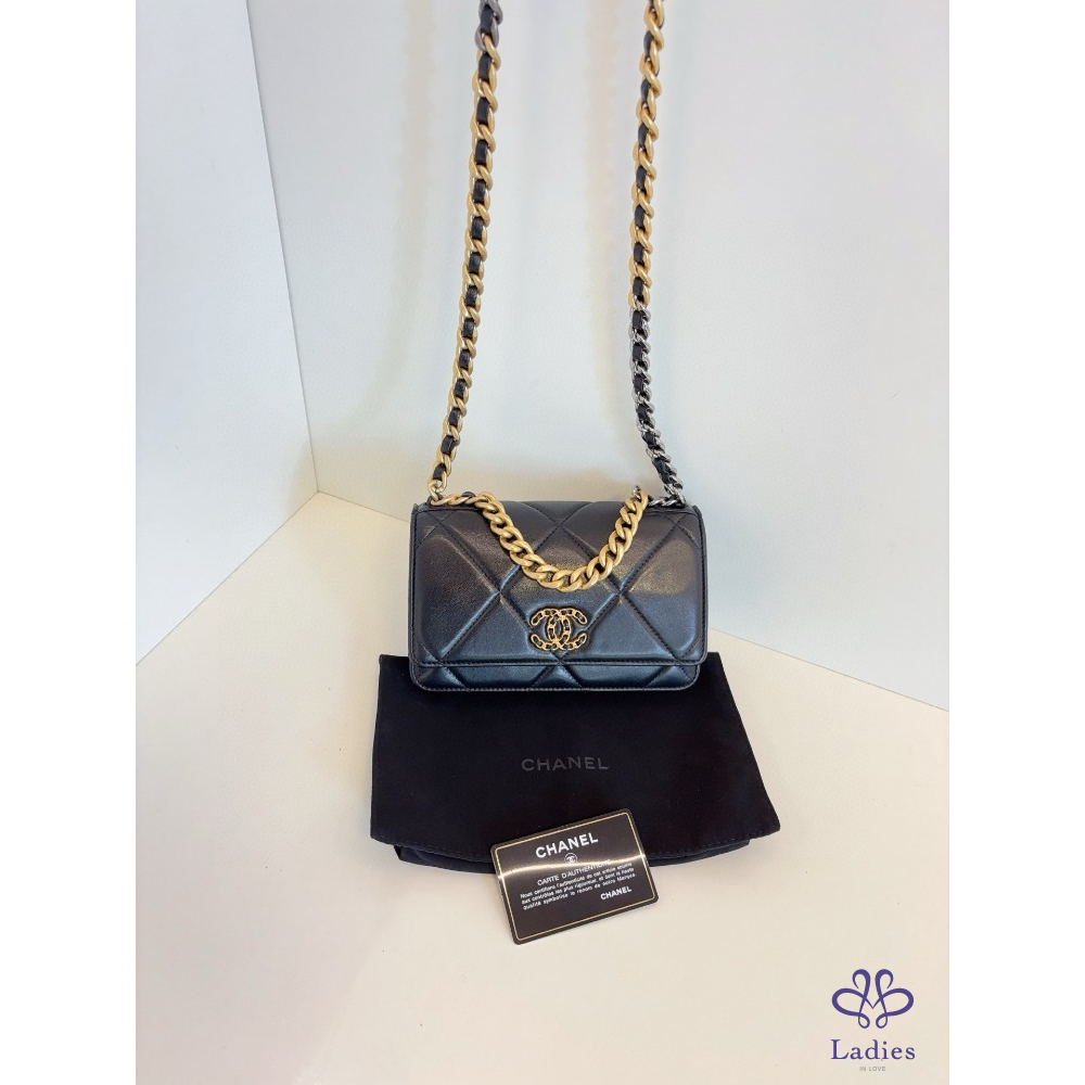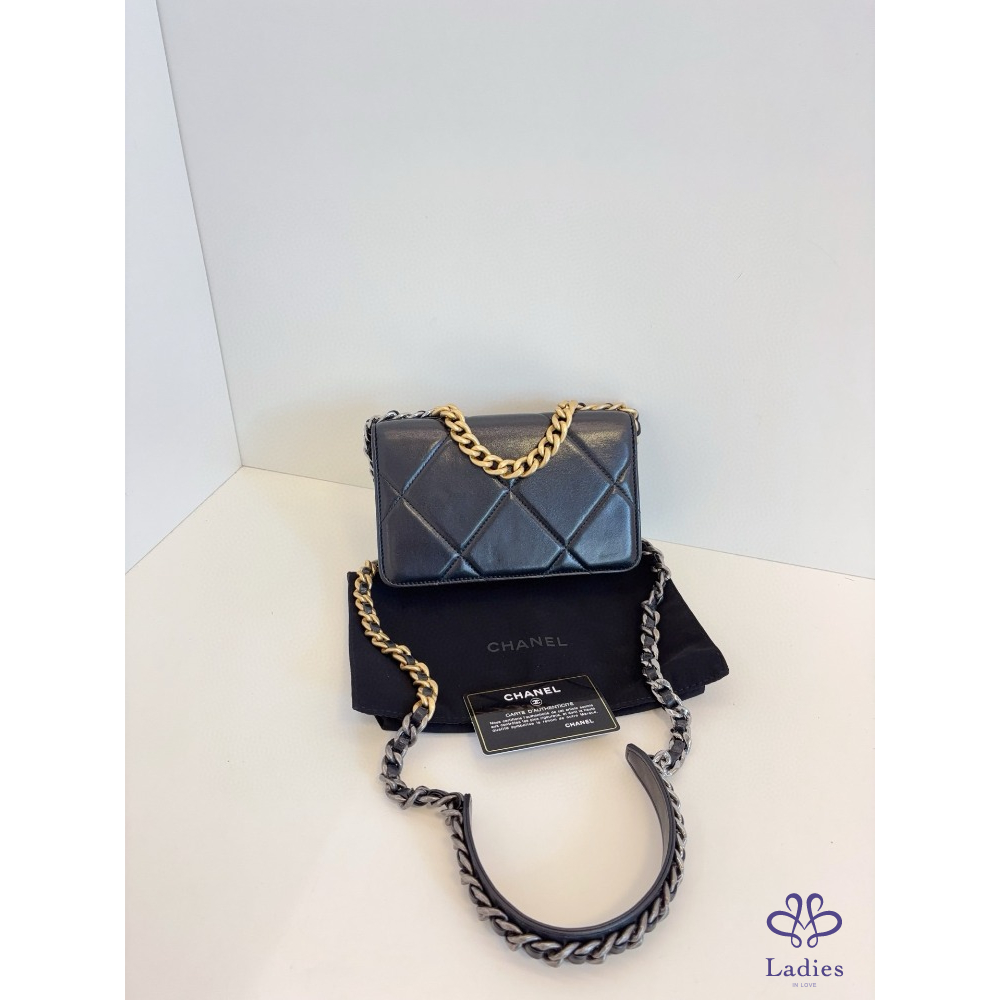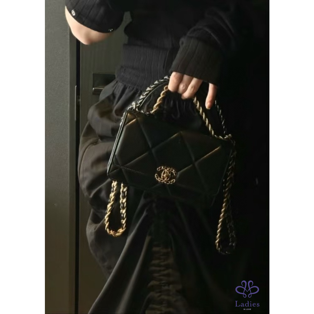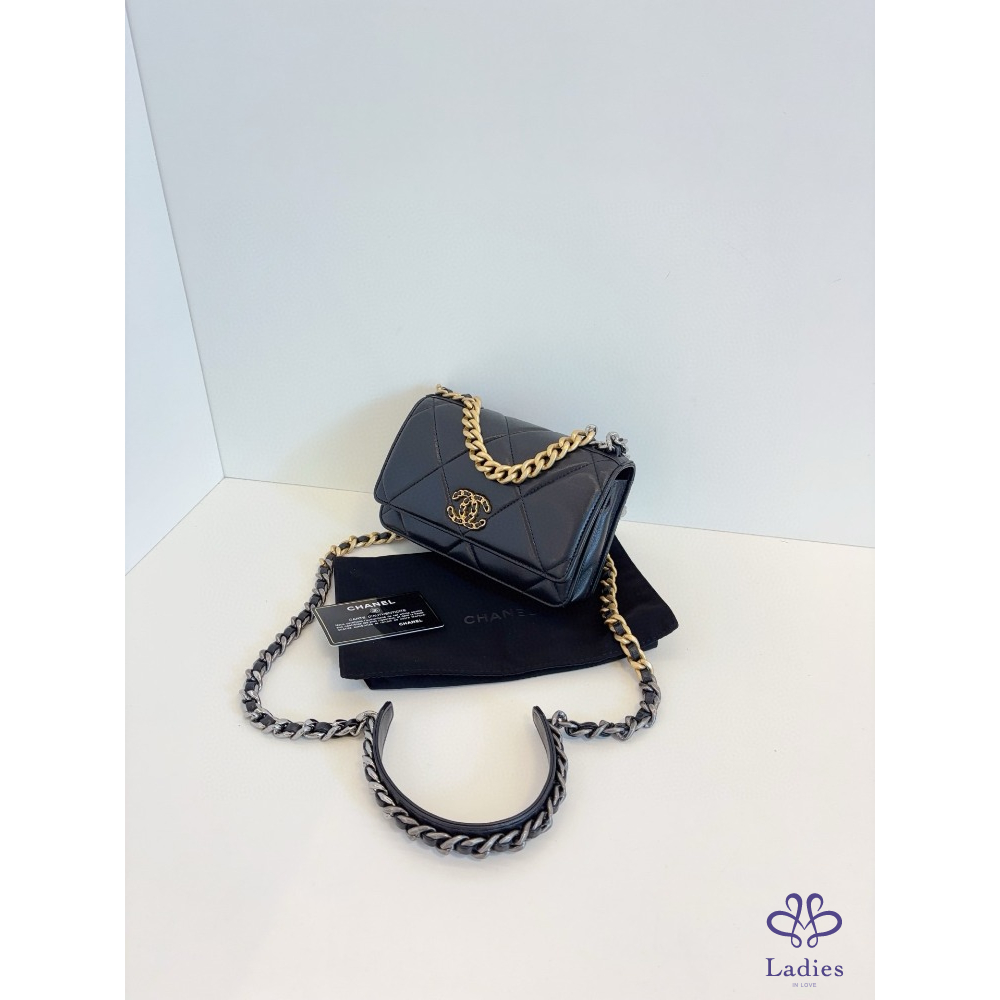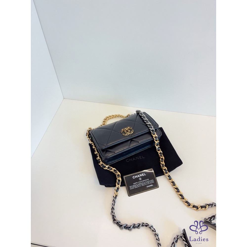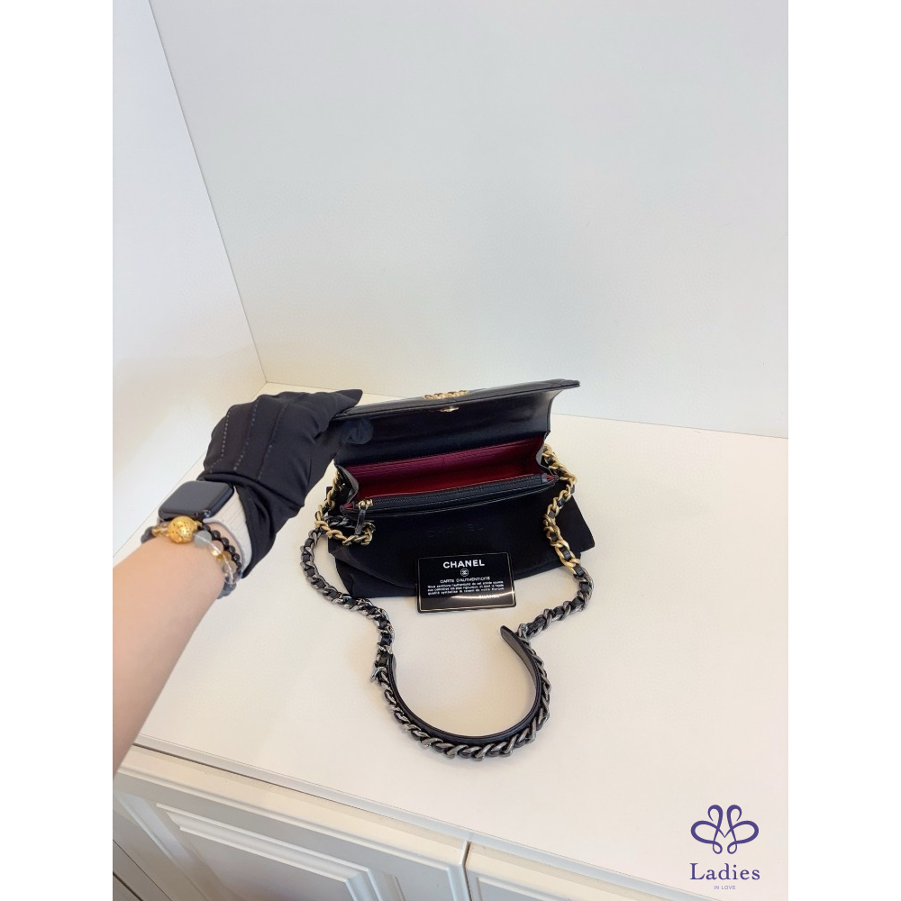 CHANEL香奈兒 19bag woc 黑金菱格鍊條包
