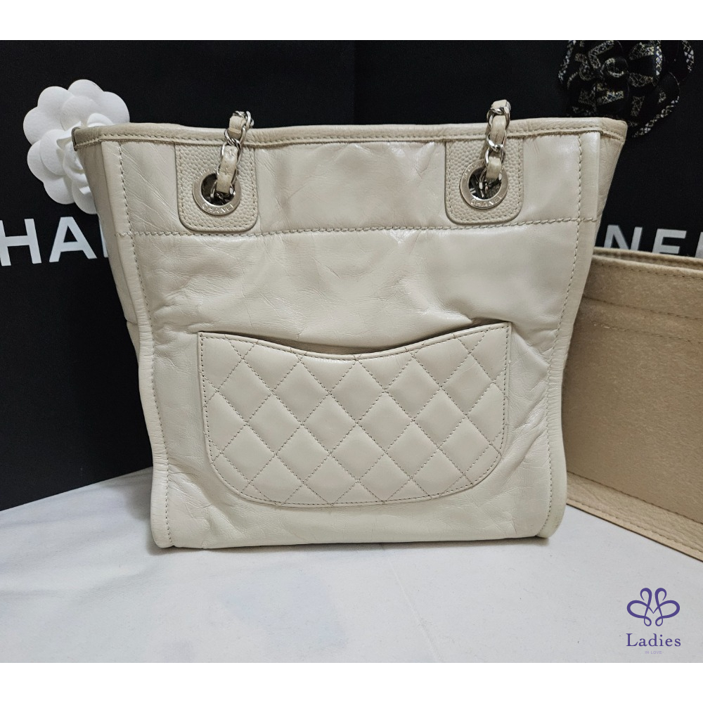 產品信息 💗沙灘包(贈查碼圖.內膽包) 氣質奶油白 油蠟牛皮,刺繡浮雕 logo款,背帶可拆,上班逛街都適合,網圖供參考 😍代友割愛$43888含運,買到賺很大,比皮夾還甜 💗尺寸約28x25x12公分 💗整體9~9.4新,紋路是本來油蠟的紋路(全新的網圖也是長這樣),內裡微使用痕跡,需補拍可告知,新舊每人認知不同,如多角度實品圖,高標龜毛有疑慮請櫃上買新品,謝謝 💗裸包,附一般防塵袋.雷標.內膽包.查碼圖(只提供購買者),沒寫就是沒附 實品較白,拍照有黃光 請24小時匯款 他團同步 售出不退