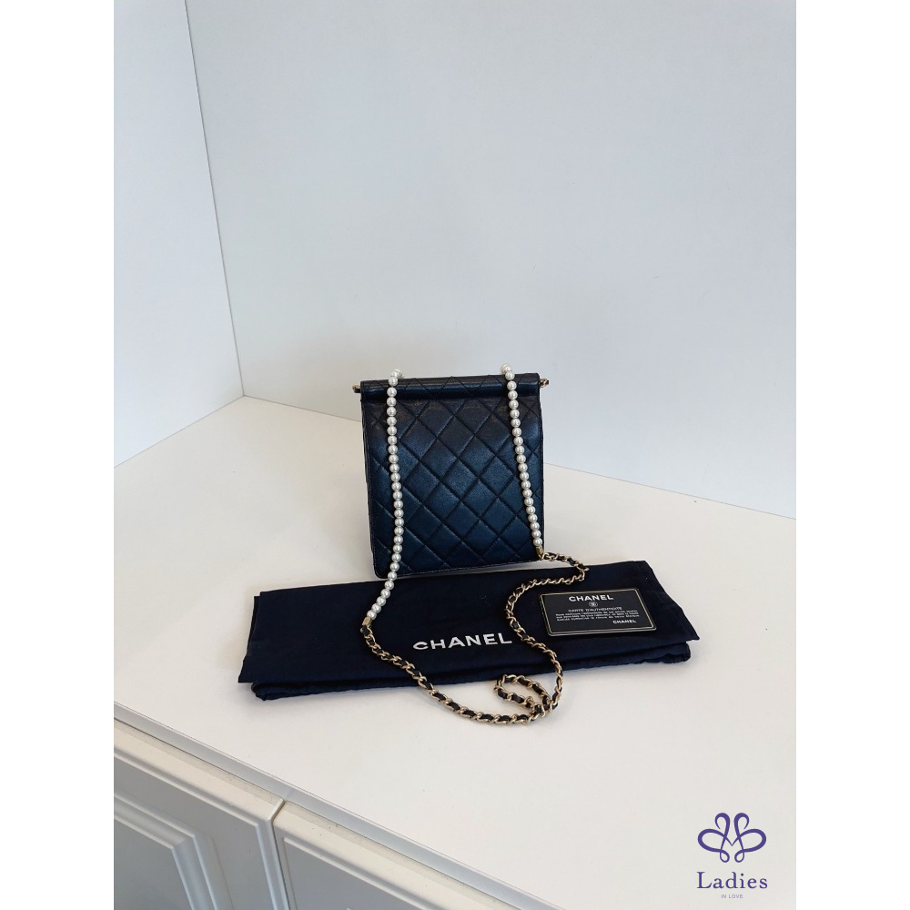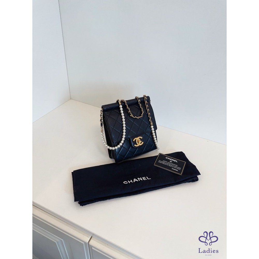98 新   尺寸16*18*4.5,附卡 27 開 經典常青款珍珠系列最經典款式之一,老佛爺絕版之作精緻貴氣,菱格飽滿,包型佳珍珠無磨損