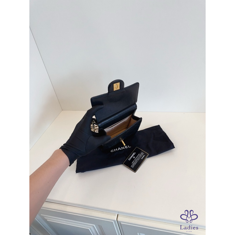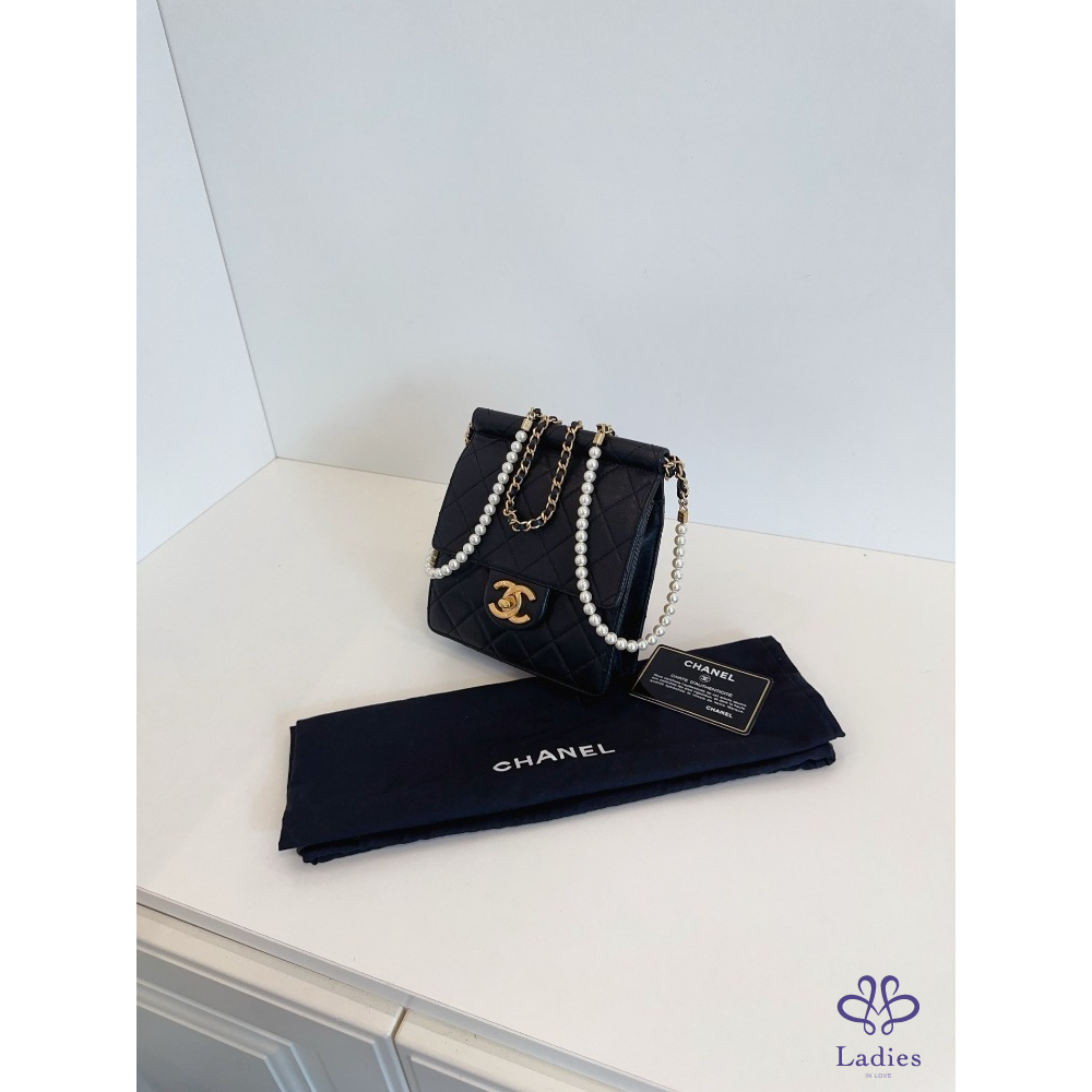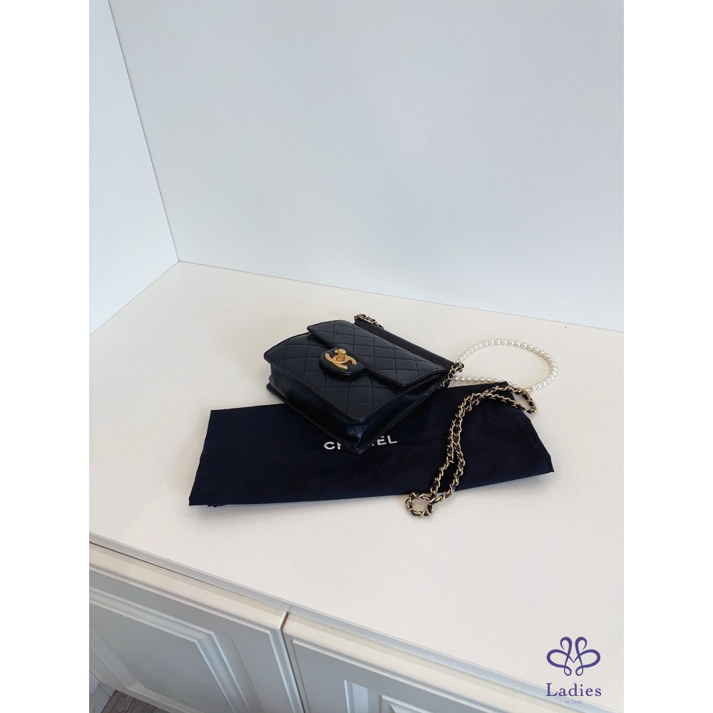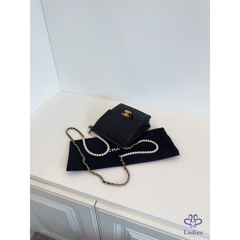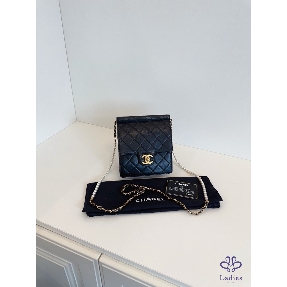 首頁 精品包包 CHANEL香奈兒 黑金 珍珠鍊條 直版 CF 方胖子 翻蓋斜背包