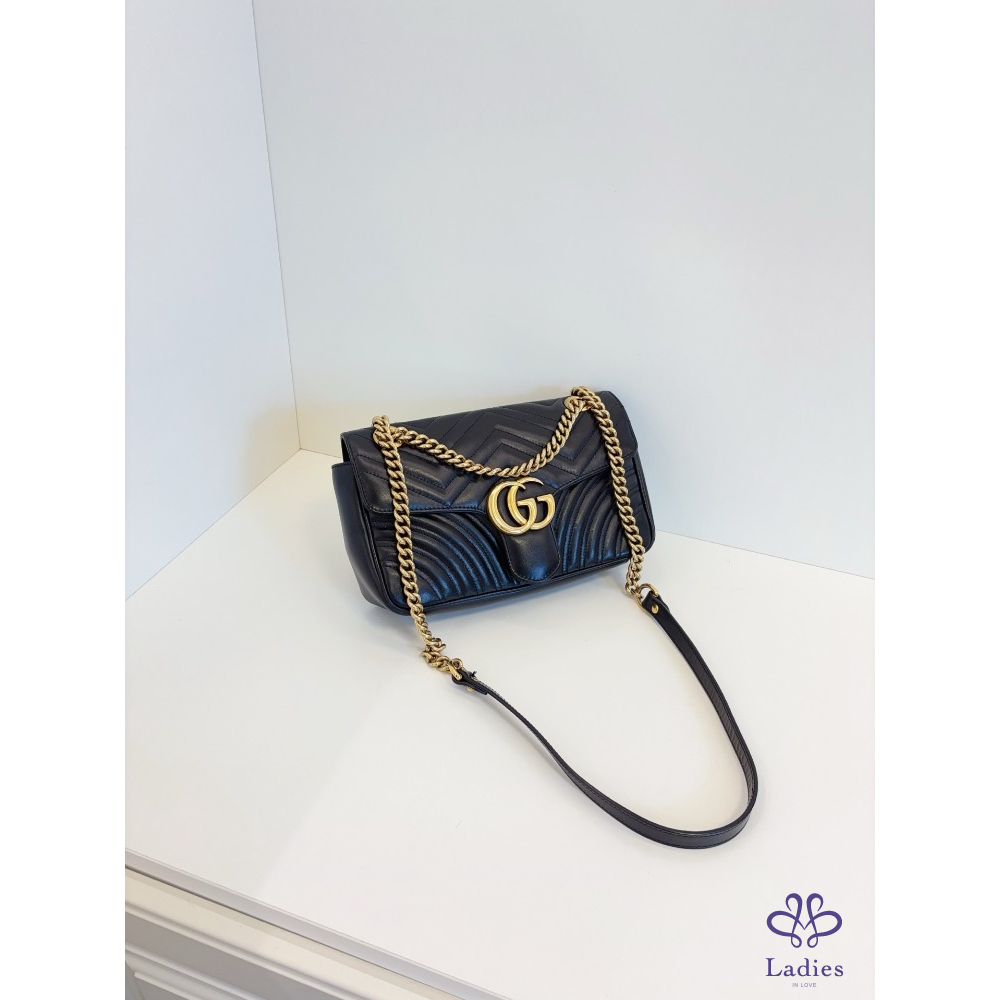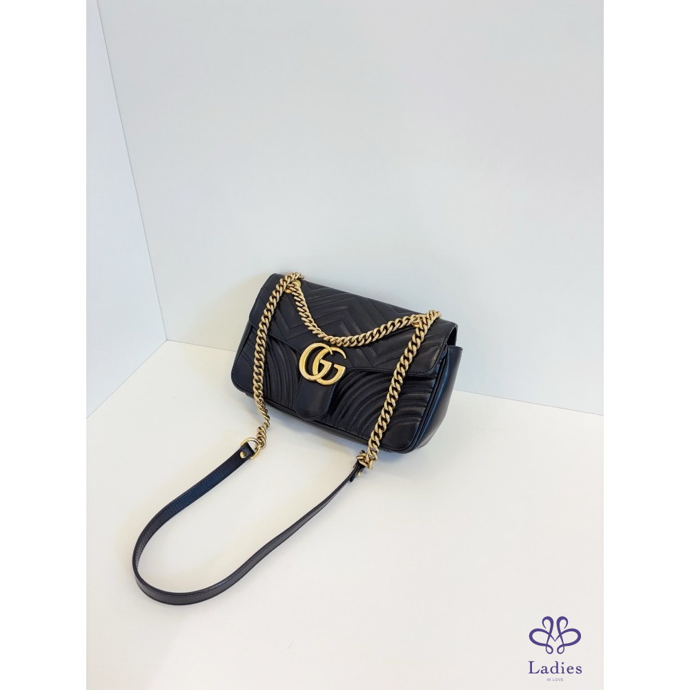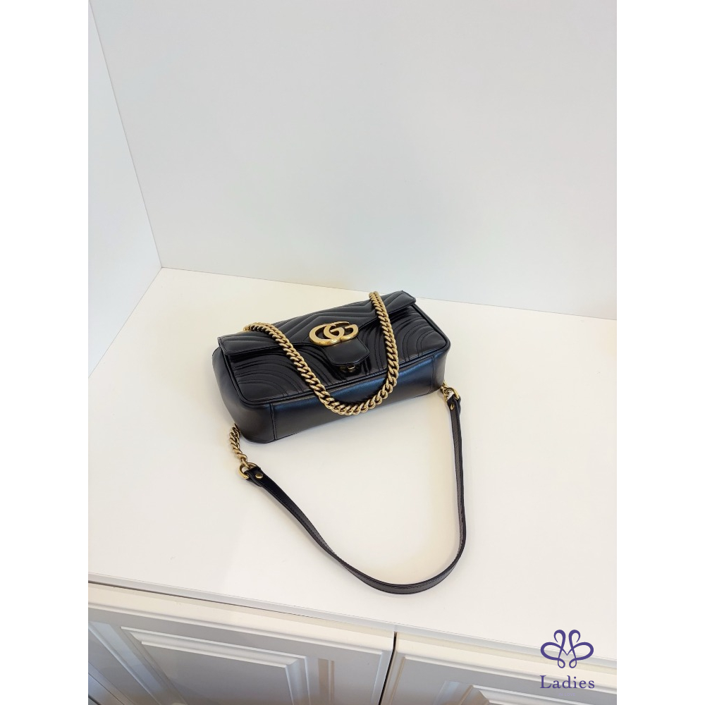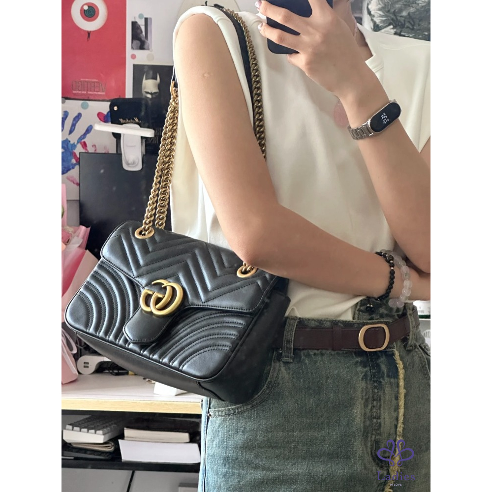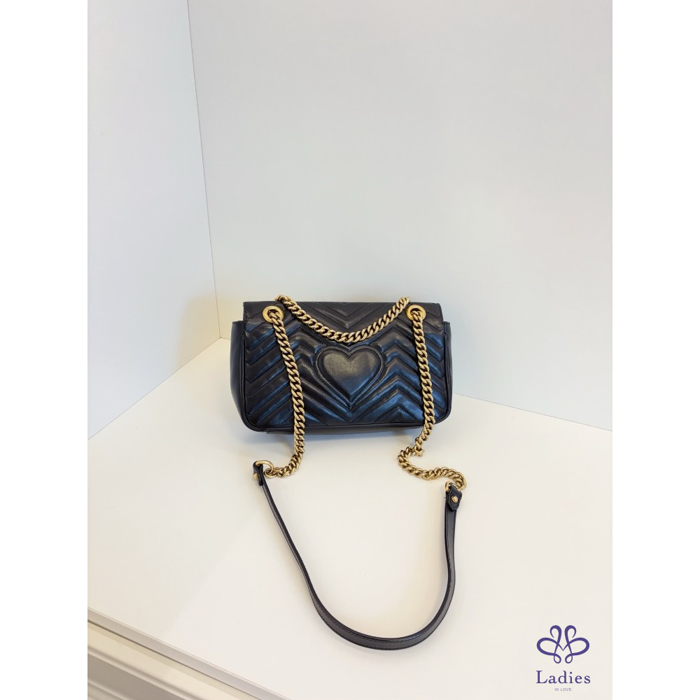 GUCCI 古馳 黑金 marmont 26 馬蒙愛心鍊條包