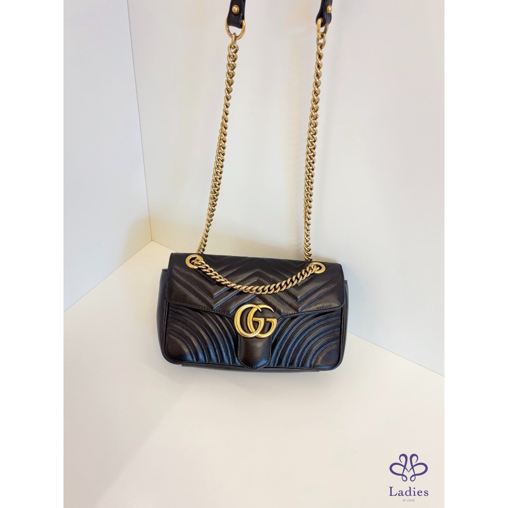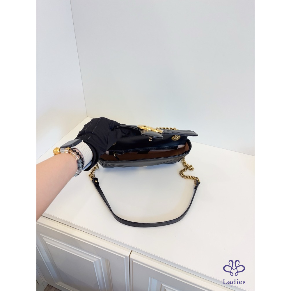 首頁 精品包包 GUCCI 古馳 黑金 marmont 26 馬蒙愛心鍊條包