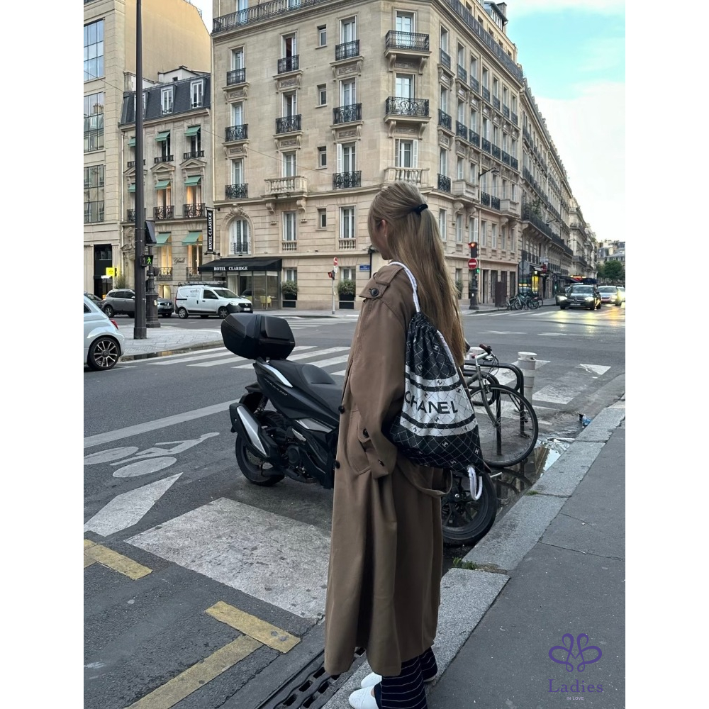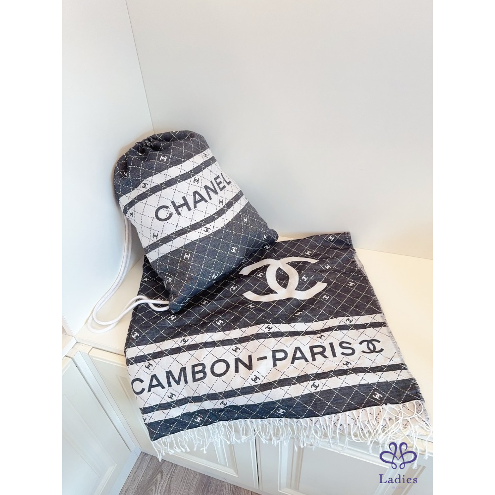 首頁 精品包包 CHANEL 香奈兒 24p 黑灰帆布抽繩沙灘包 / 圍巾披肩 兩件組
