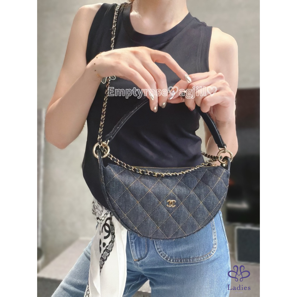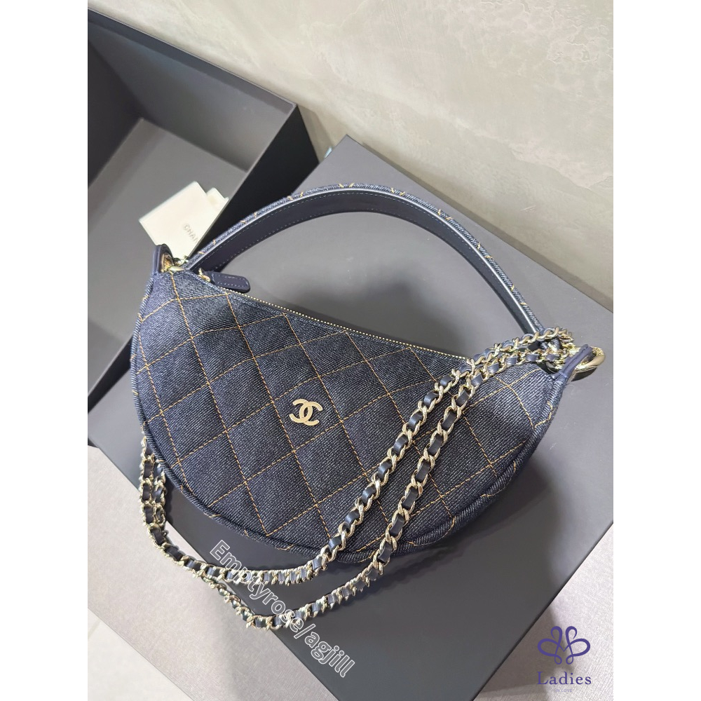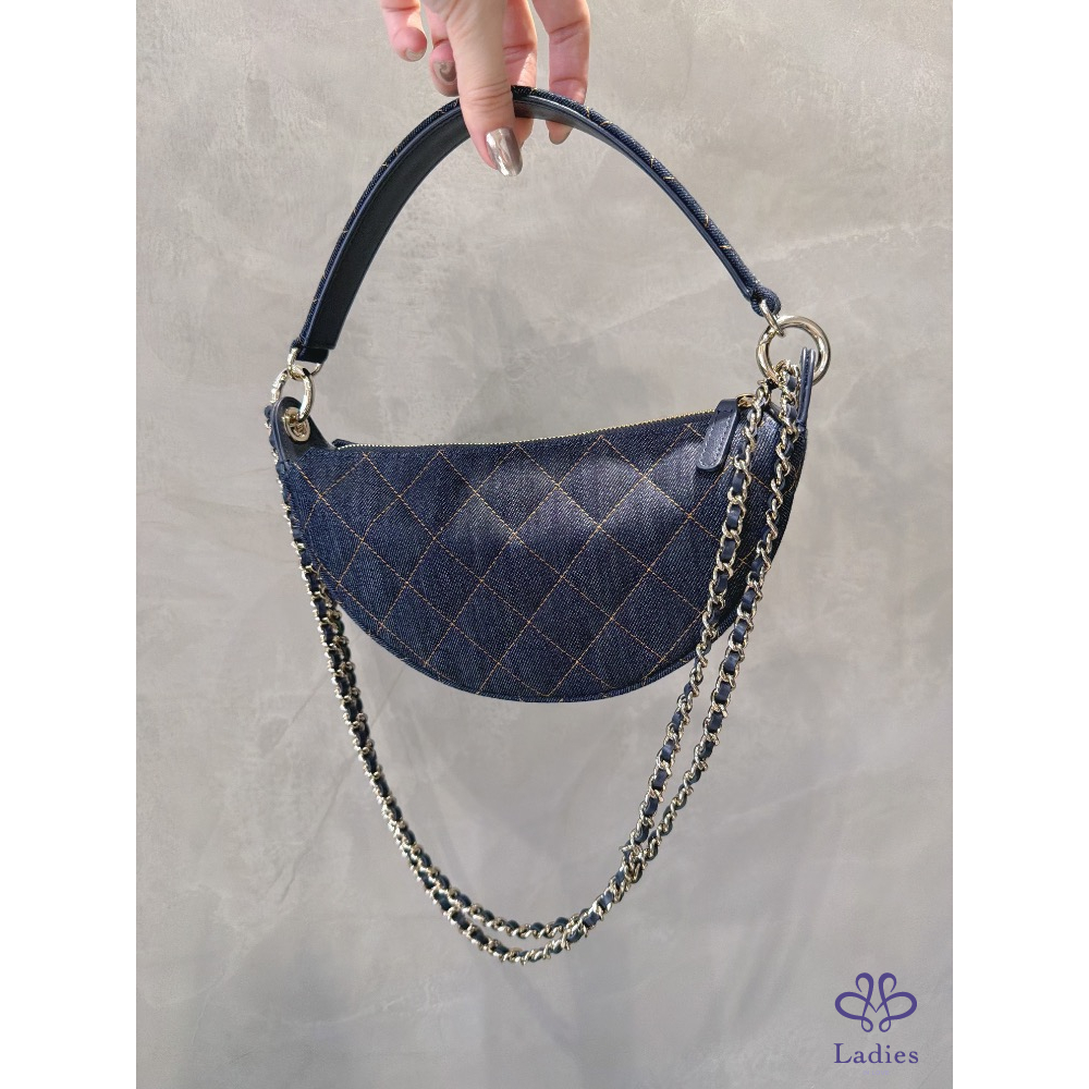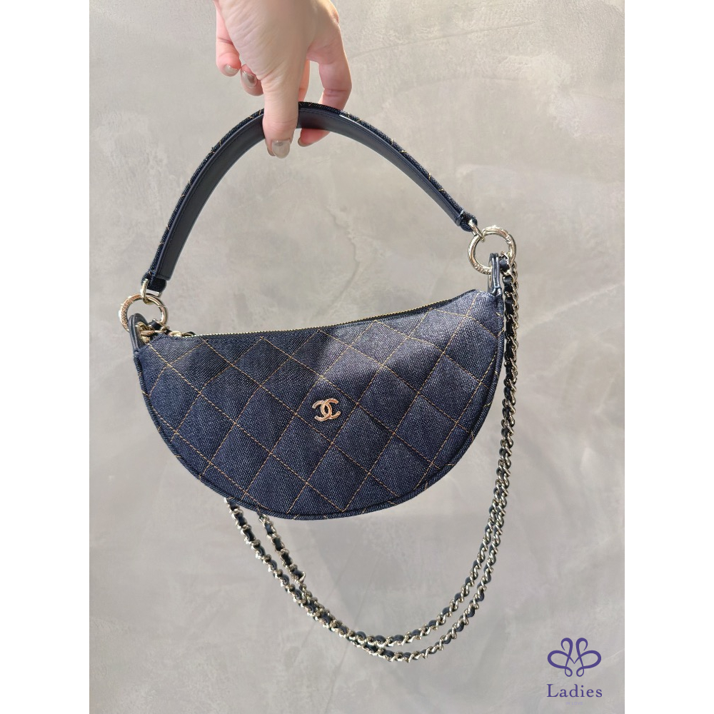 Chanel 牛仔彎月hobo 雙鏈handle🍩全新