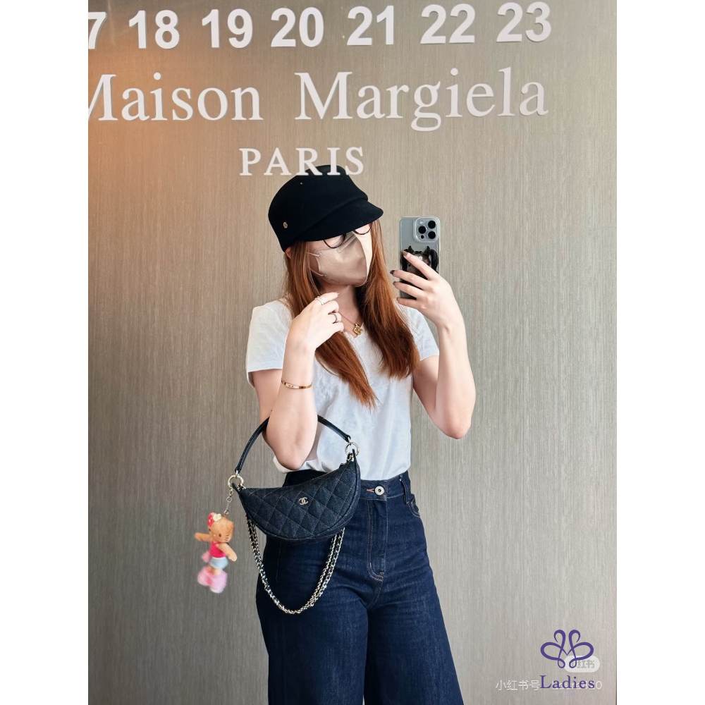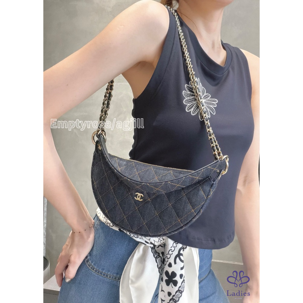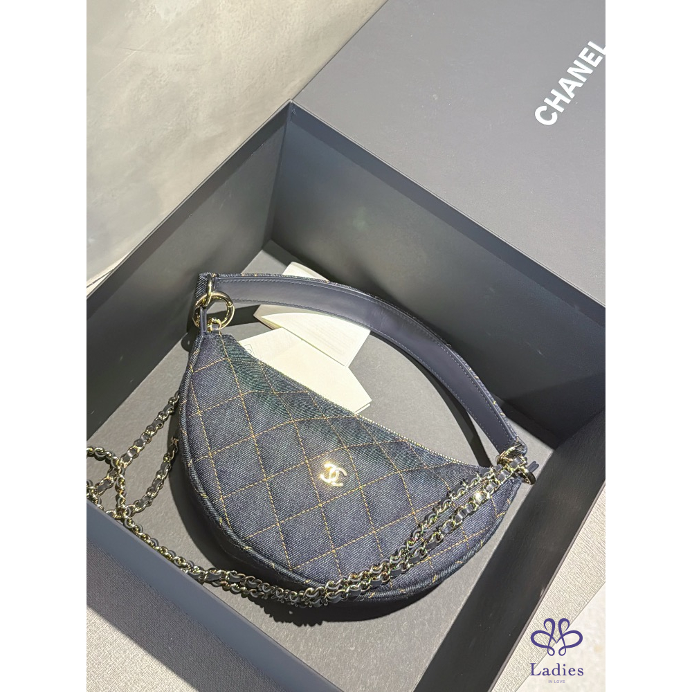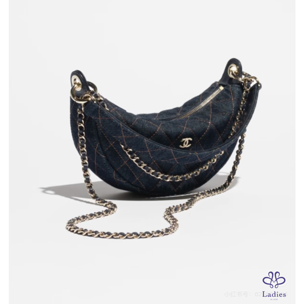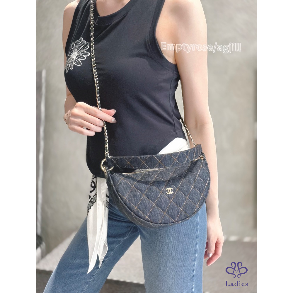 Chanel 牛仔彎月hobo 雙鏈handle🍩全新