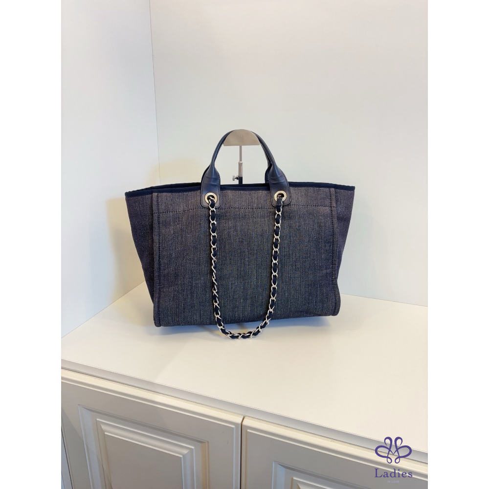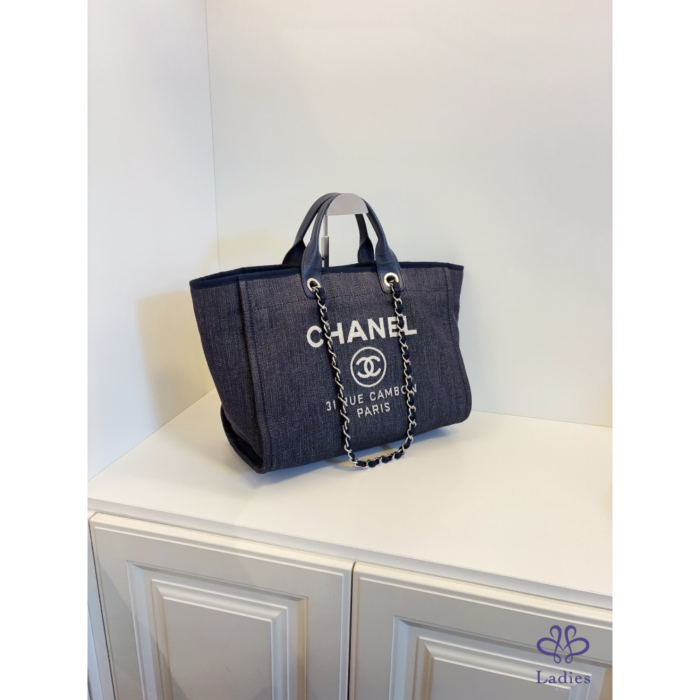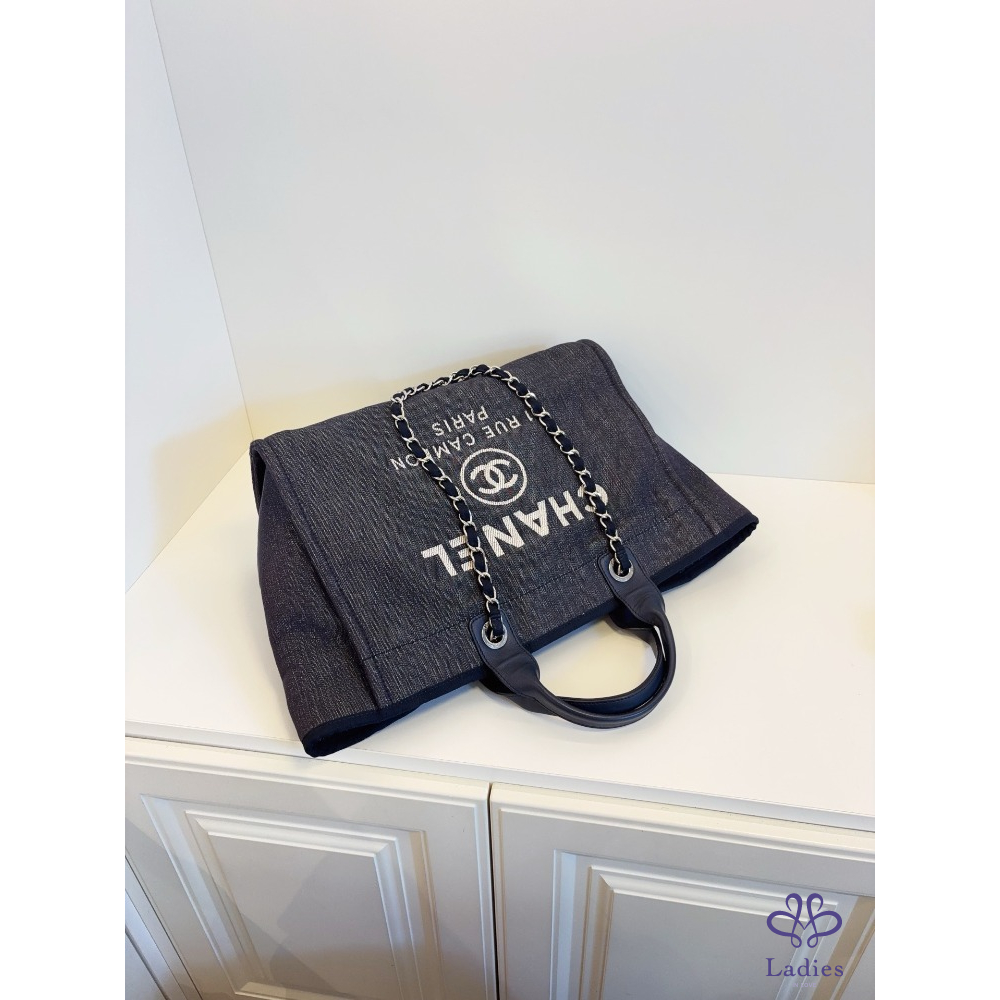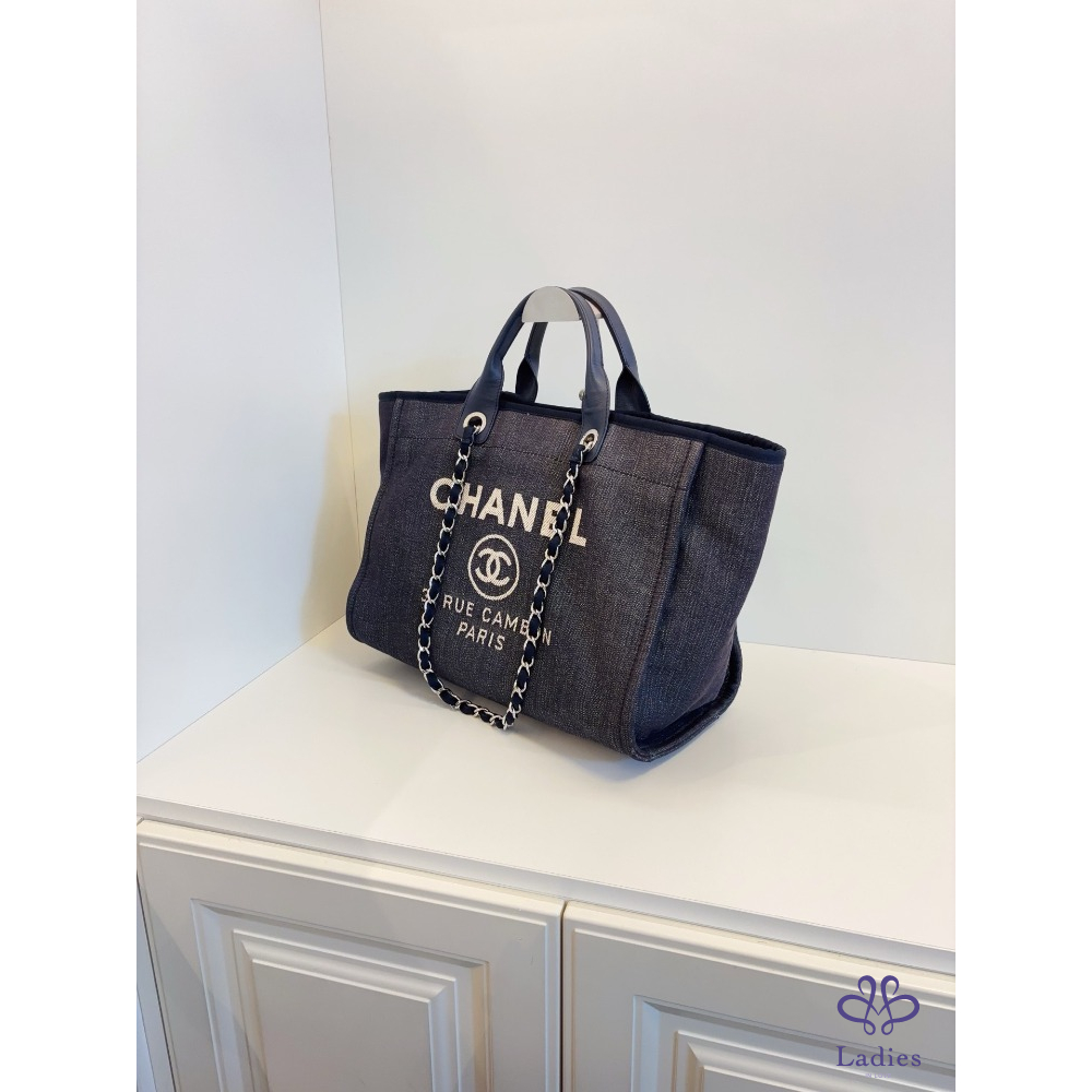 首頁 精品包包 CHANEL 香奈兒 牛仔藍沙灘包 帆布拼牛皮