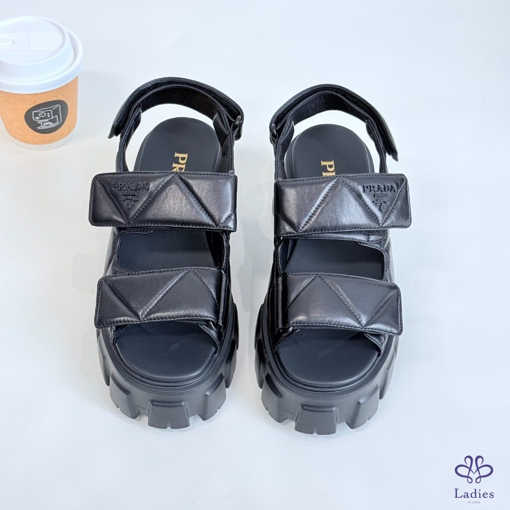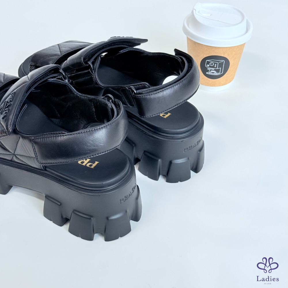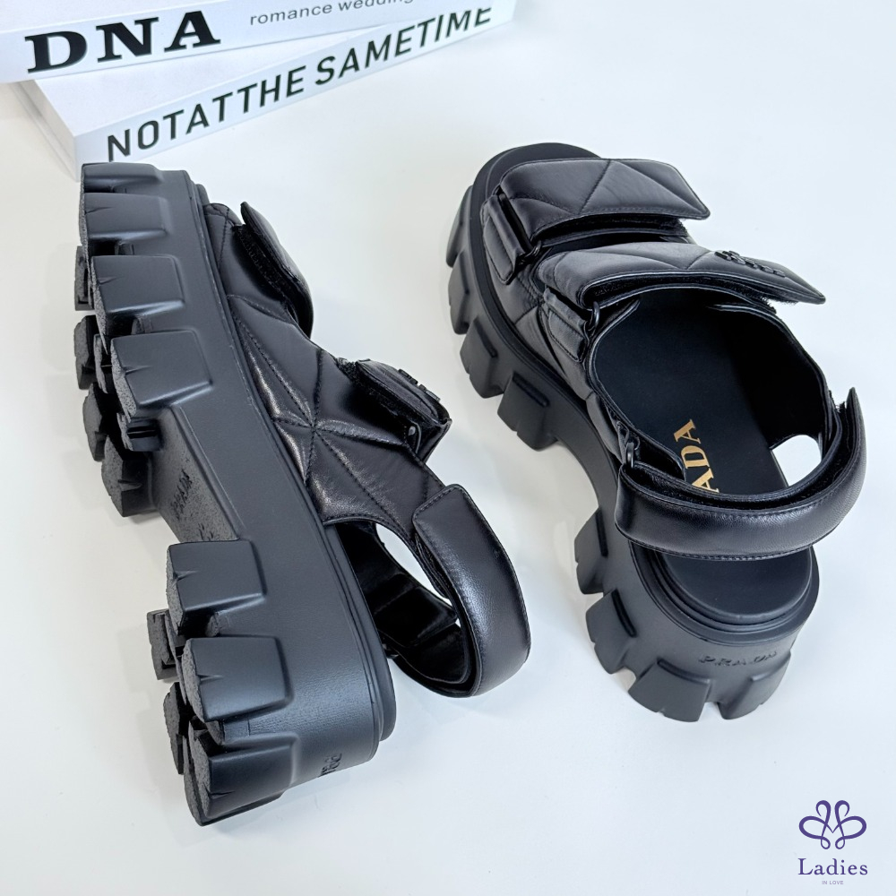 首頁 精品女鞋 PRADA 普拉達 黑色厚底涼鞋 37碼 全新