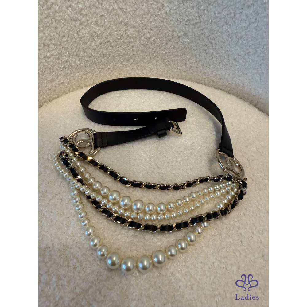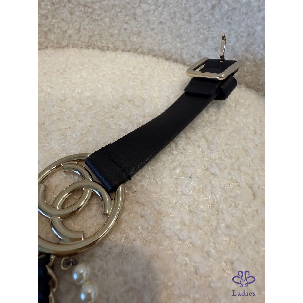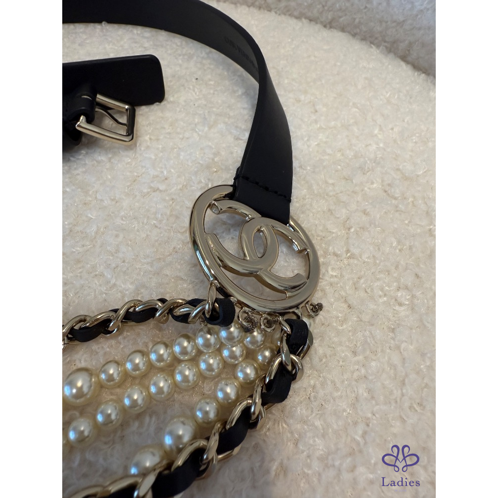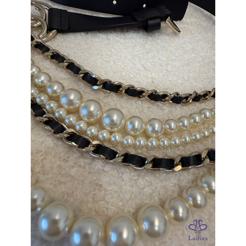 ❤️Chanel 黑色條鏈珍珠皮帶