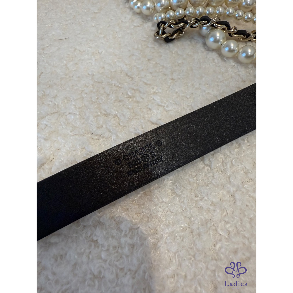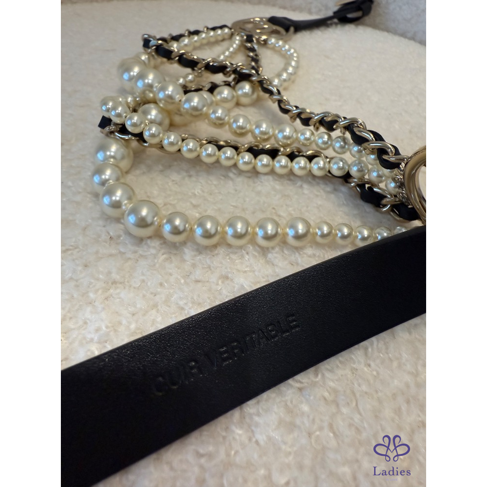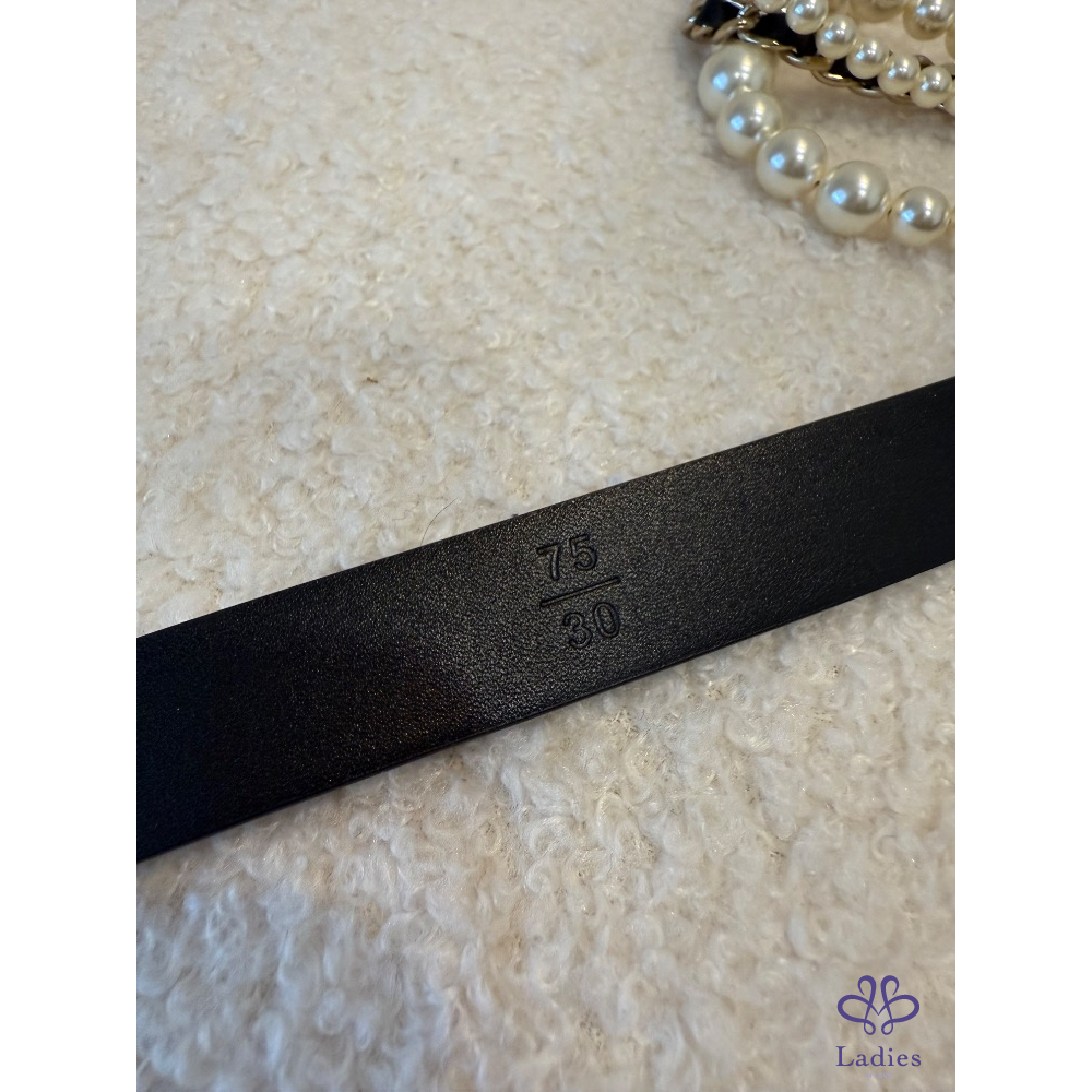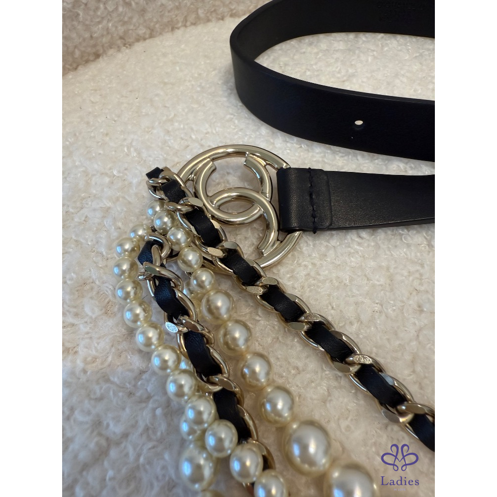 ❤️Chanel 黑色條鏈珍珠皮帶