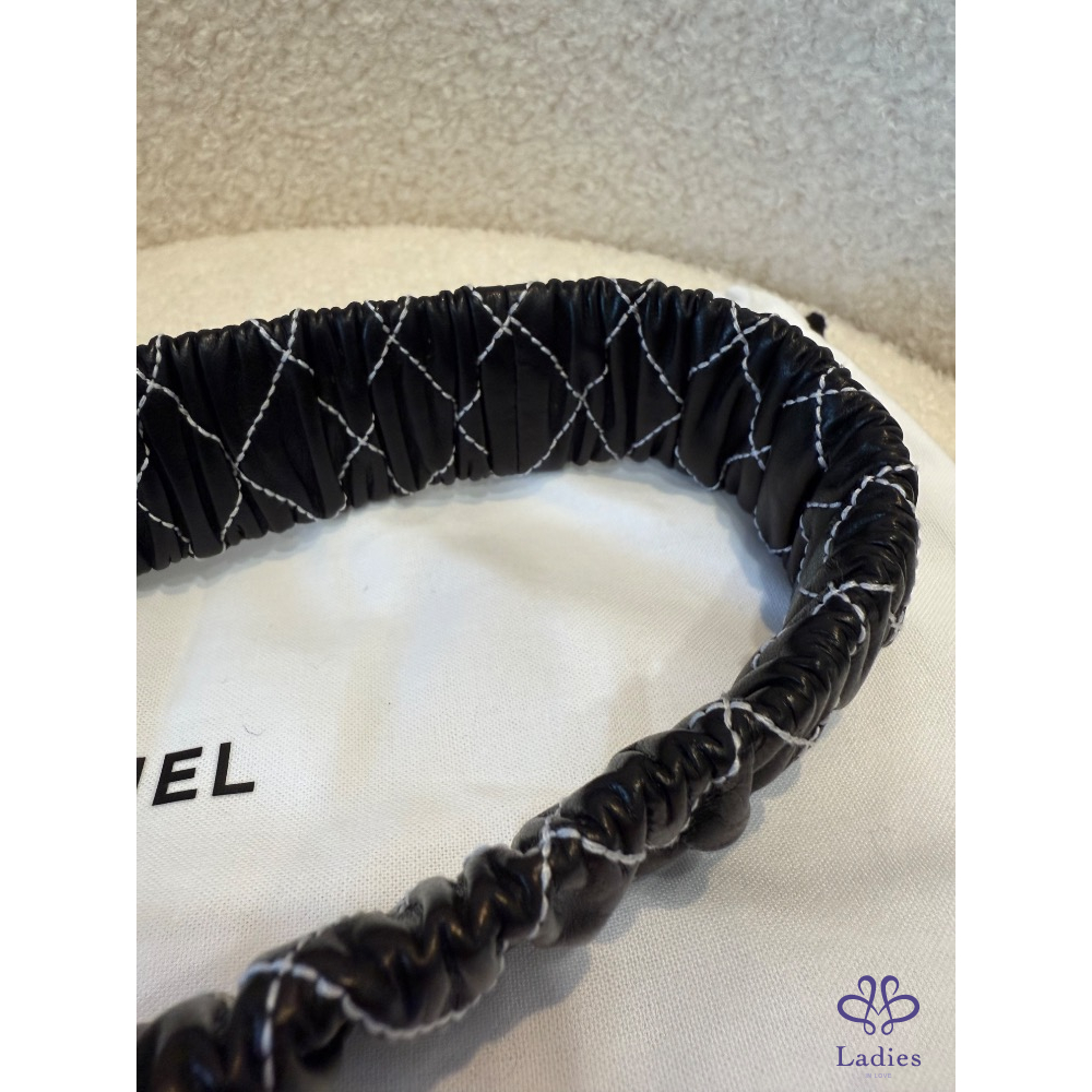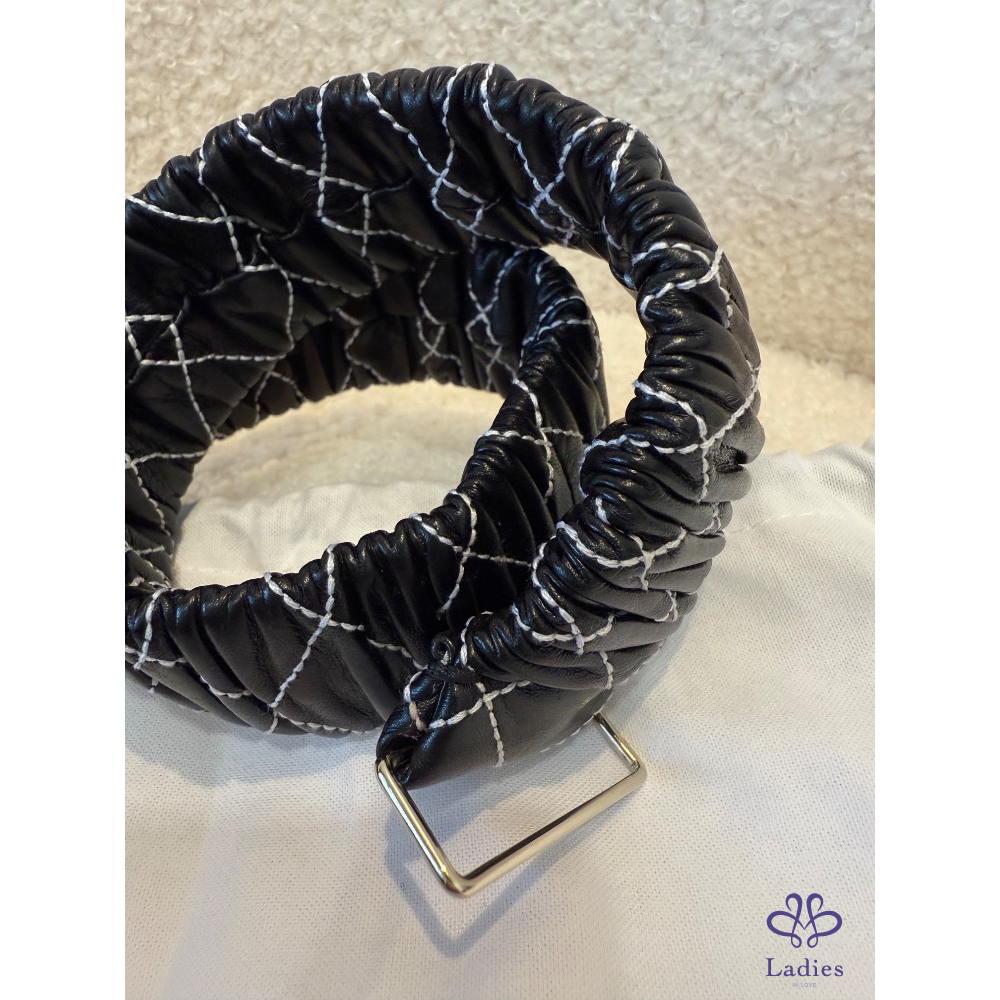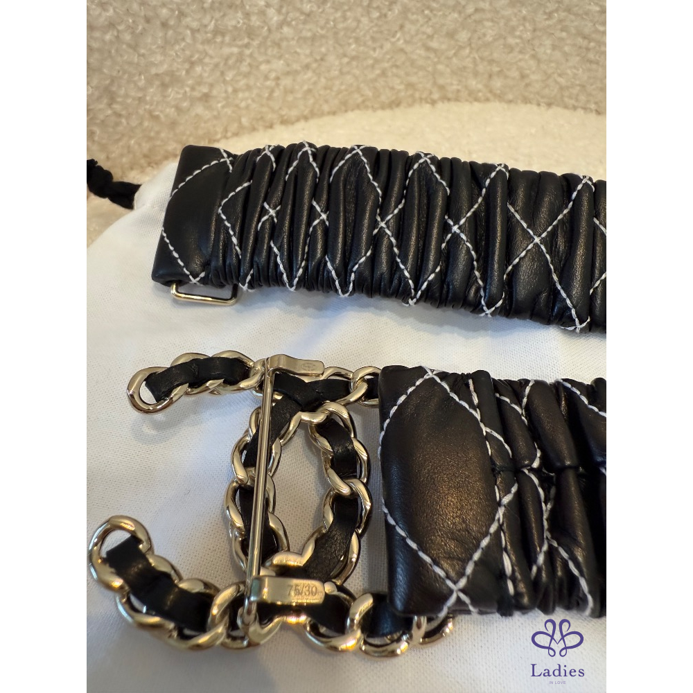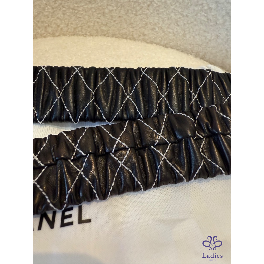 ❤️Chanel 黑色菱格縫線珍珠皮帶