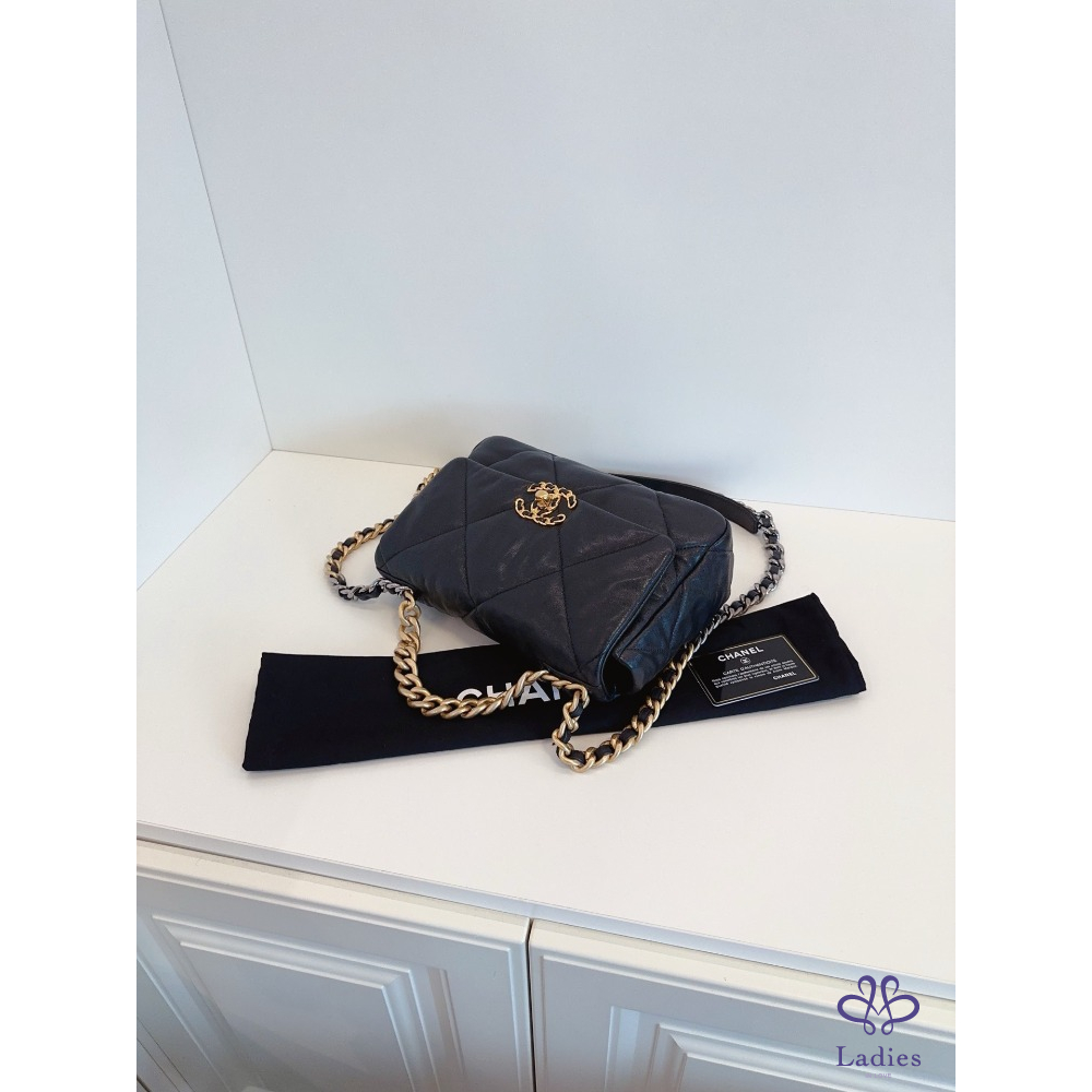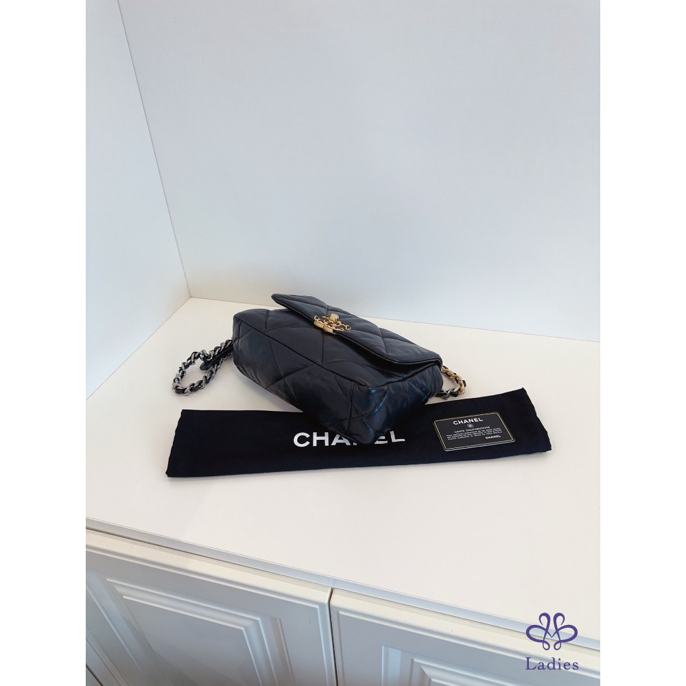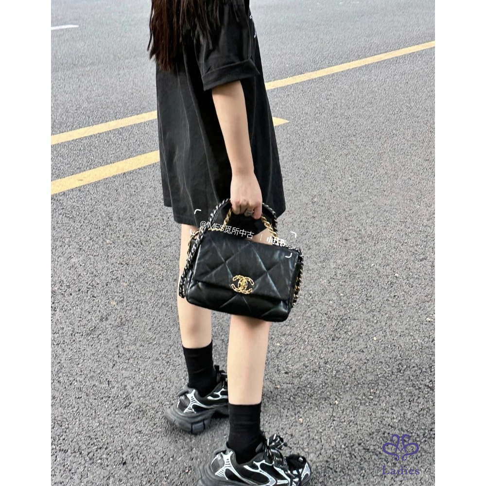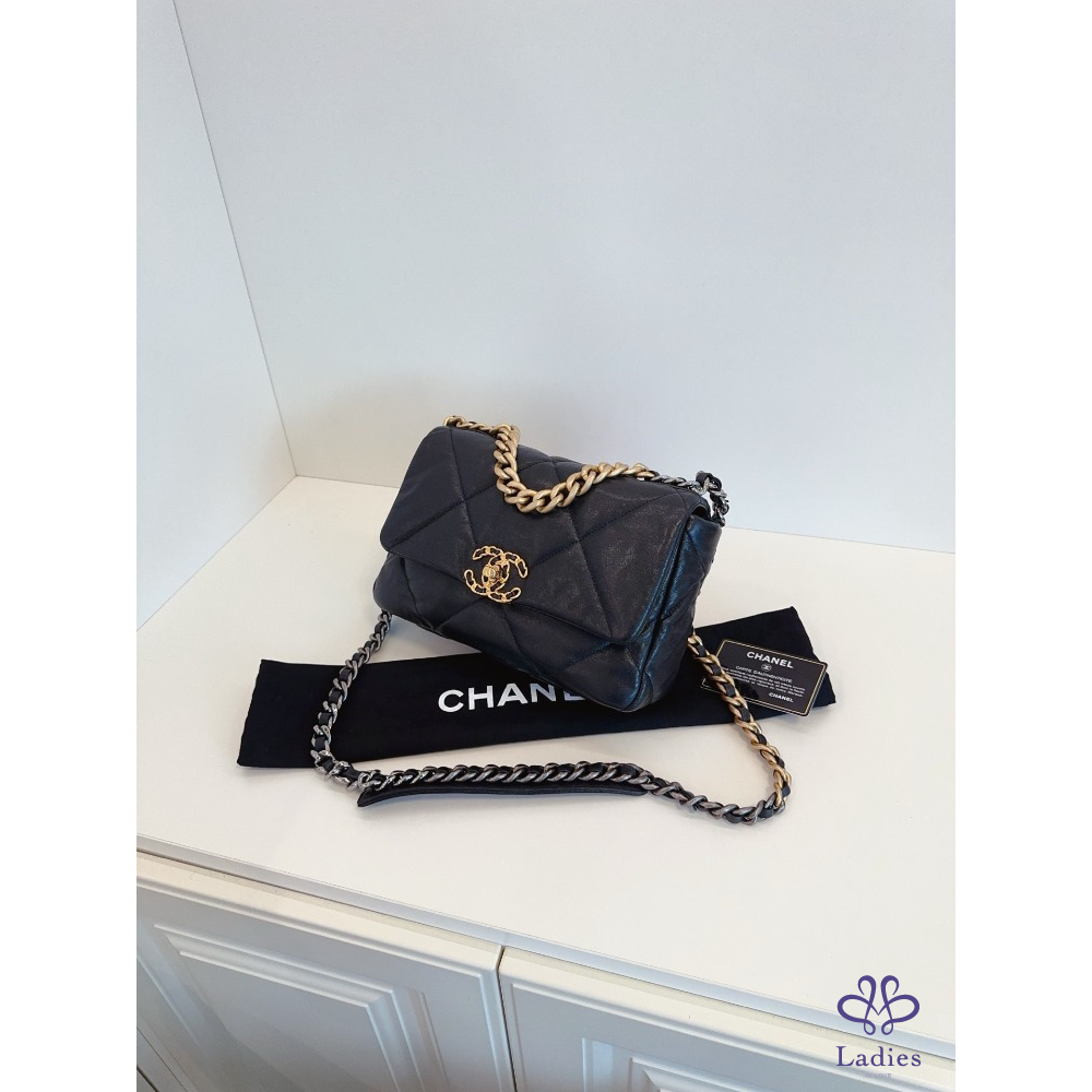 CHANEL 香奈兒 黑金大菱格 19bag 枕頭包 小號 28 開附卡