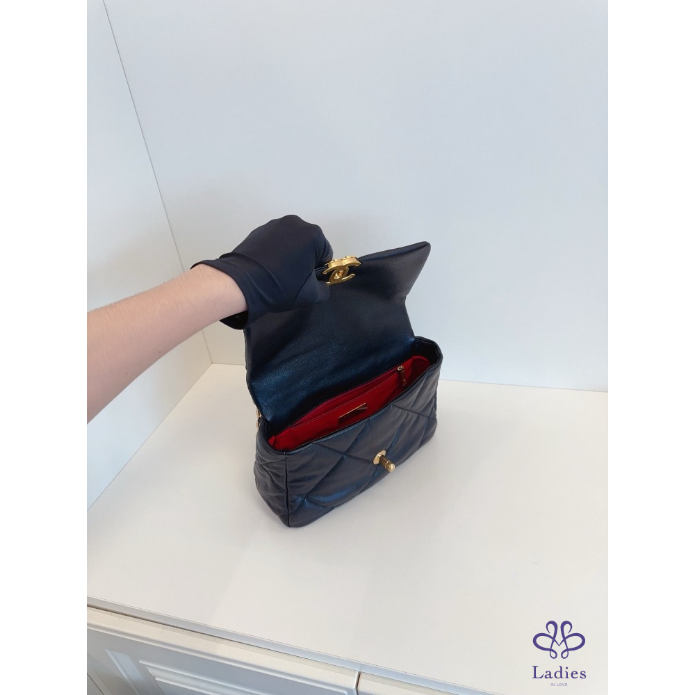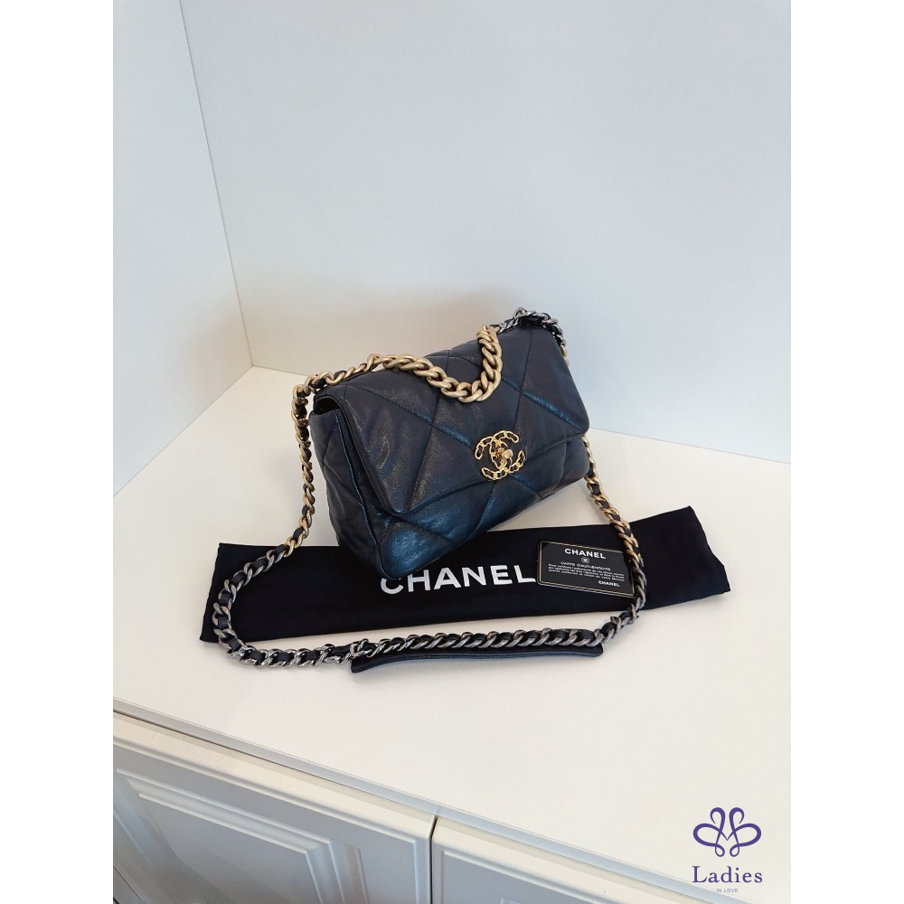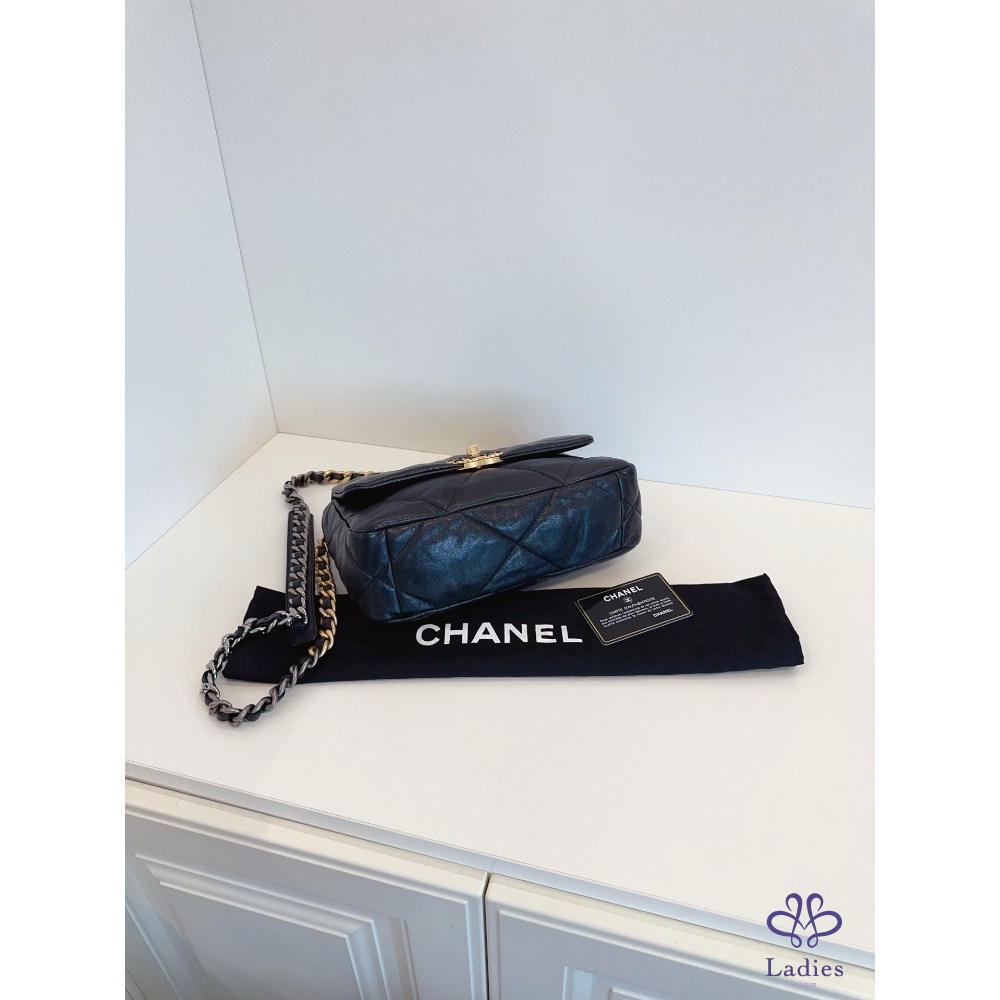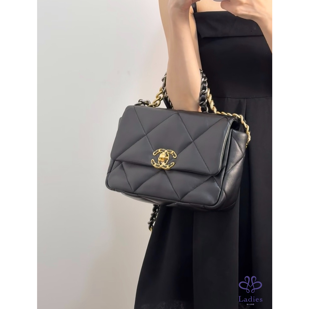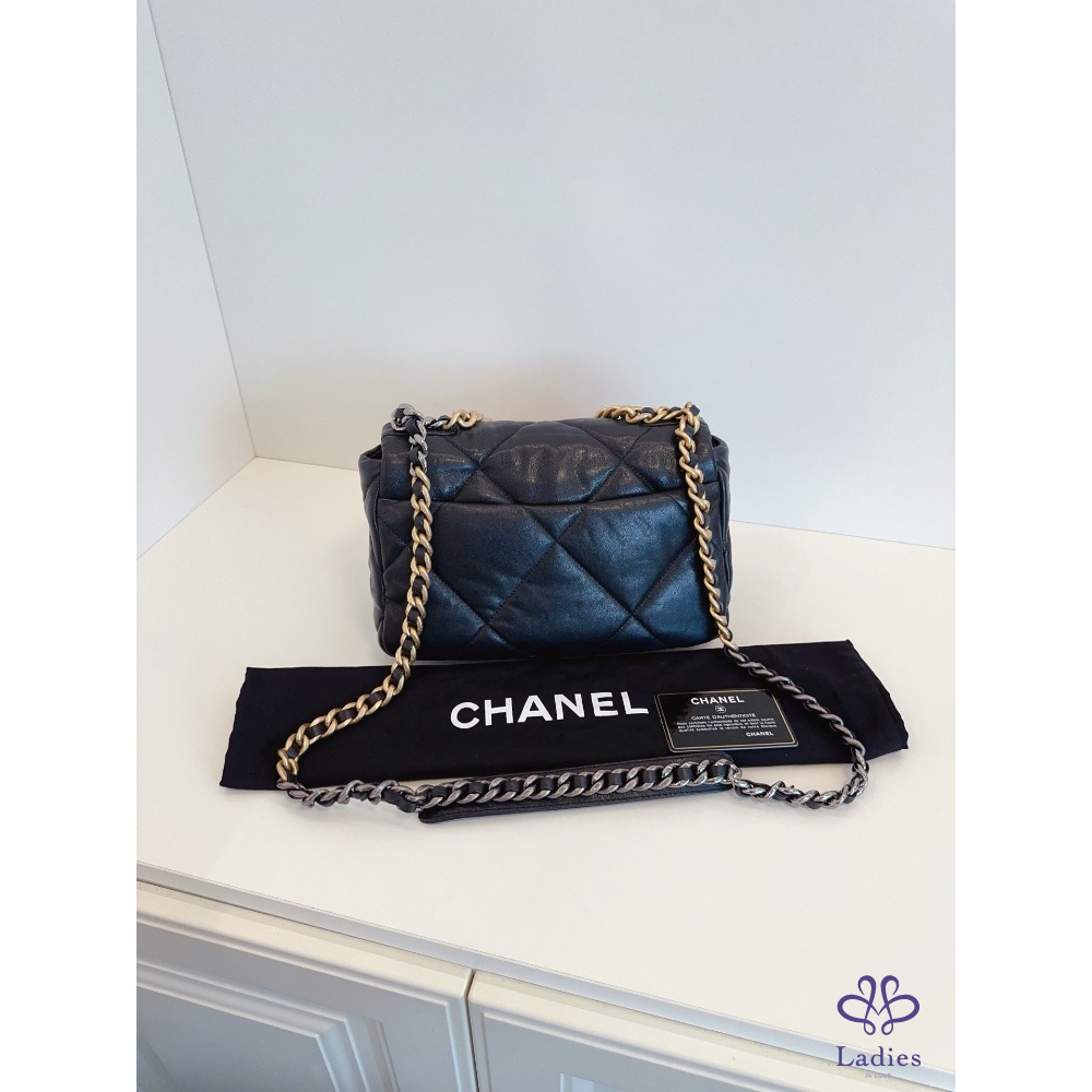 CHANEL 香奈兒 黑金大菱格 19bag 枕頭包 小號 28 開附卡