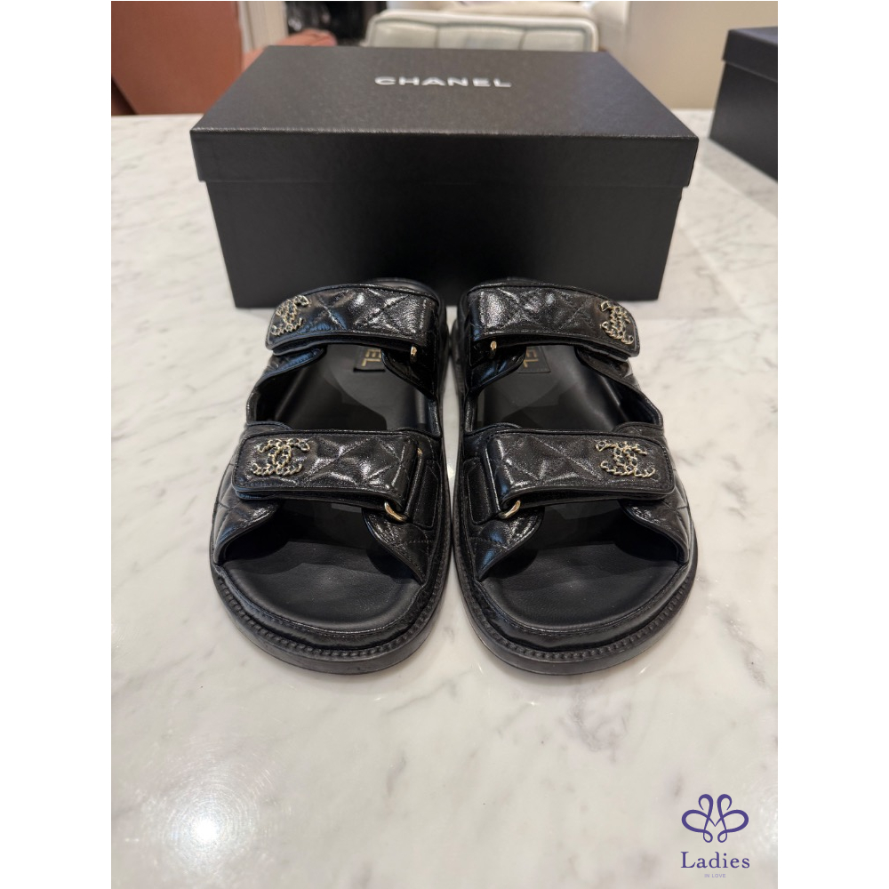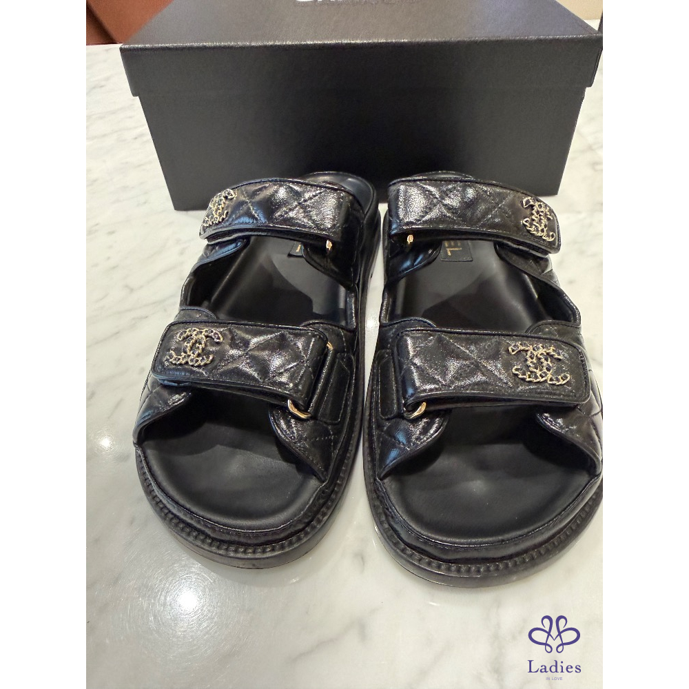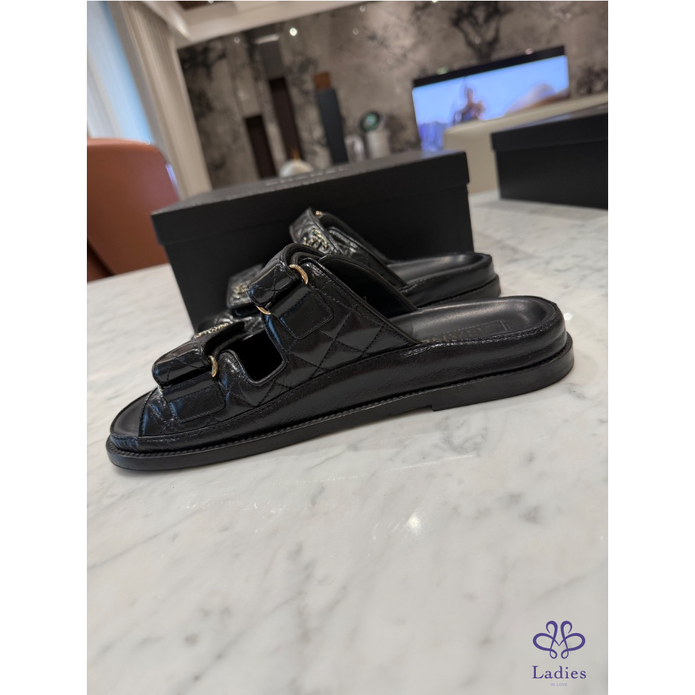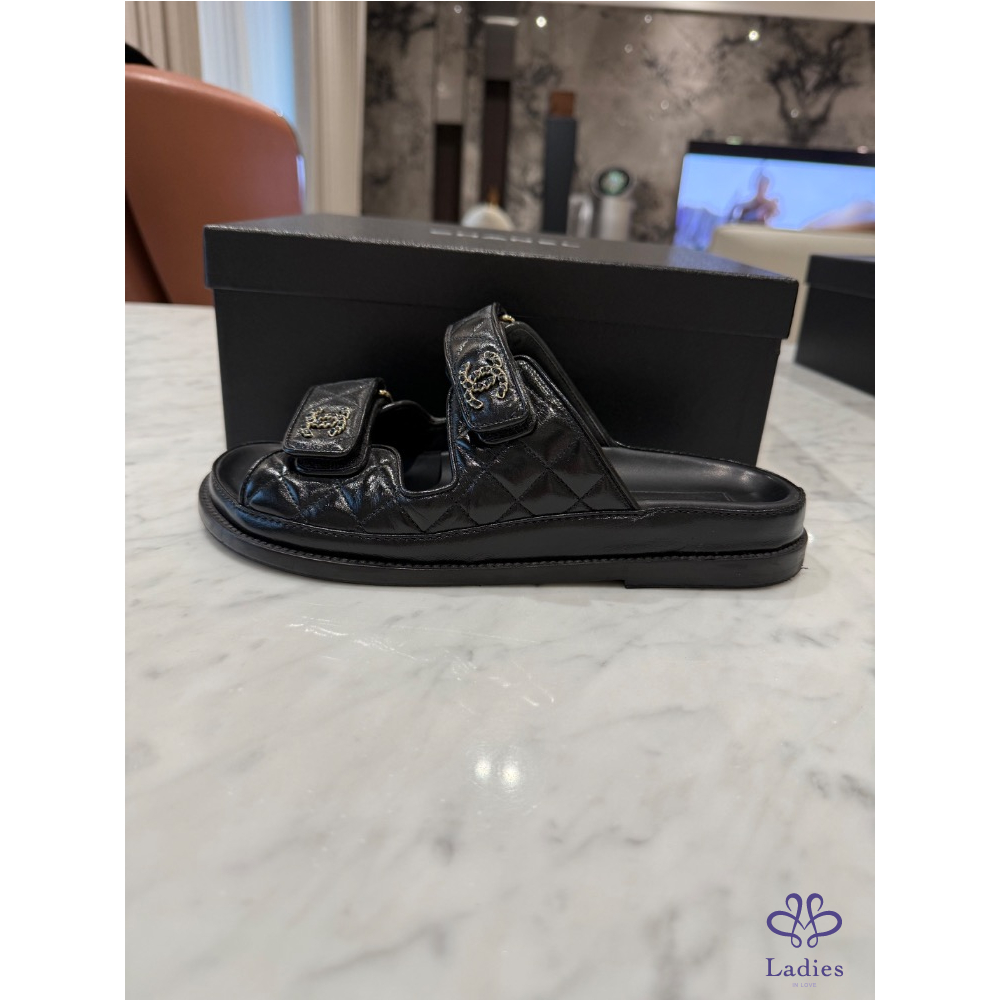Chanel黑色拖鞋,38號
