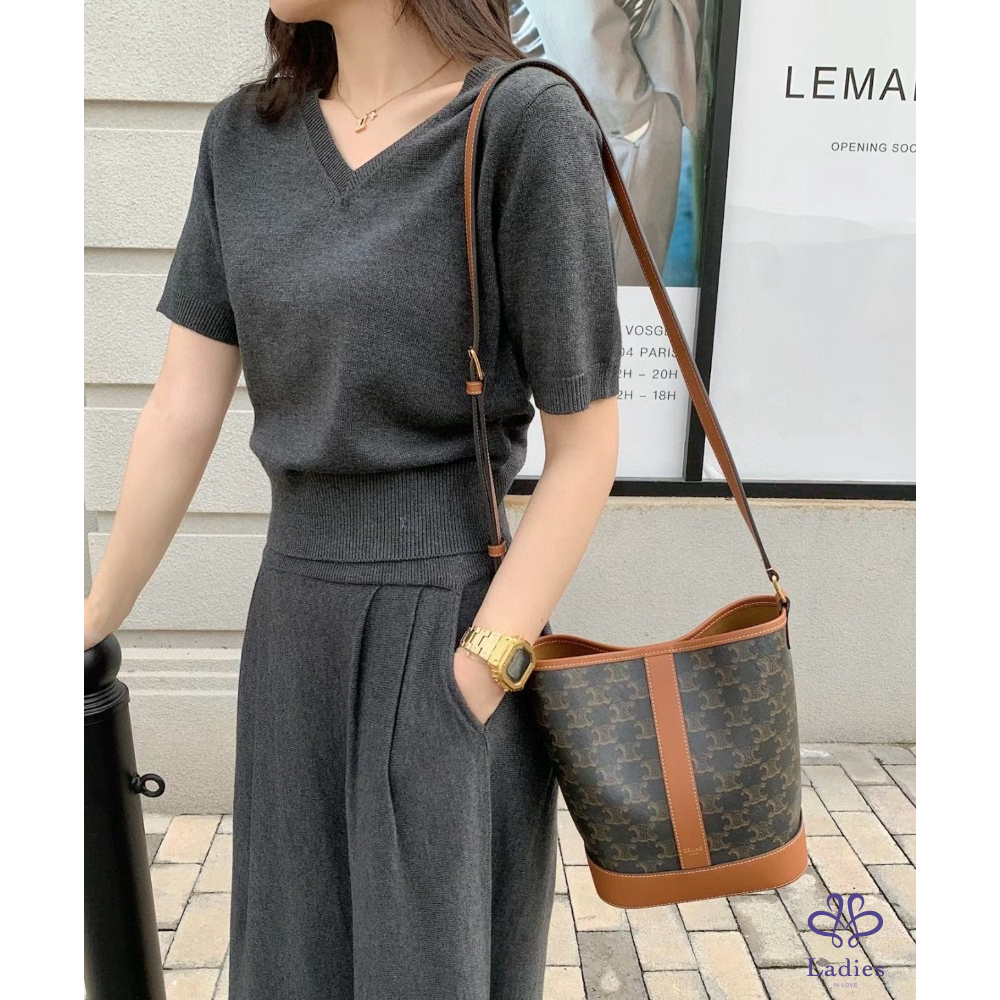Celine 賽琳 凱旋門老花水桶包 小號
