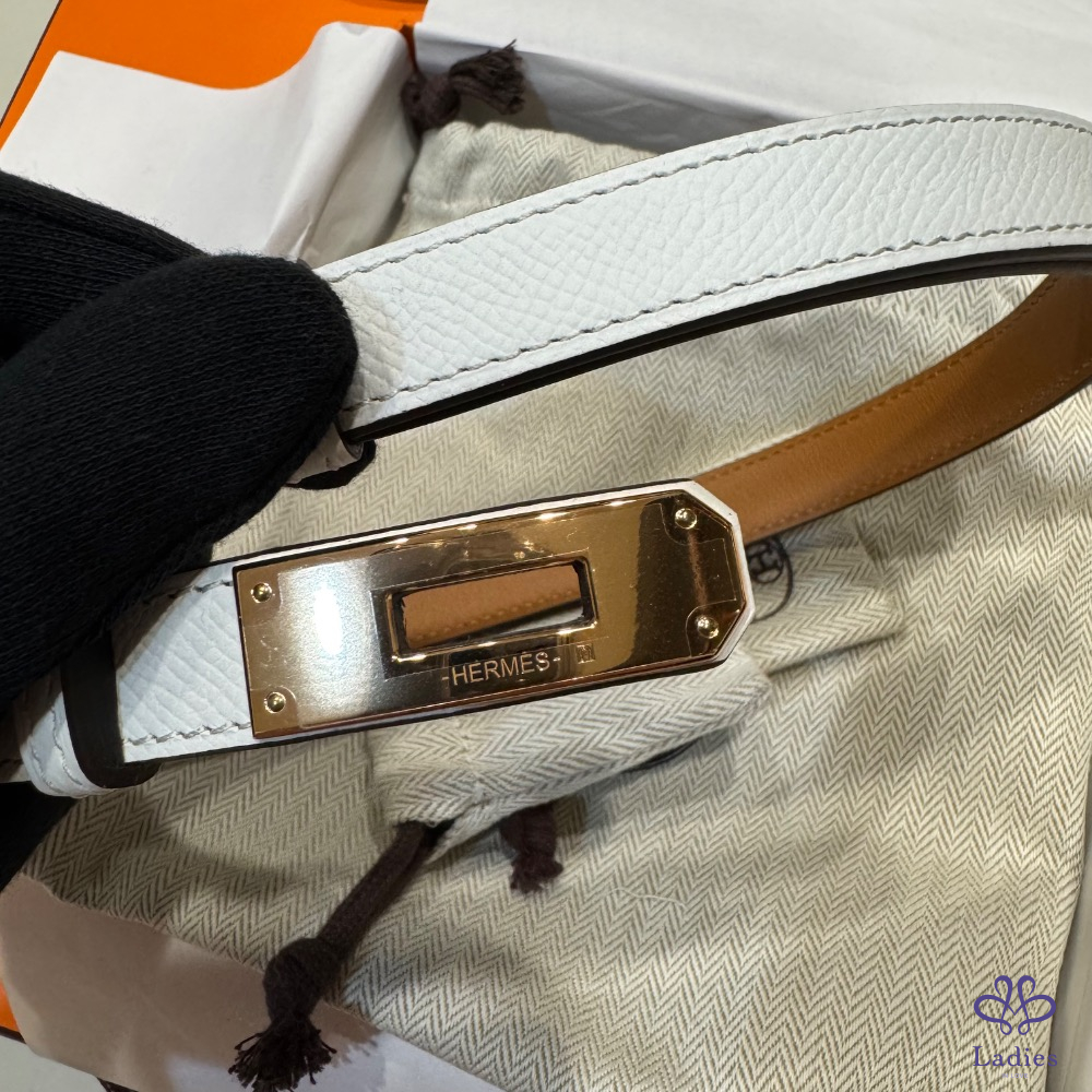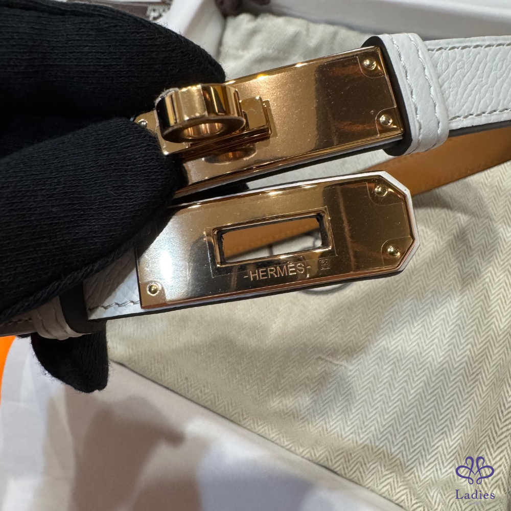 愛馬仕 Kelly Belt 凱莉皮帶 白/玫瑰金