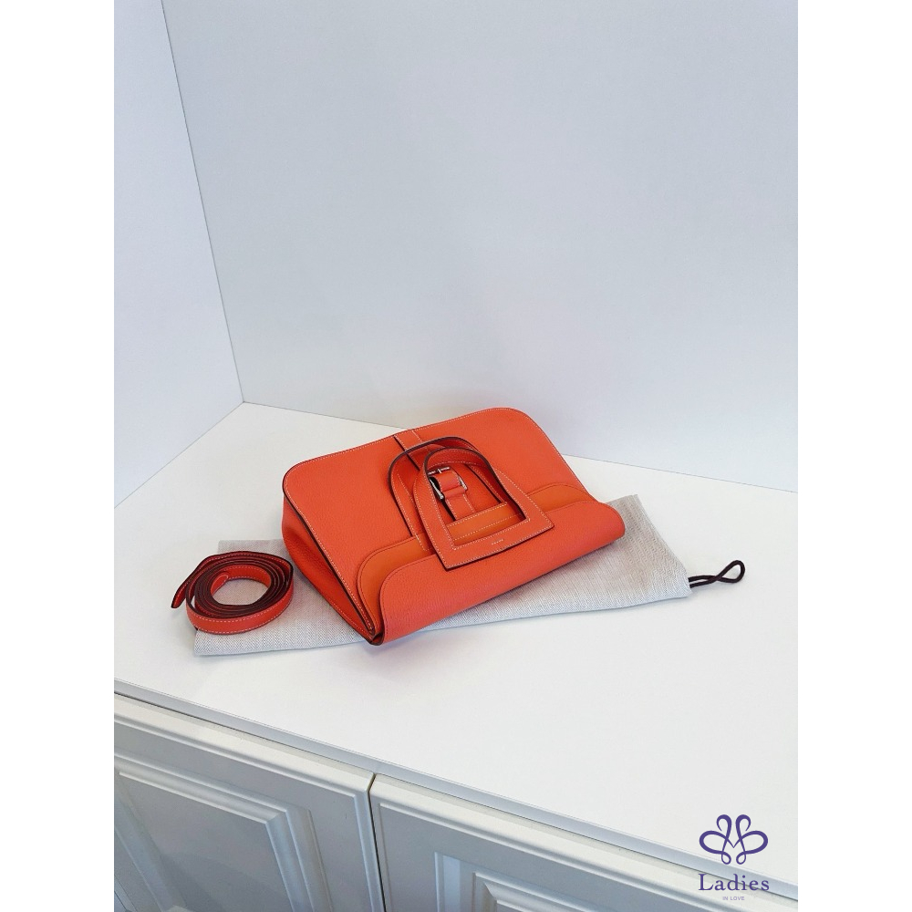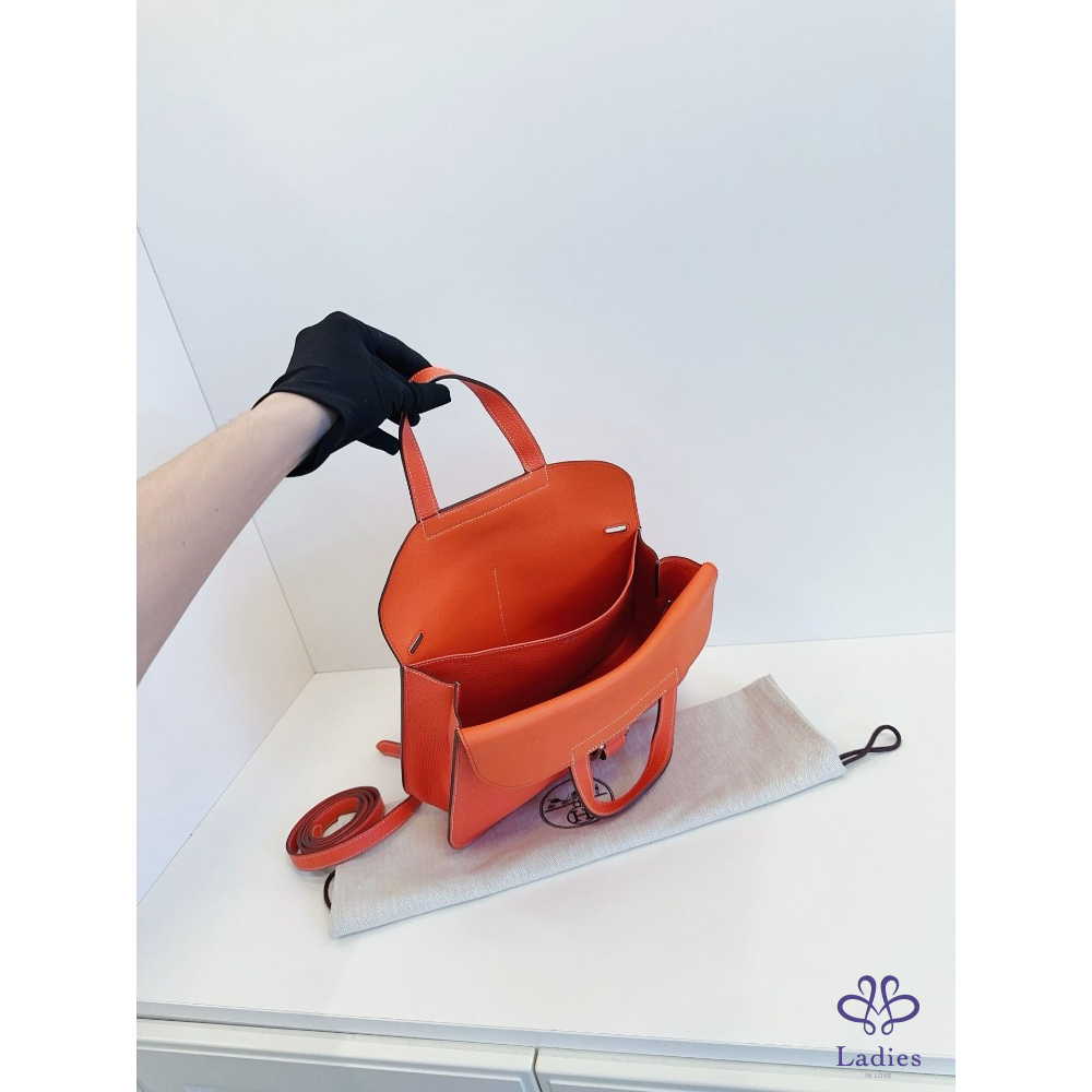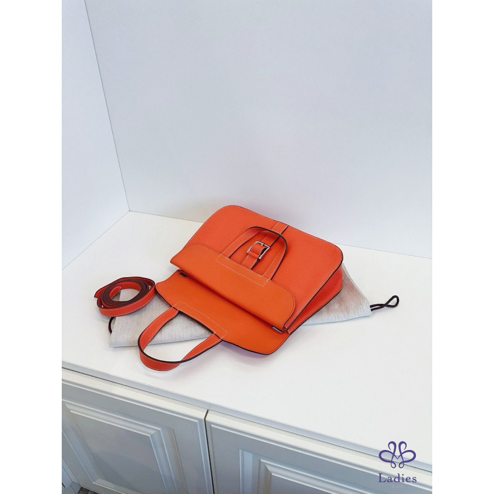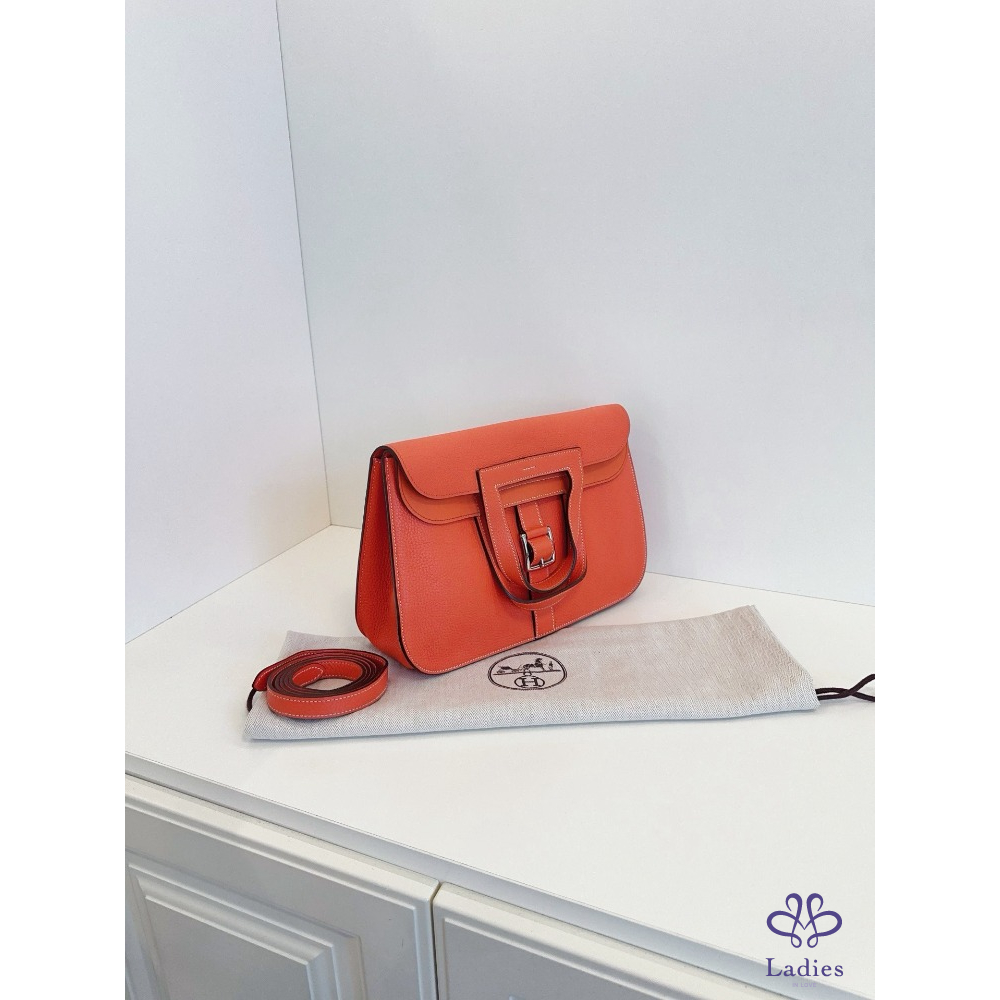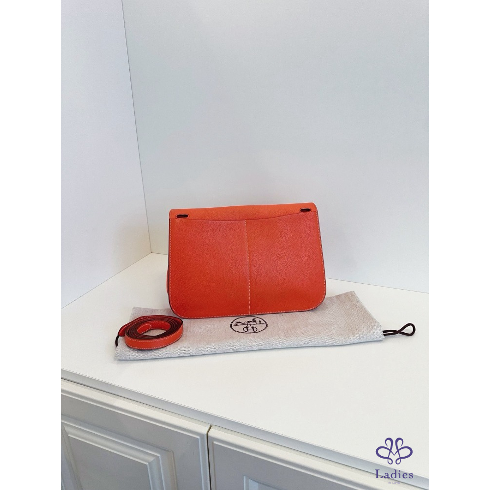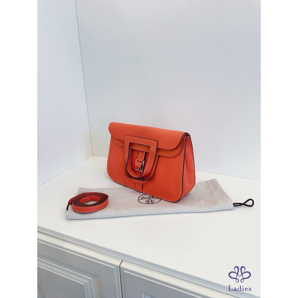 HERMES愛馬仕 31 哈拉贊 / 哈拉子馬蹄郵差包 罌粟橙 A 刻 TC 皮 夏季色系銀扣
