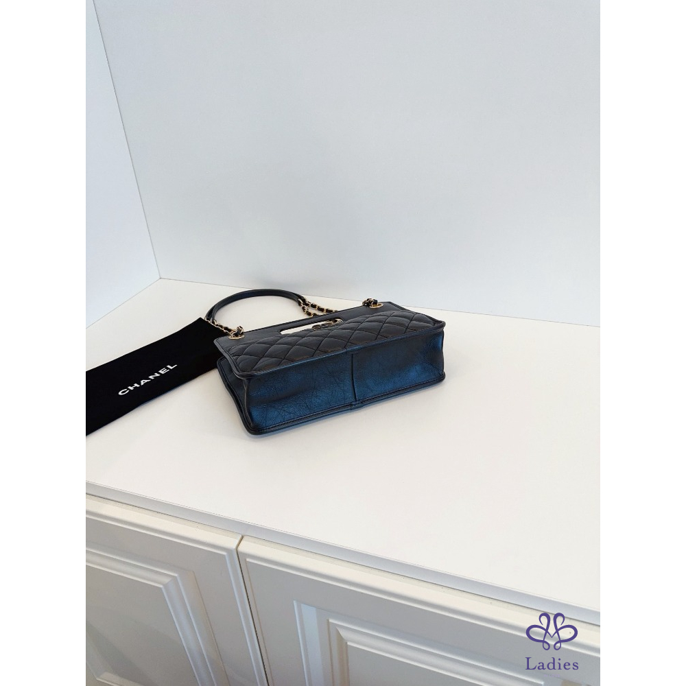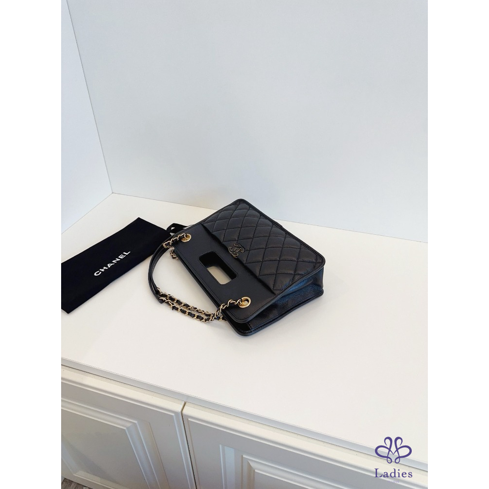 CHANEL 香奈兒 23s 黑金復古鏈條公文包 晶片帶膜