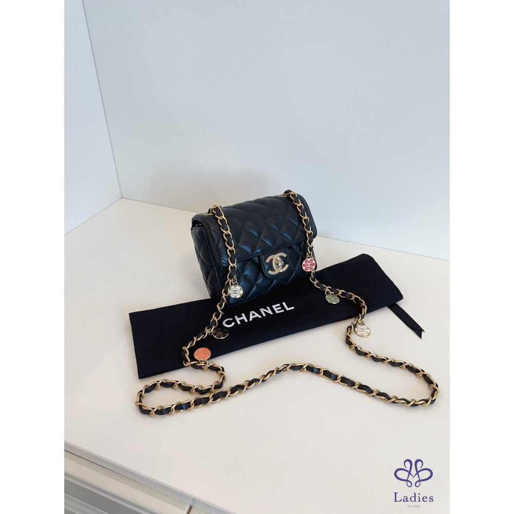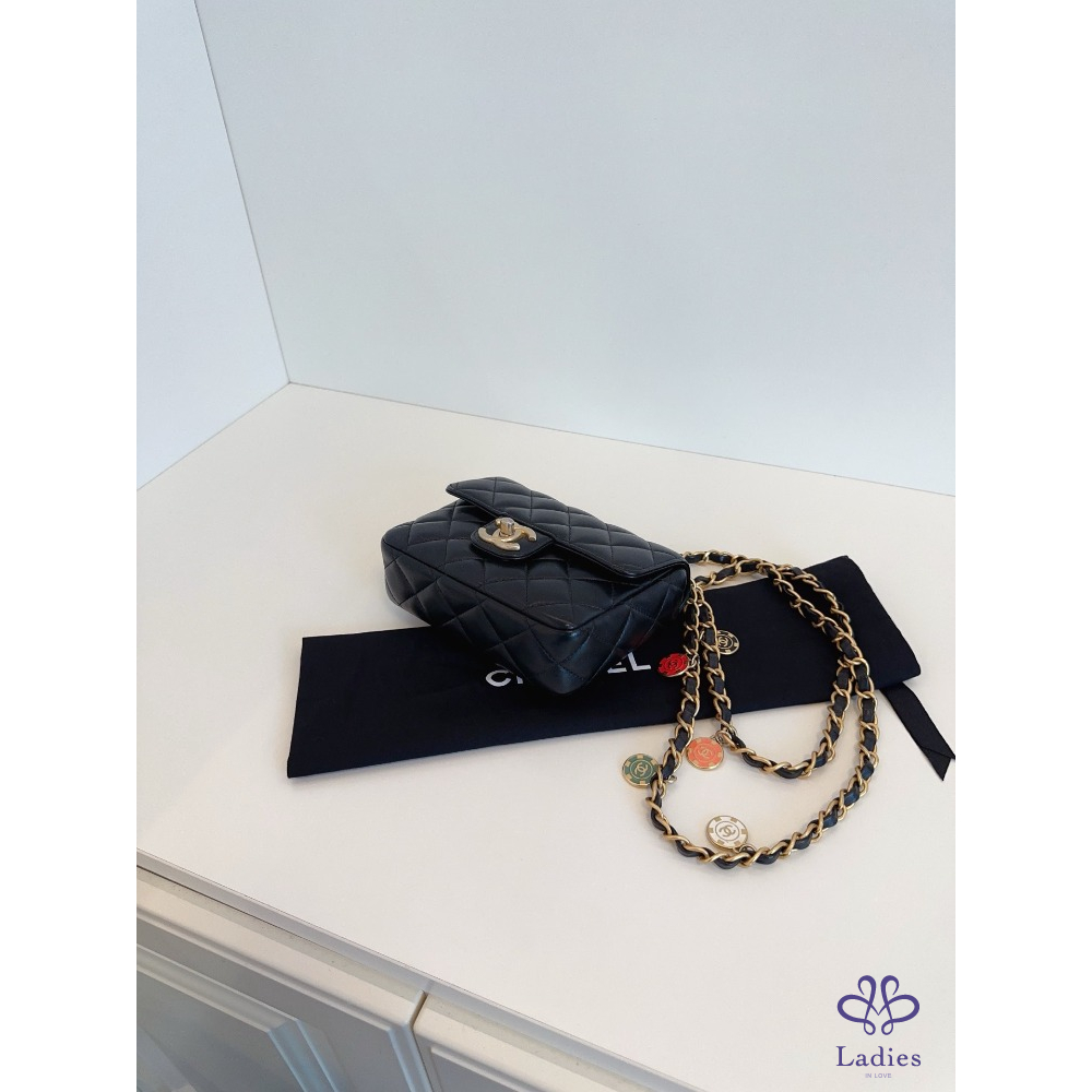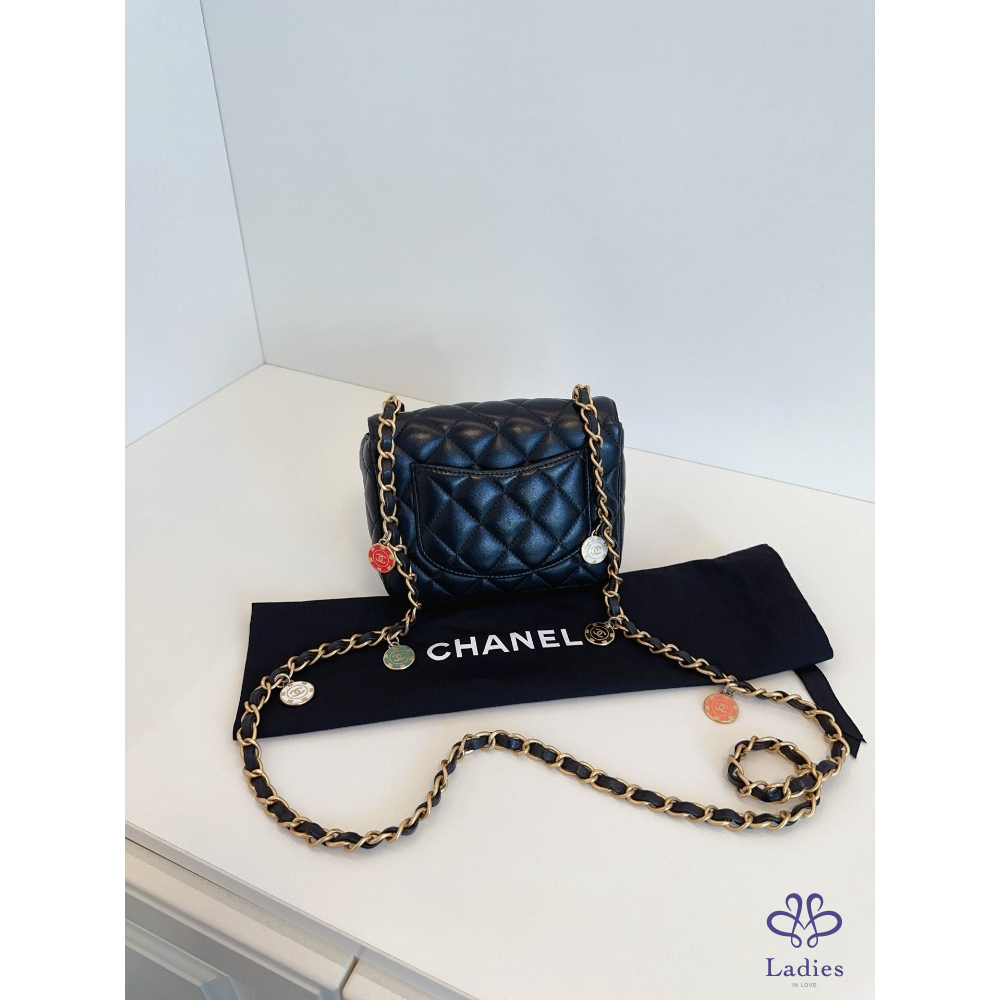 CHANEL 香奈兒 黑金 彩色琺瑯 金幣 / 籌碼 / 徽章 鍊條方胖子 23C 晶片款