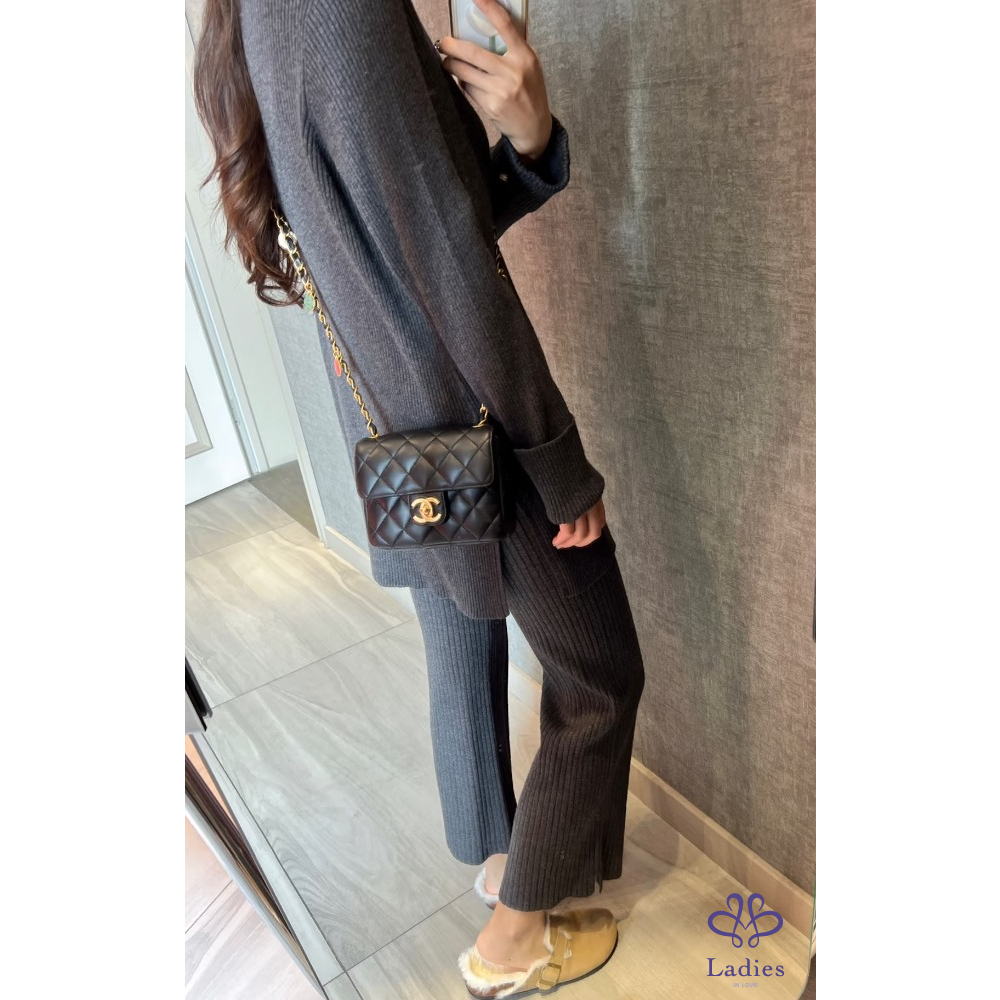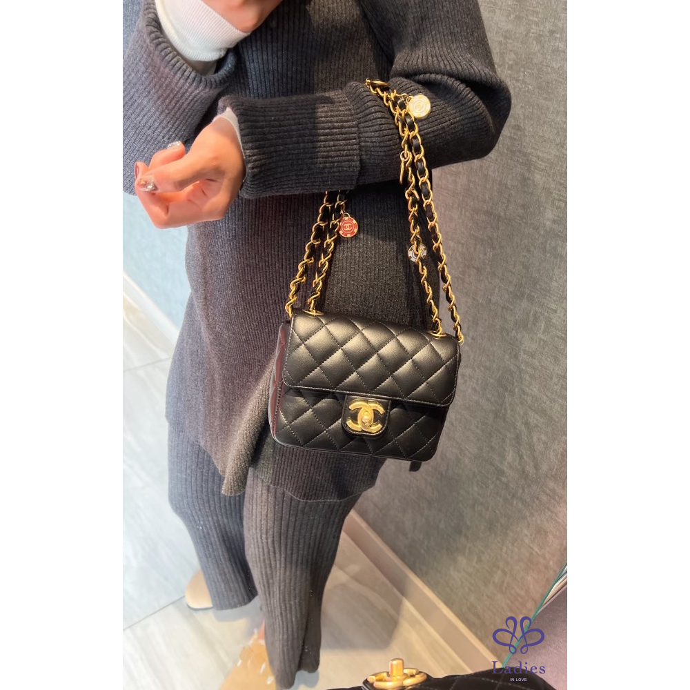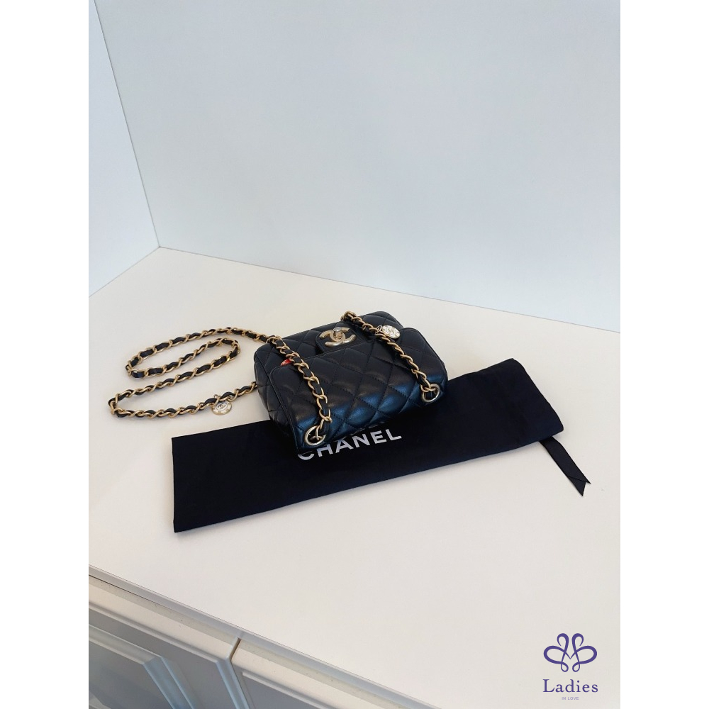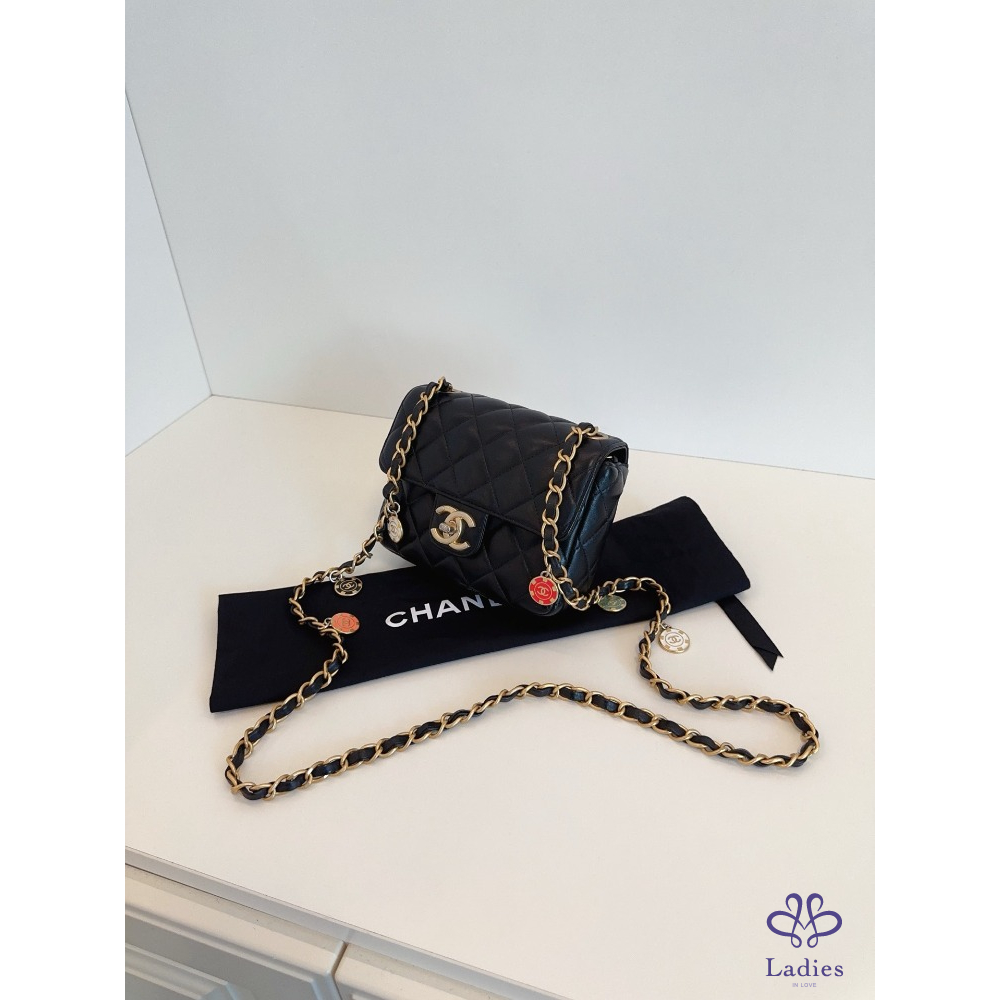 CHANEL 香奈兒 黑金 彩色琺瑯 金幣 / 籌碼 / 徽章 鍊條方胖子 23C 晶片款