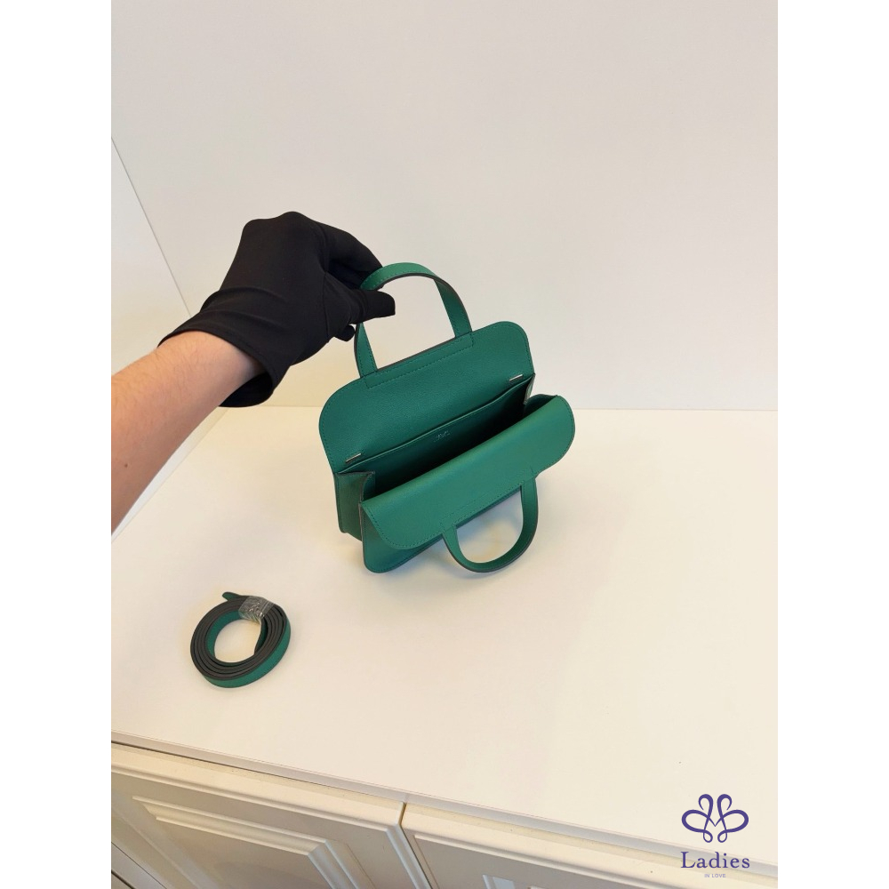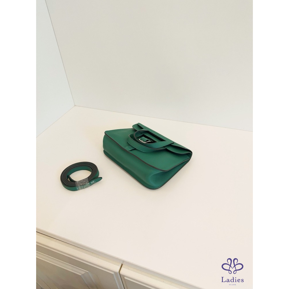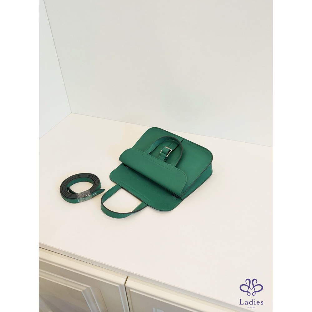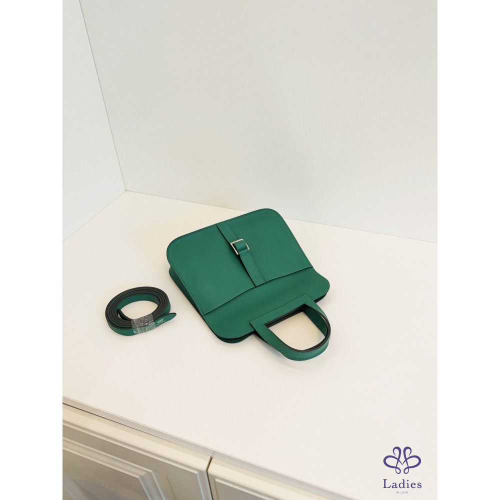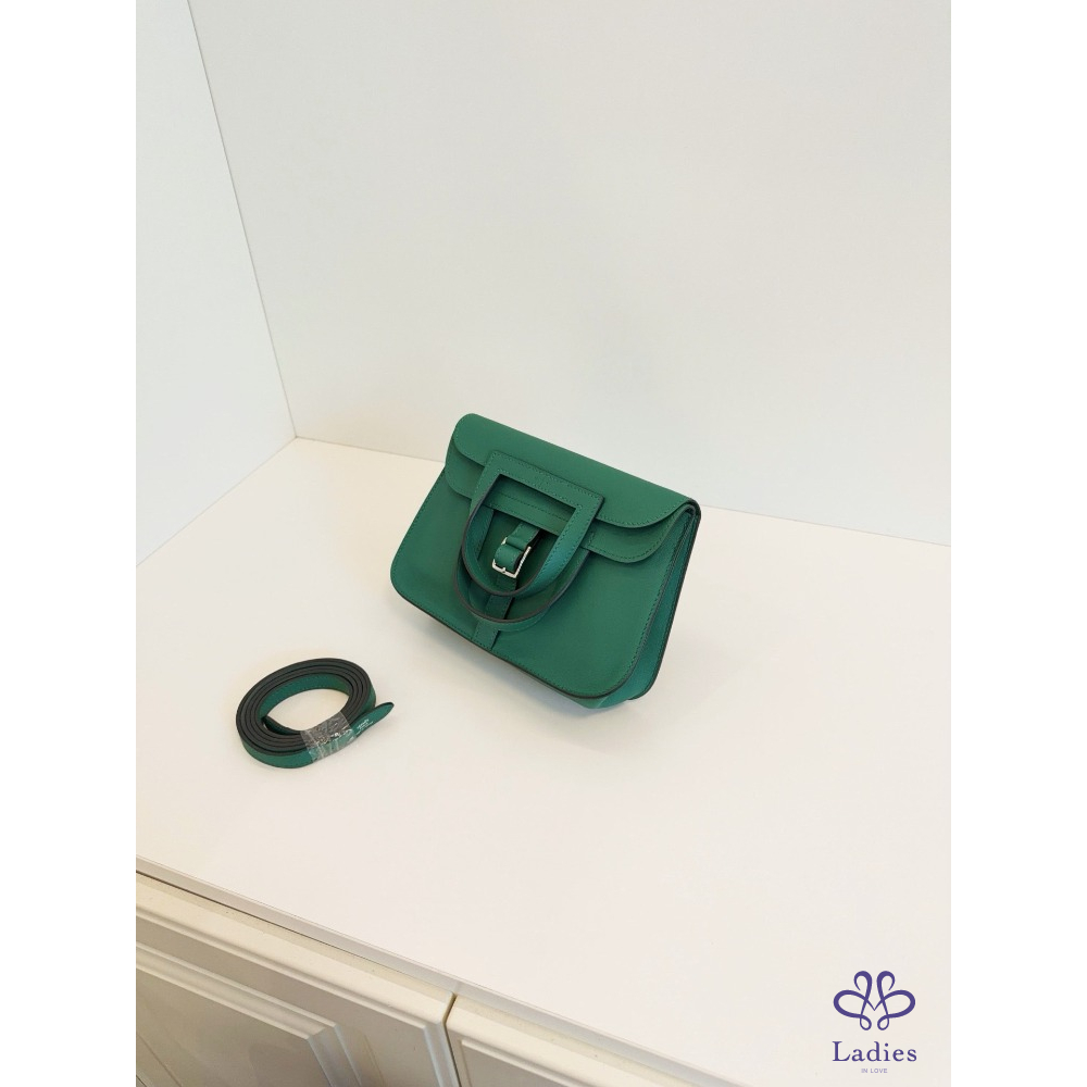 首頁 精品包包 HERMES 愛馬仕 竹子綠 銀扣 mini Halzan 迷你哈拉贊馬蹄包
