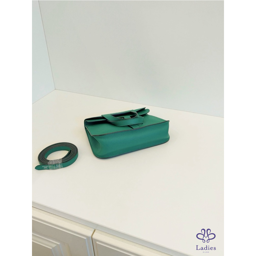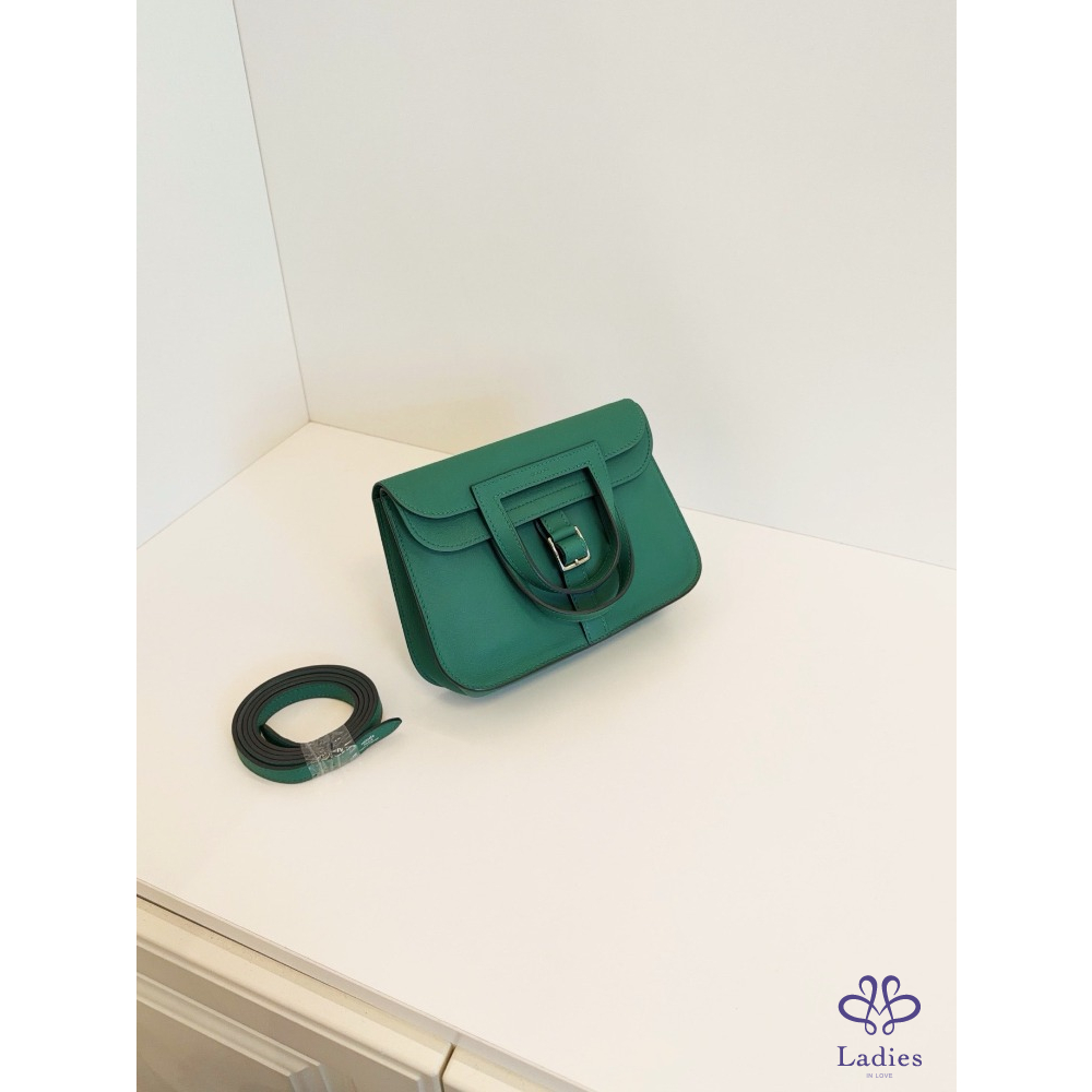 HERMES 愛馬仕 竹子綠 銀扣 mini Halzan 迷你哈拉贊馬蹄包