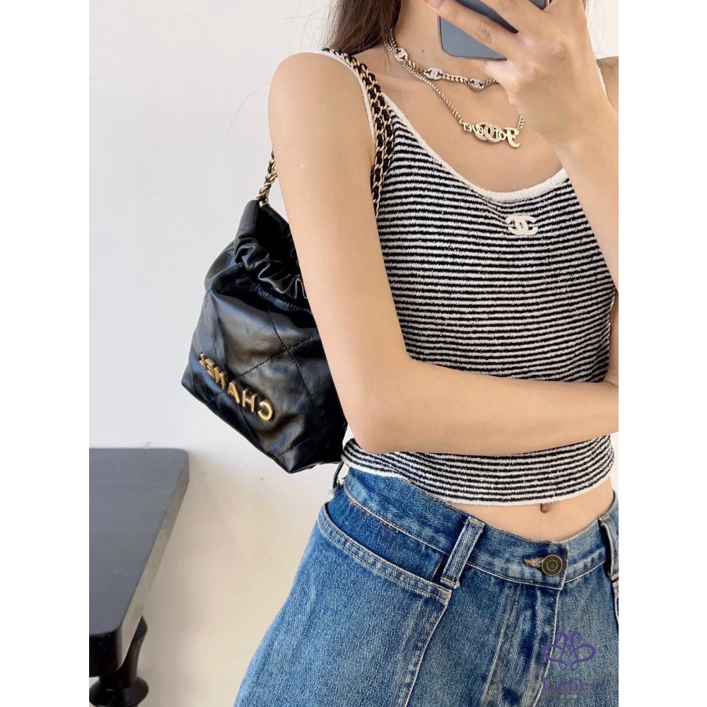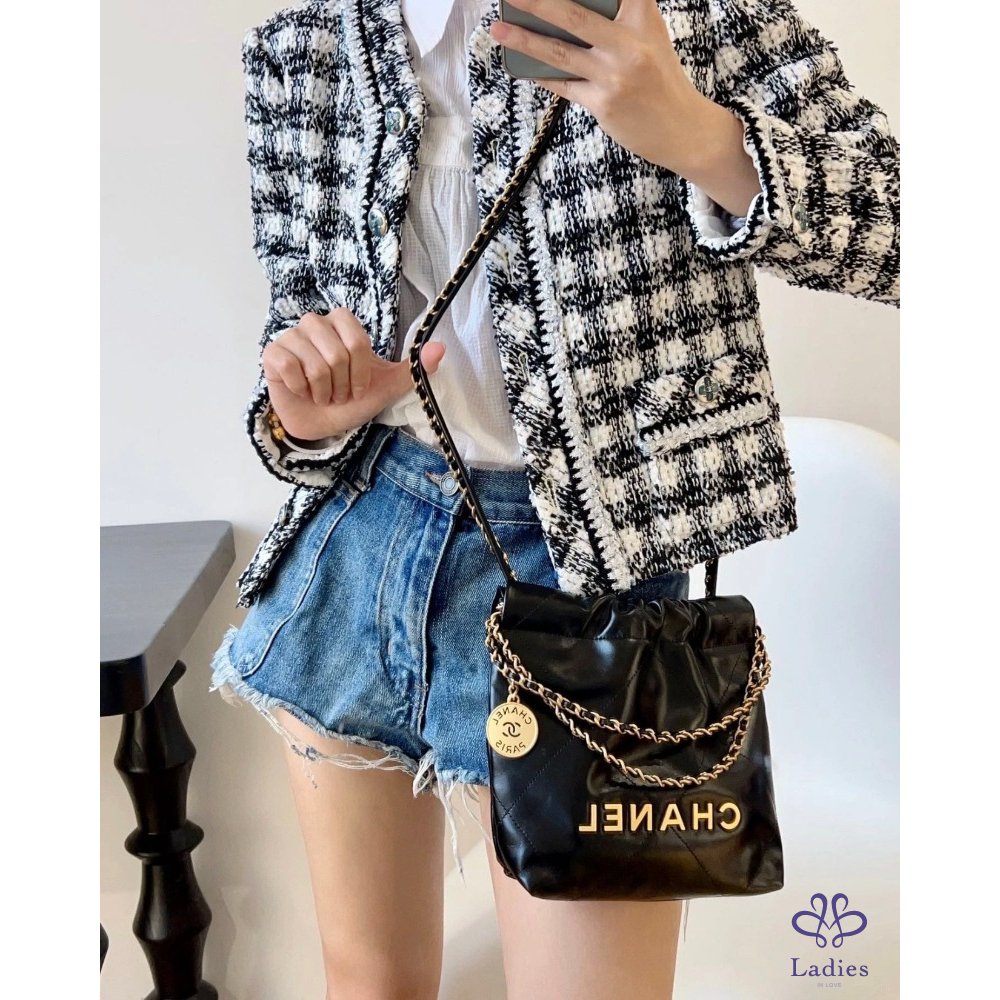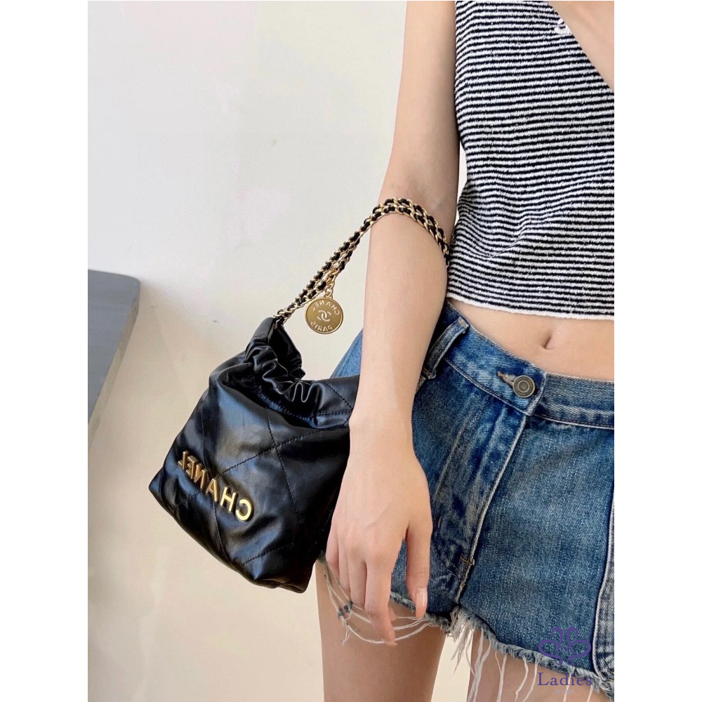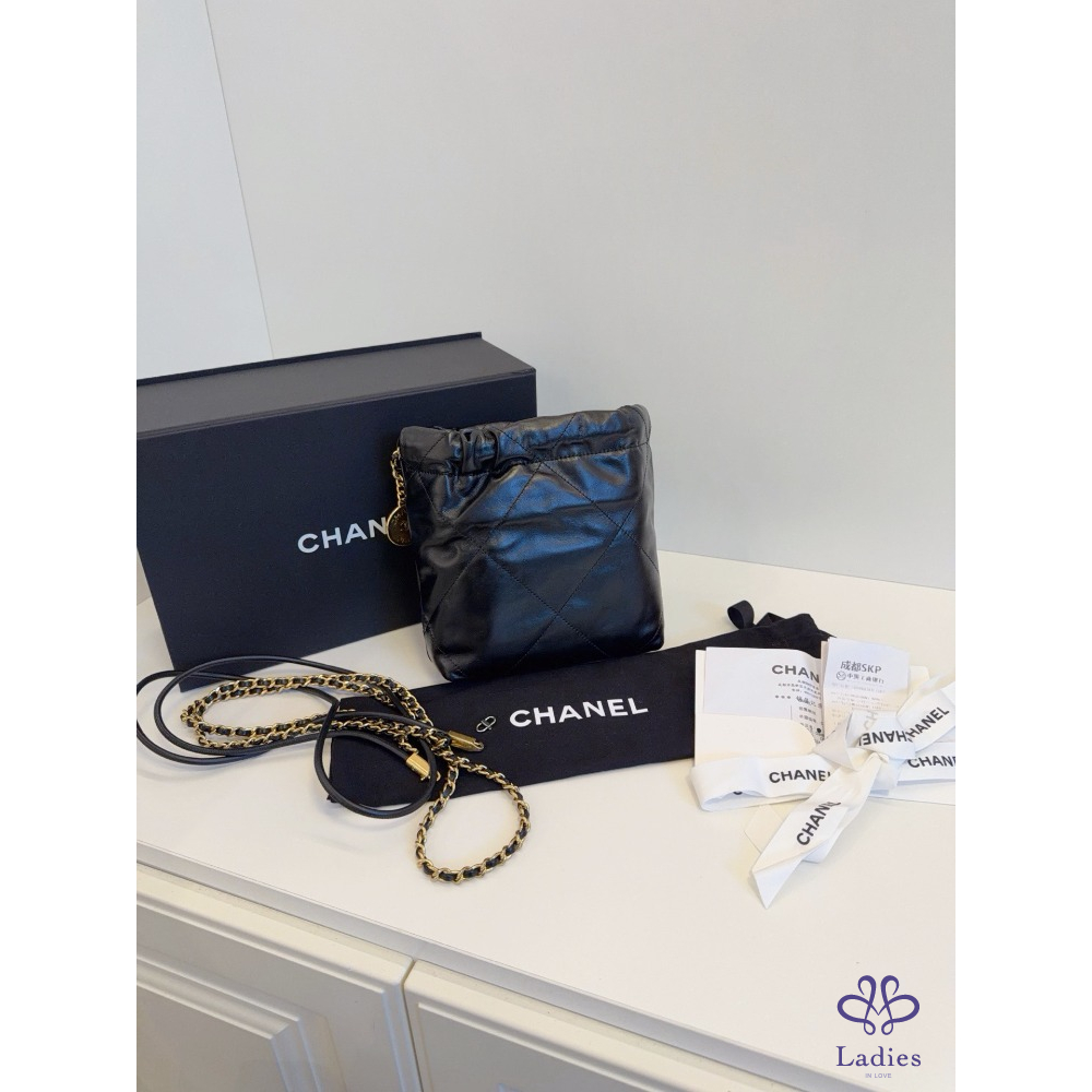 CHANEL香奈兒 24a 限量特別款⭐️黑金 mini Bag 珍珠鏈迷你垃圾袋 牛皮晶片款 全新新款