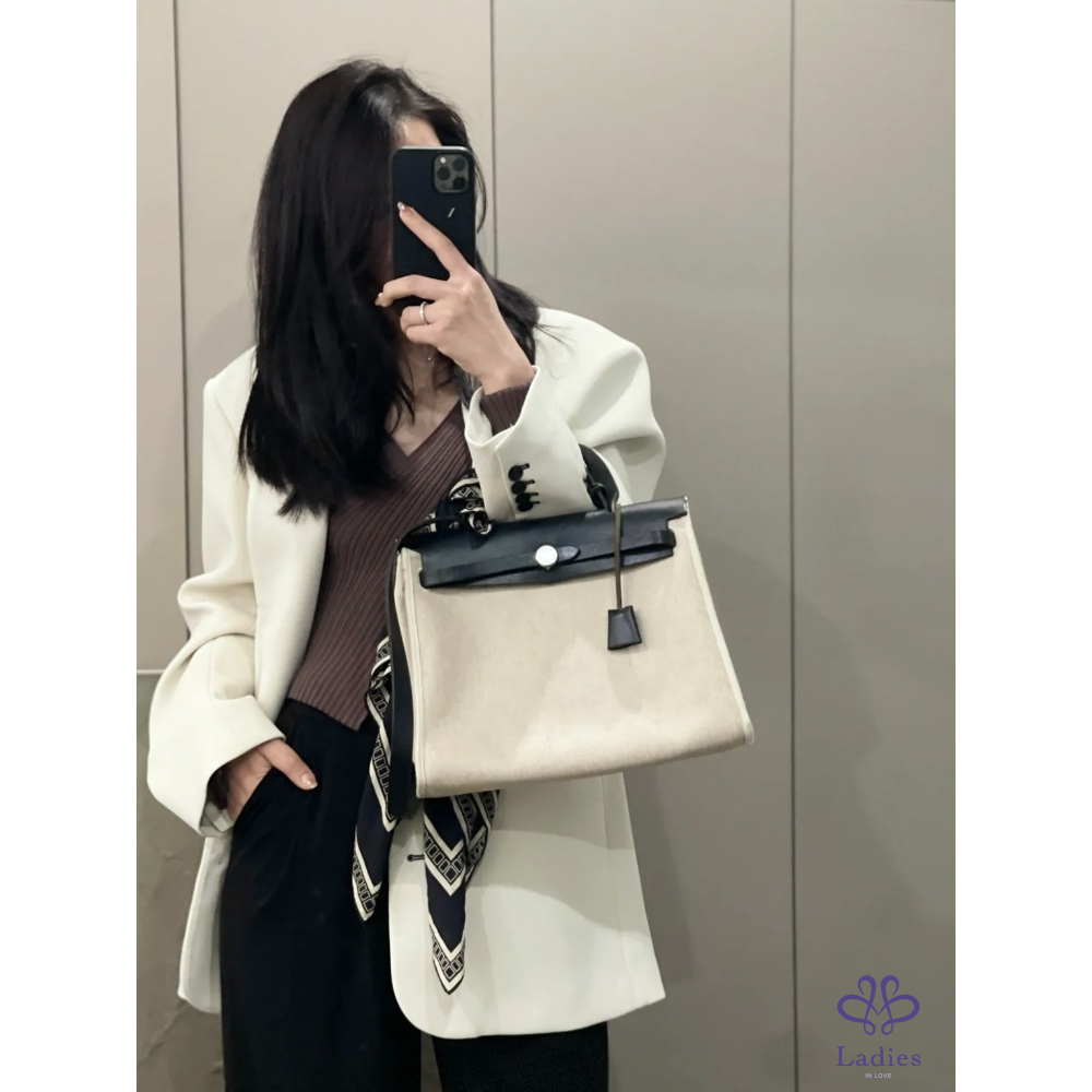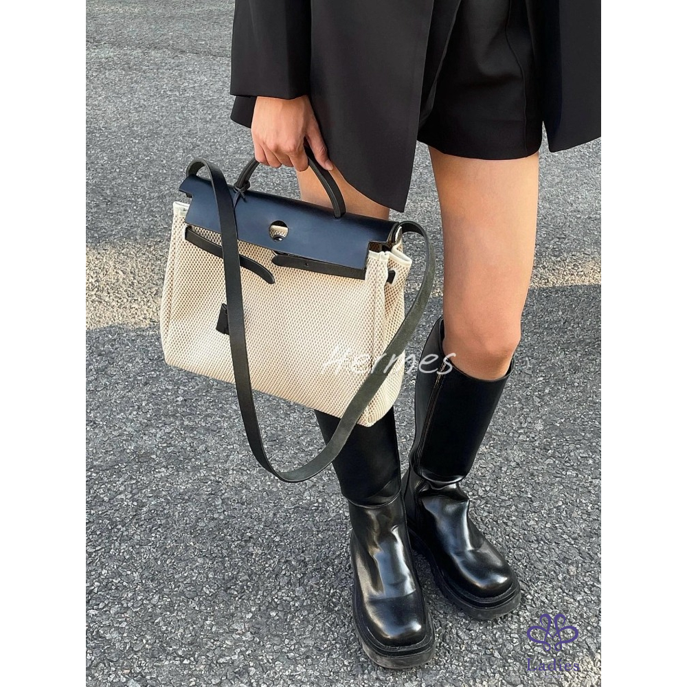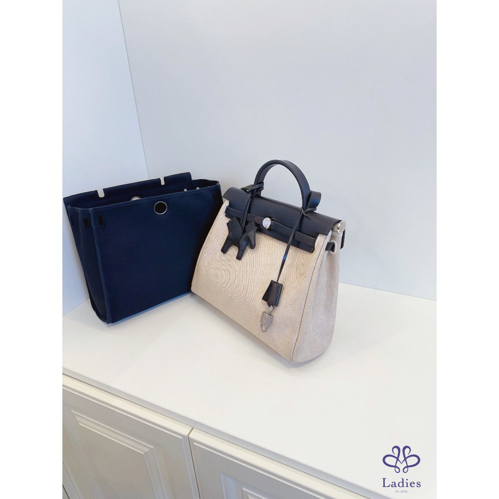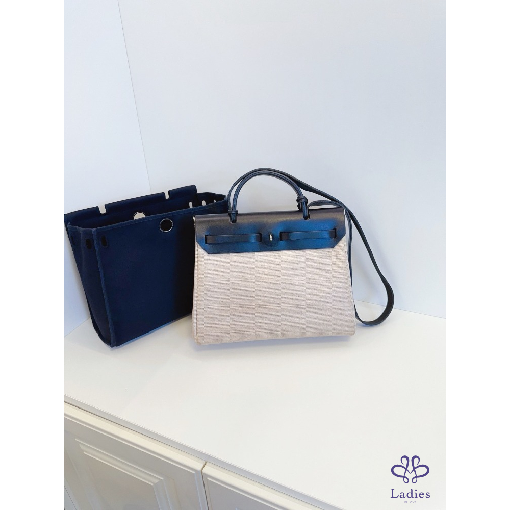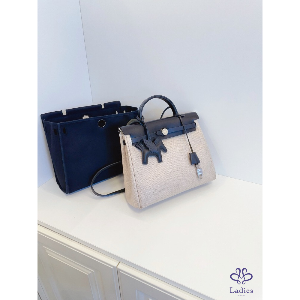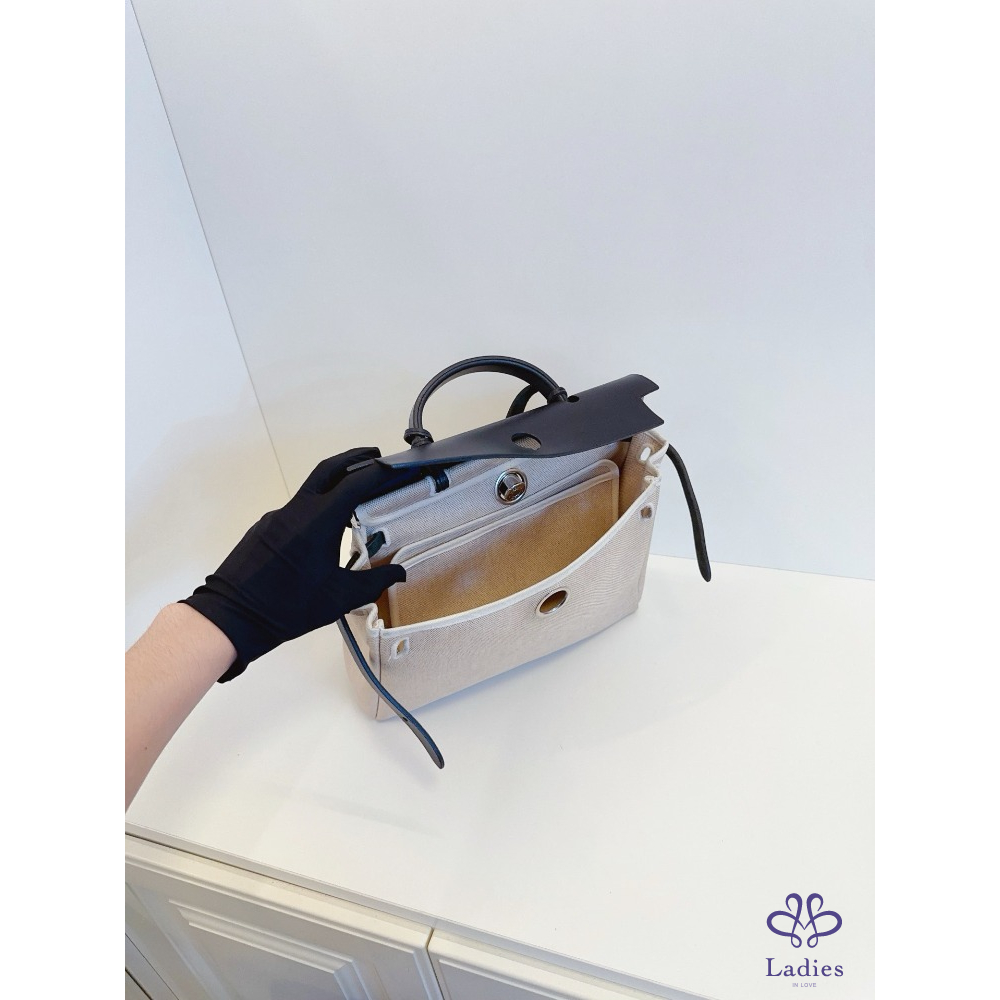 首頁 精品包包 HERMES 愛馬仕 中古 Herbag 31 單肩款 本命熊貓黑白🐼配色 雙袋可替換 黑蓋銀扣