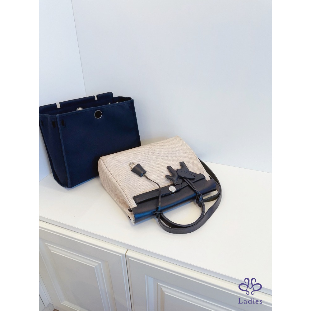 HERMES 愛馬仕 中古 Herbag 31 單肩款 本命熊貓黑白🐼配色 雙袋可替換 黑蓋銀扣
