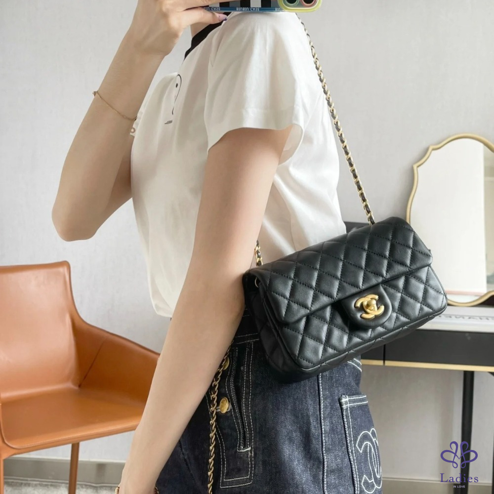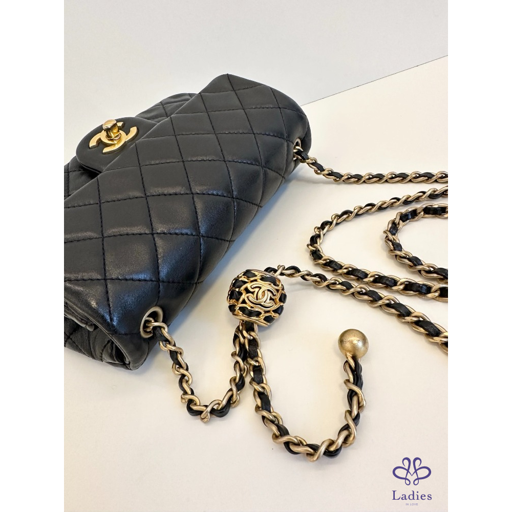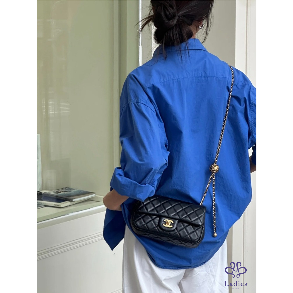 首頁 精品包包 CHANEL 香奈兒 黑金核桃金球 CF 大 mini 晶片款