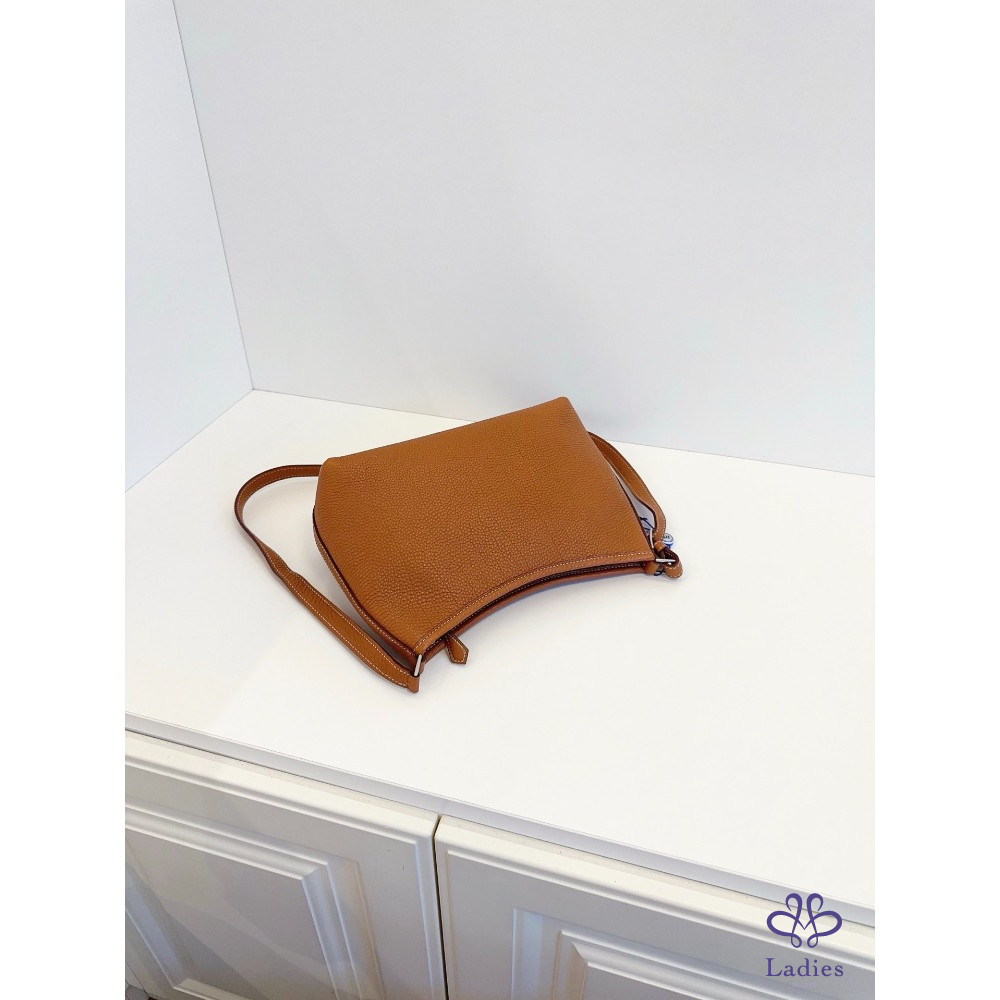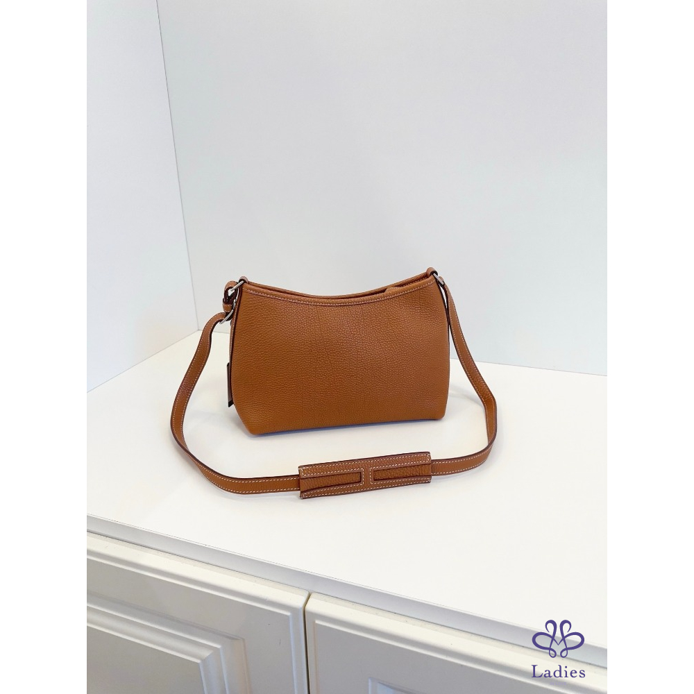 HERMES 愛馬仕 稀有 berlingot 金剛色金棕 銀釦 外縫線 斜揹 / 單肩 / 腋下 / 手提包 togo 皮質