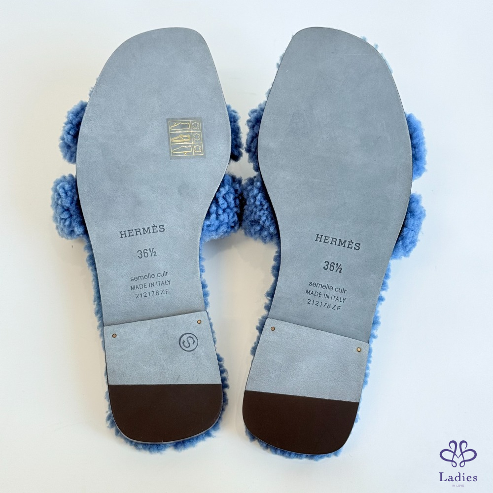 首頁 精品女鞋 HERMES 愛馬仕 霧霾藍 泰迪H拖 36.5碼 全新 02708