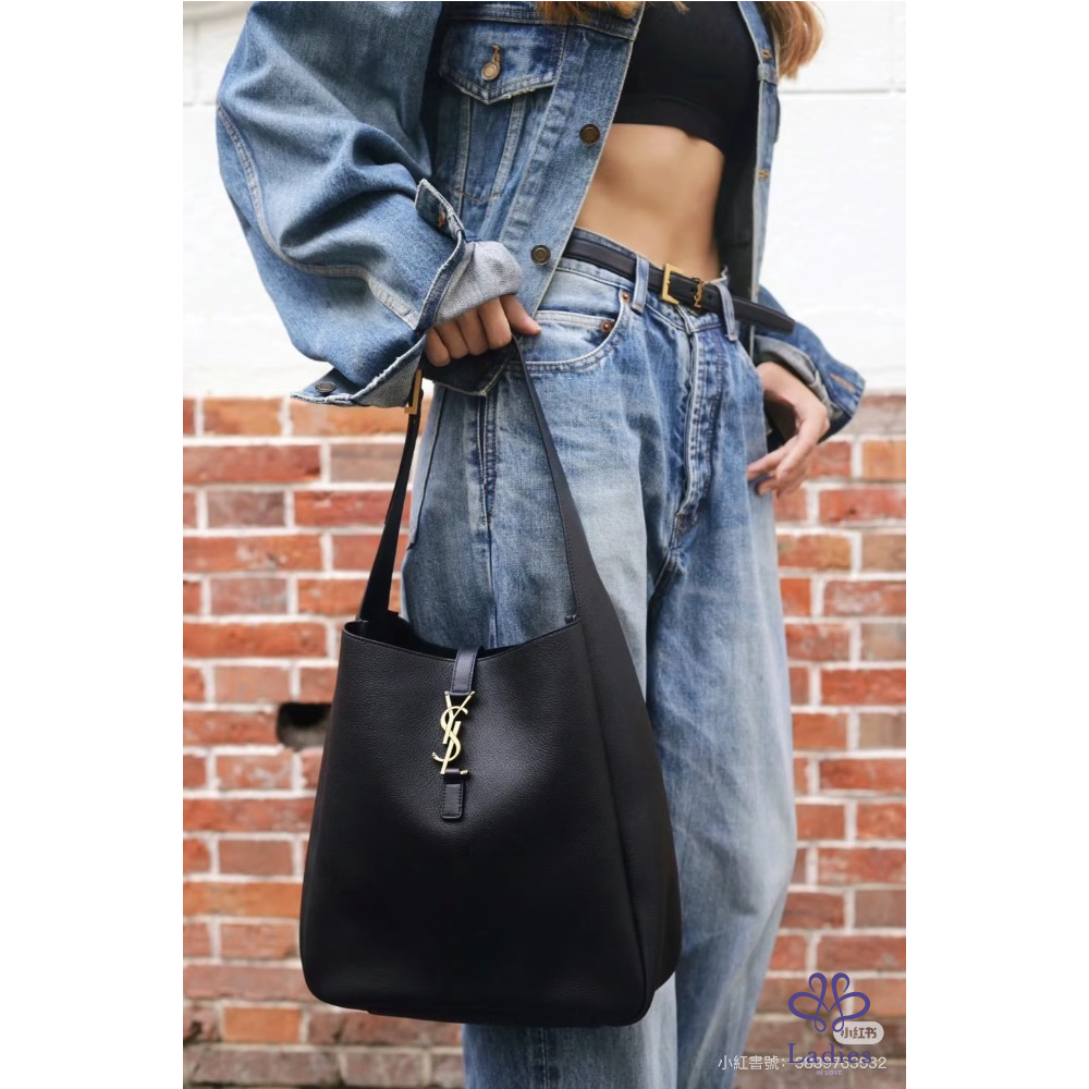 首頁 精品包包 YSL 聖羅蘭 黑金 Le5à7 Hobo 腋下包 水桶包 Rose 同款大尺碼 23編碼