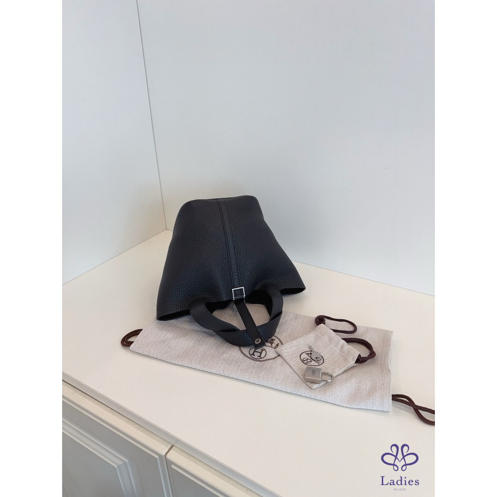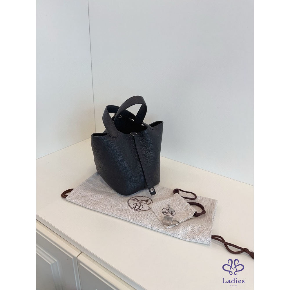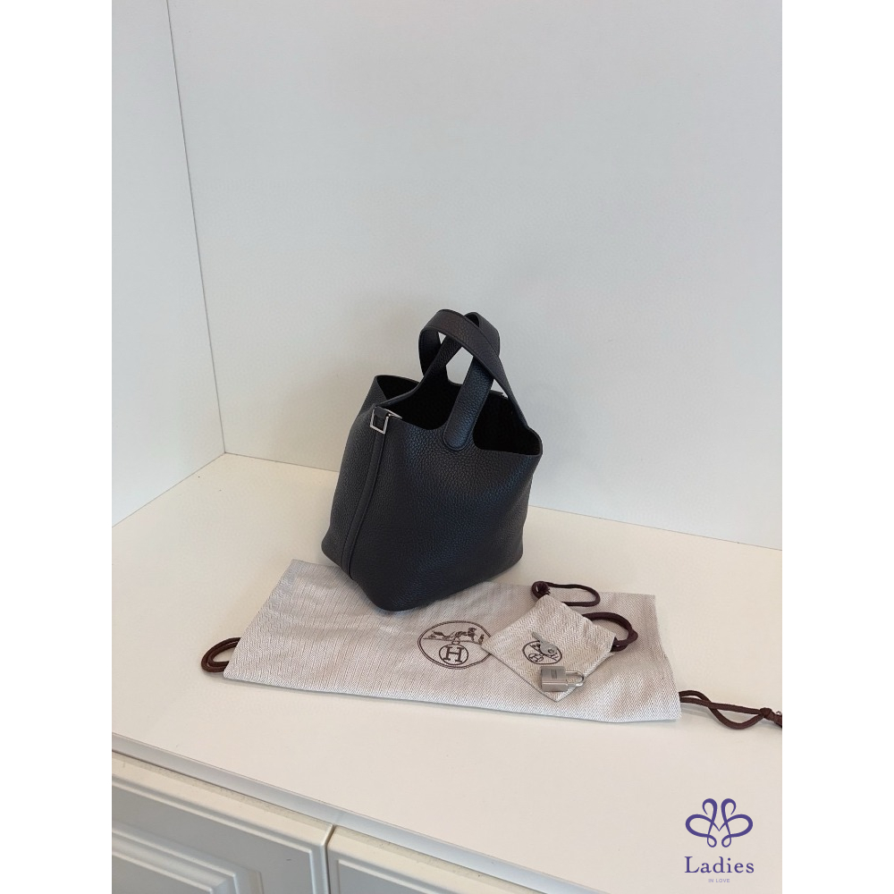 HERMES 愛馬仕 Z 刻 Picotin 18 黑銀菜籃包 TC 皮