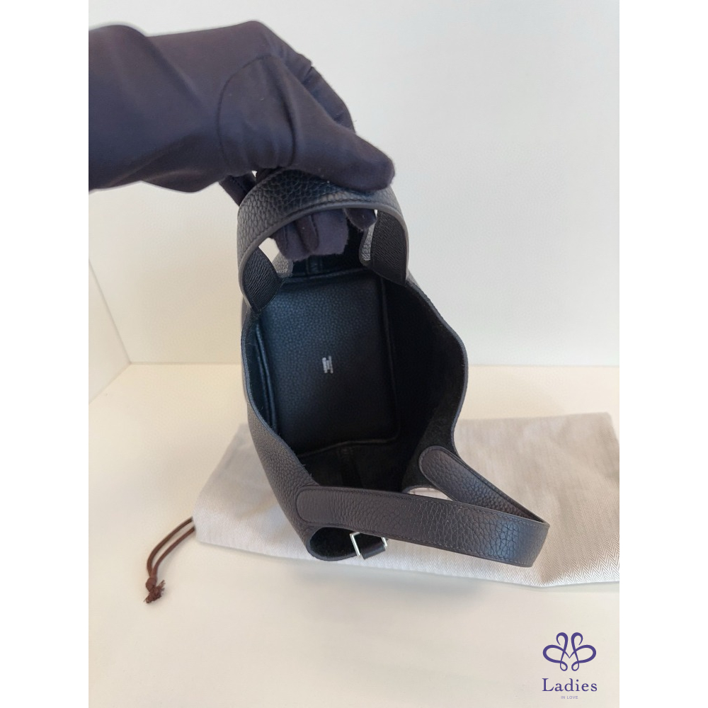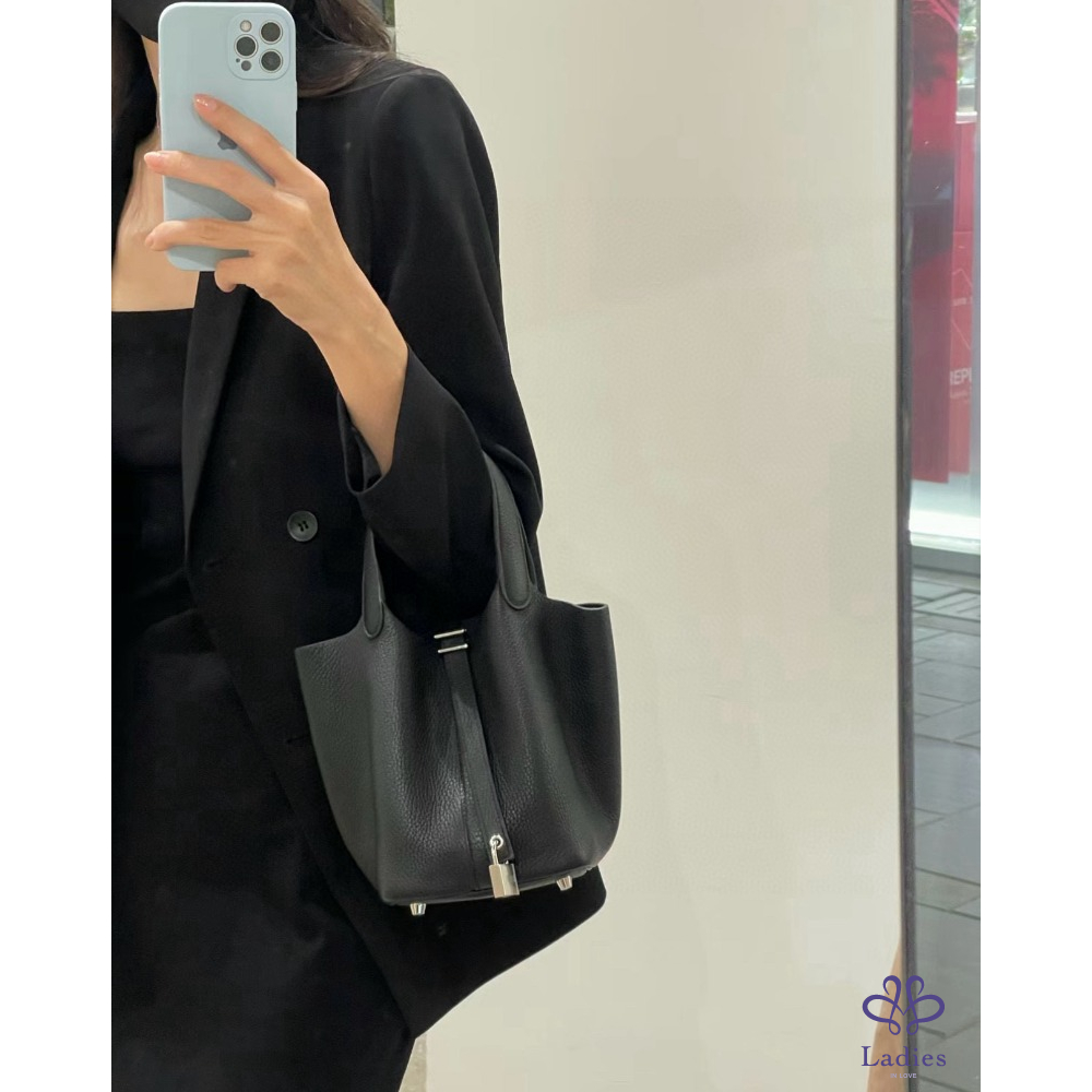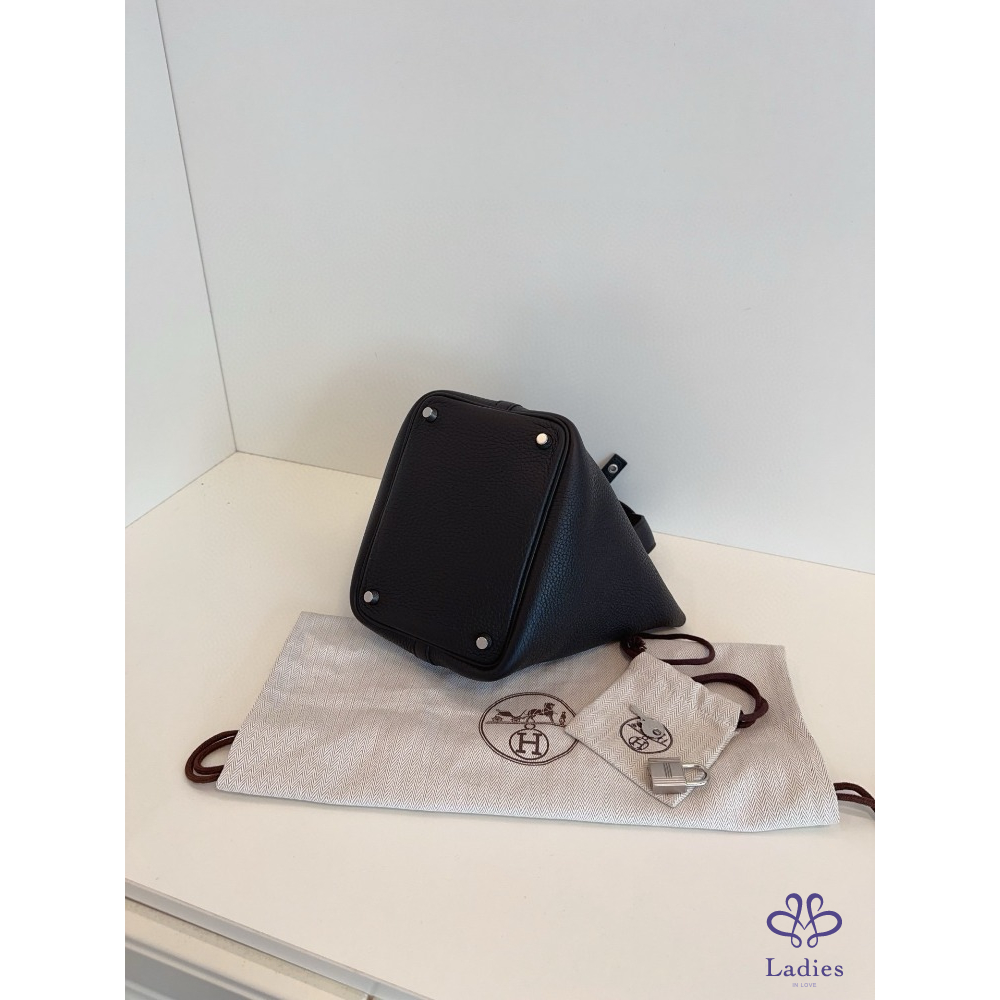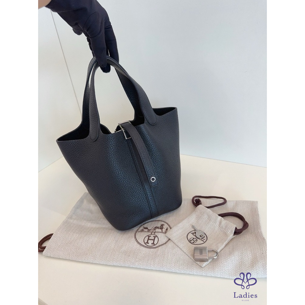 HERMES 愛馬仕 Z 刻 Picotin 18 黑銀菜籃包 TC 皮