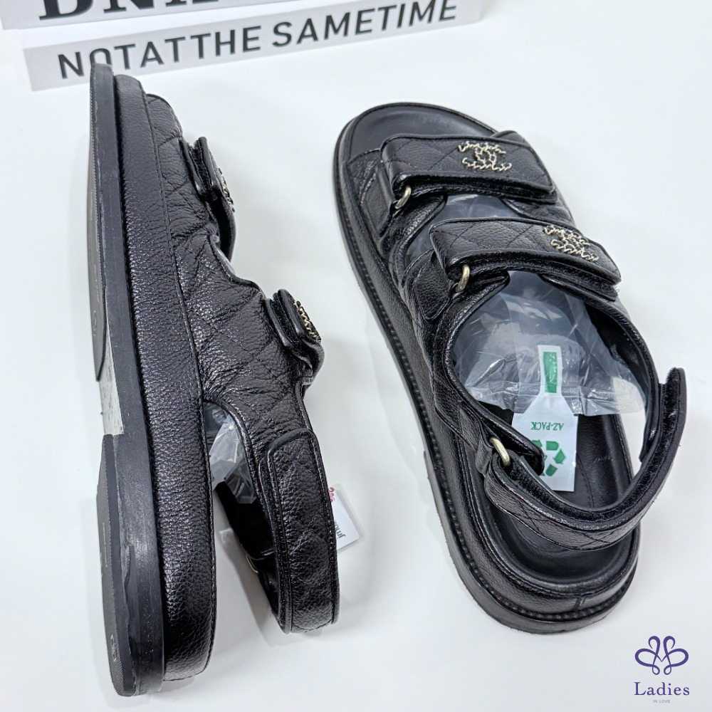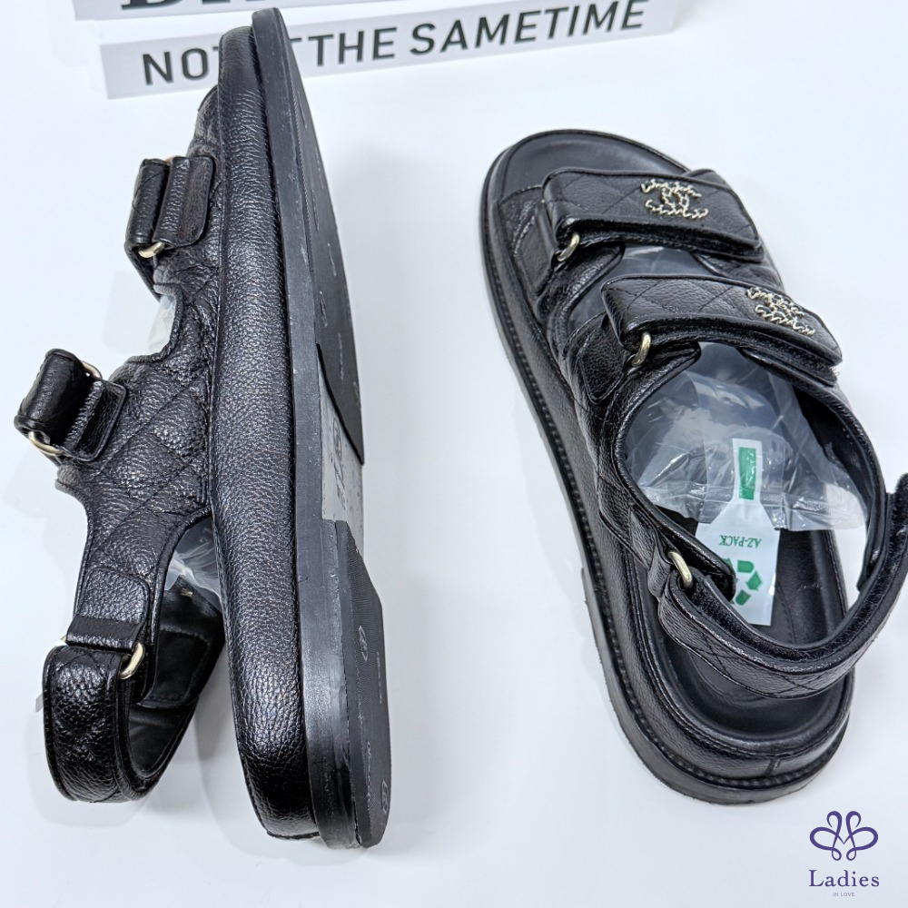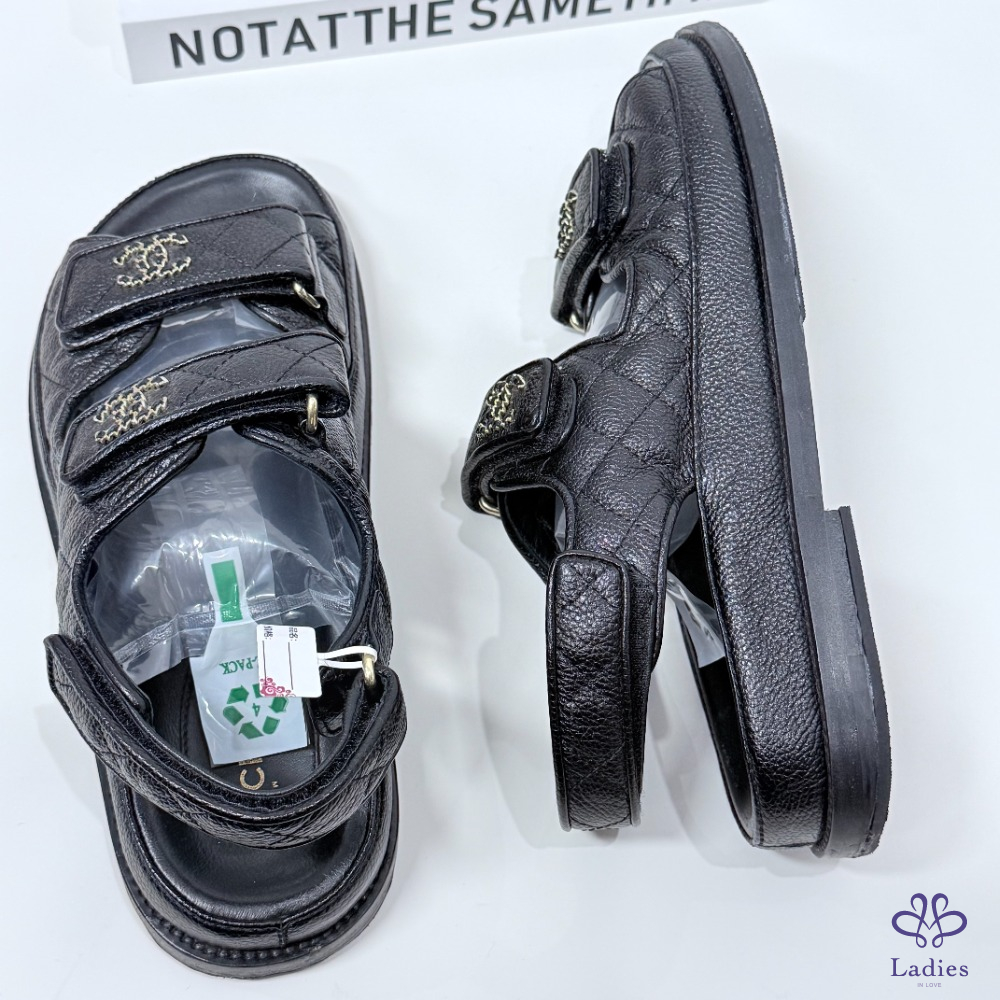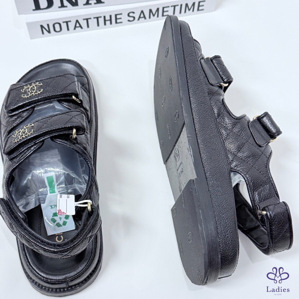 CHANEL香奈兒 黑金魔術貼涼鞋 37.5碼 如圖描述 02705