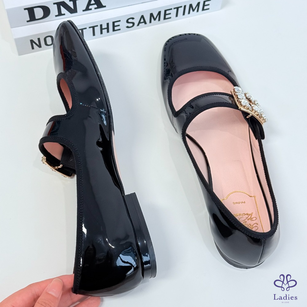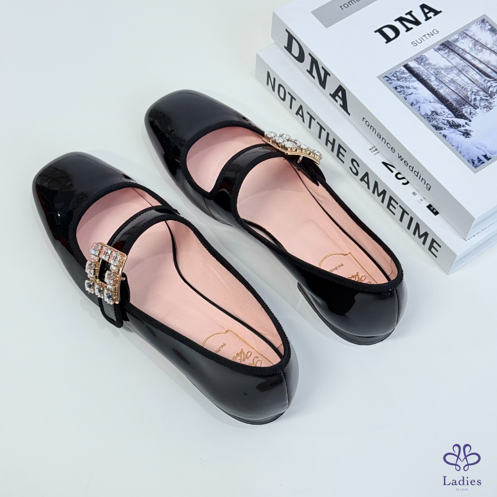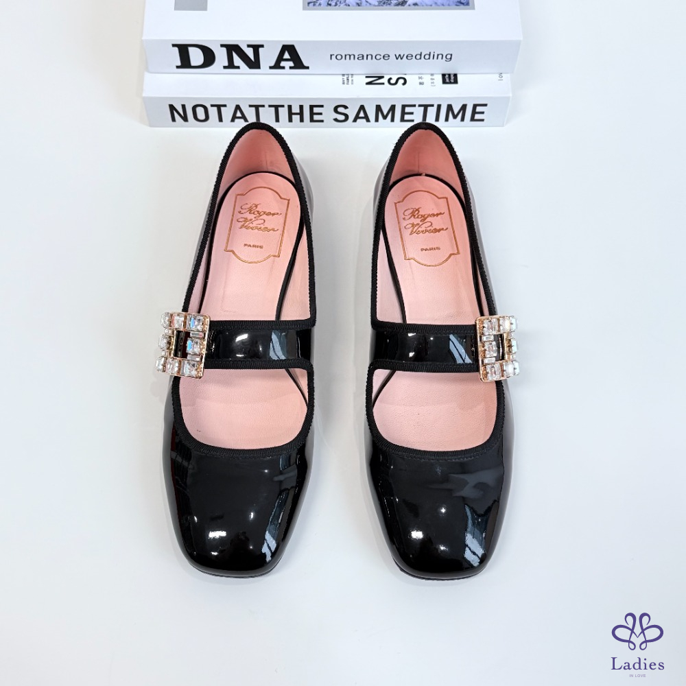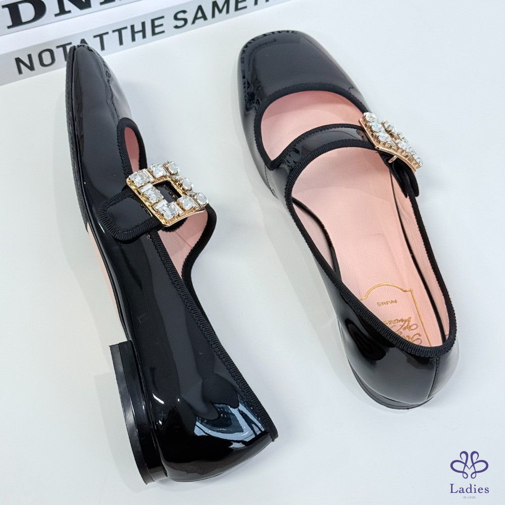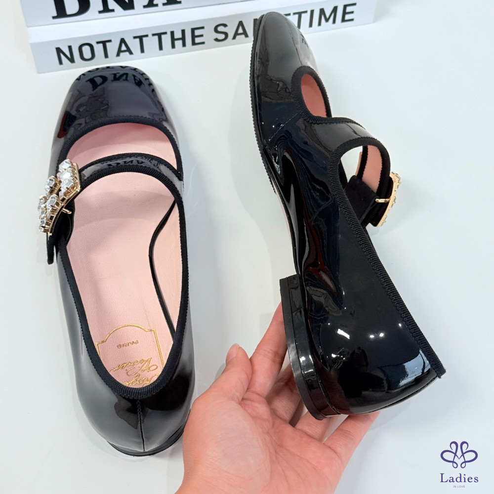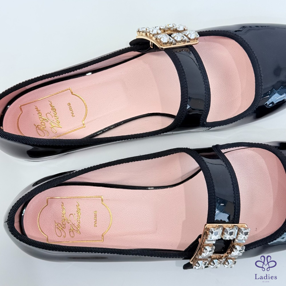 ROGER VIVIER 羅杰維維亞 漆皮鑽扣平底鞋 39碼 如圖描述 02698