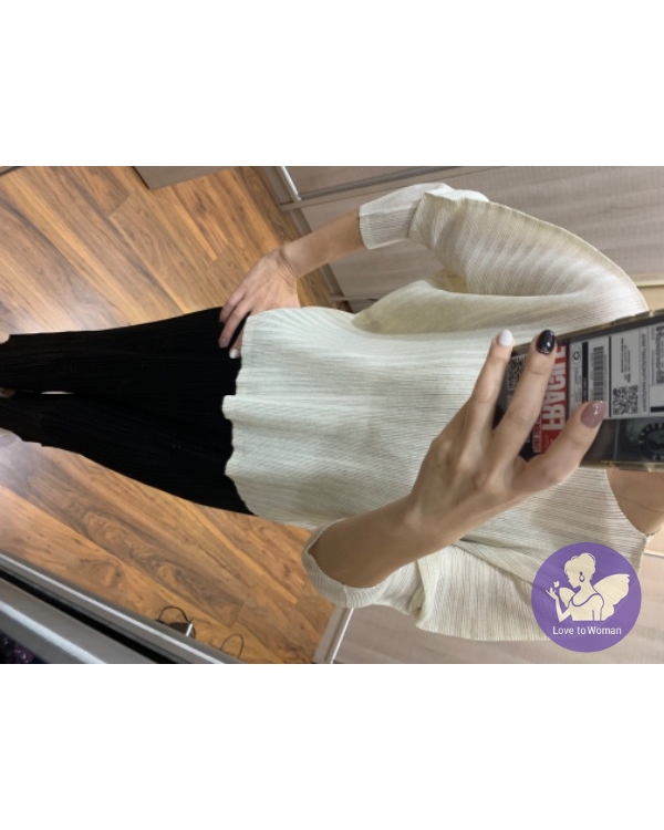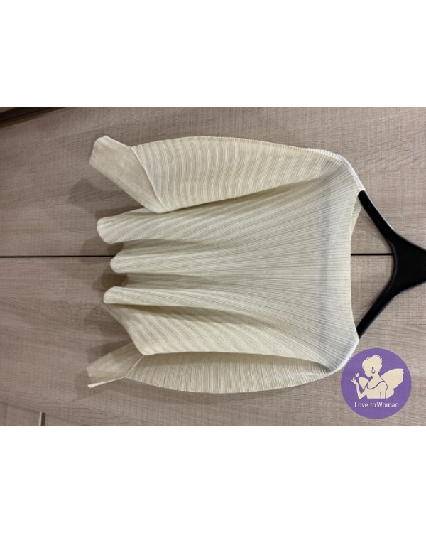 首頁 精品服飾 三宅一生Pleats please米白排褶羊角袖上衣