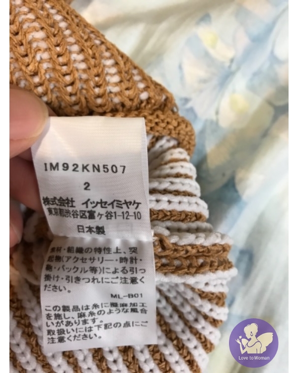 產品信息 寵愛編號A011638 售三宅一生ISSEY MIYAKE上衣(全新) 售4280(含7-11店到店) 請代購從日本購入,購入價約日幣30000左右。尺寸是2號,購入後沒有穿過,吊牌還在,全新。質料有厚度,不是一般薄薄的皺褶,很適合現在的天氣穿,搭寬褲或紗裙很好看。自己穿不到,故轉售。 附件:吊牌 肩:無肩線,較無限制 胸:約58cm 長:約51cm 已離櫃商品,高標勿入,售出不退