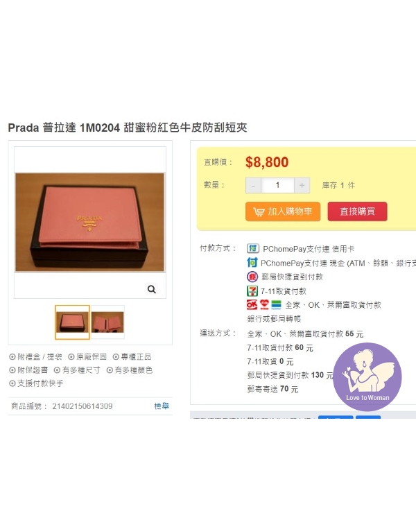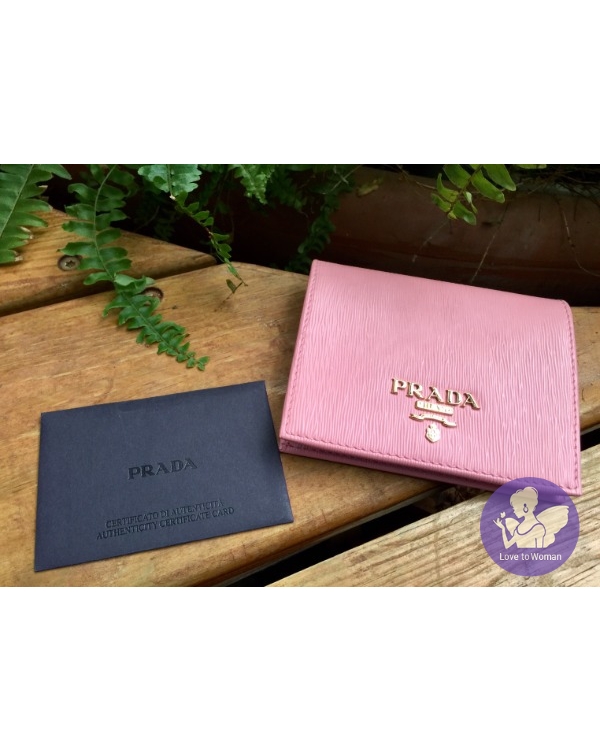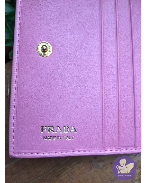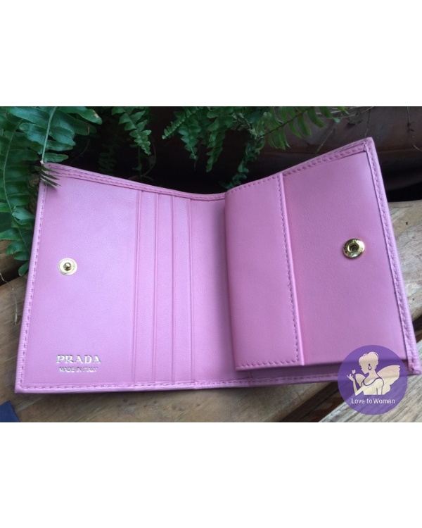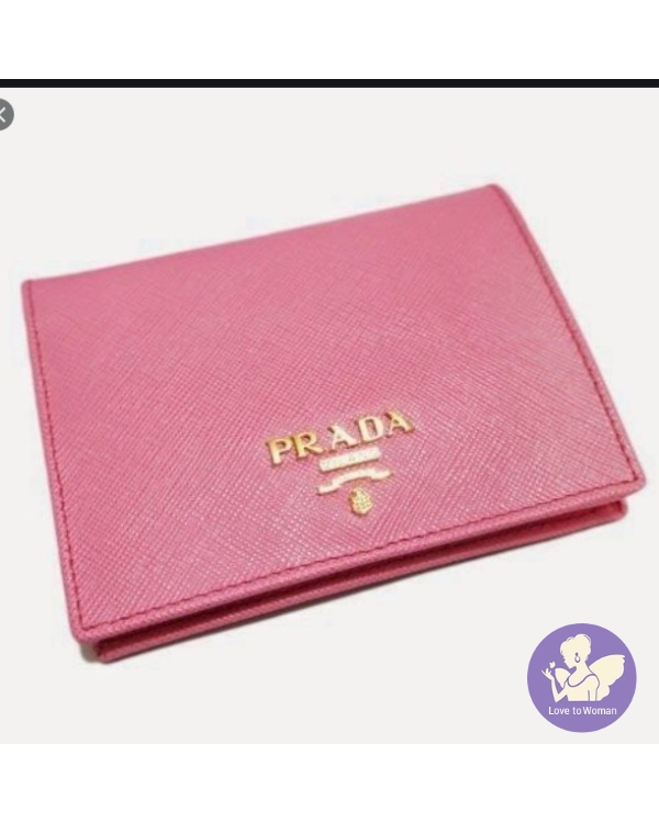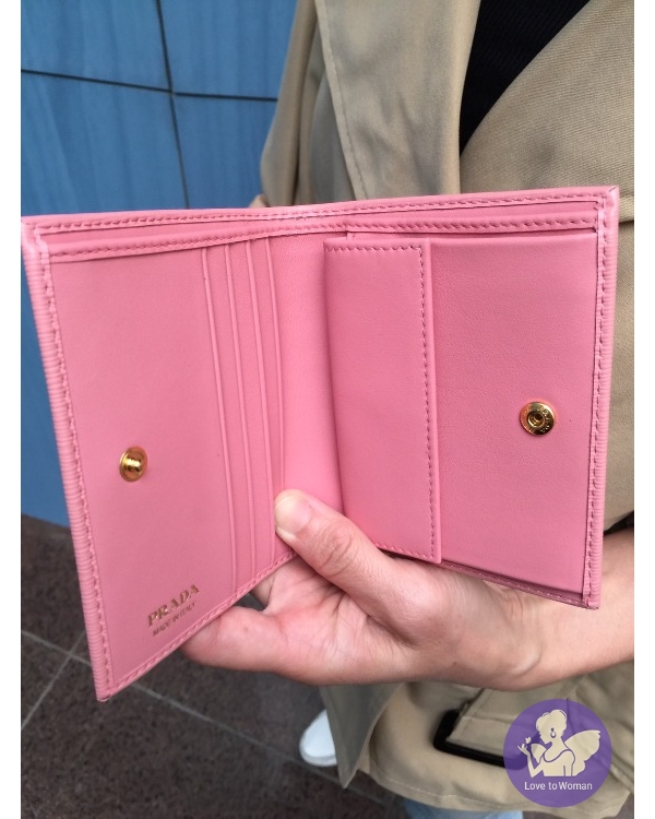 【商品名稱】Prada甜蜜粉紅色牛皮防刮短夾