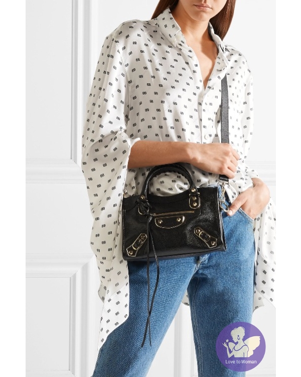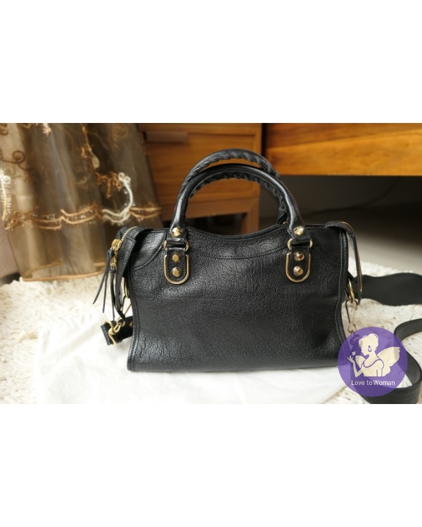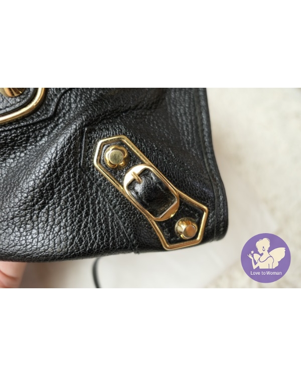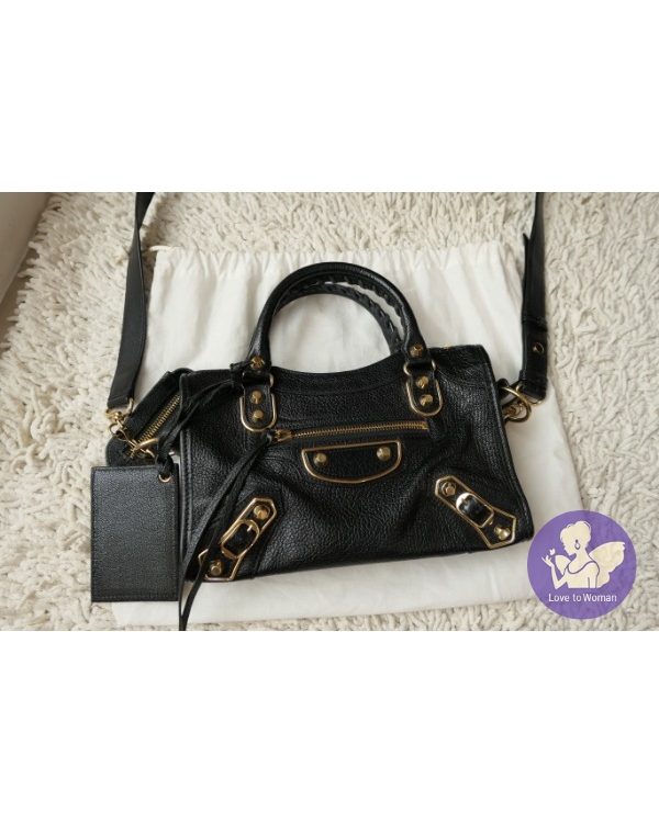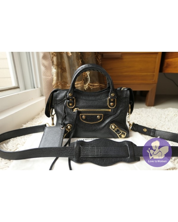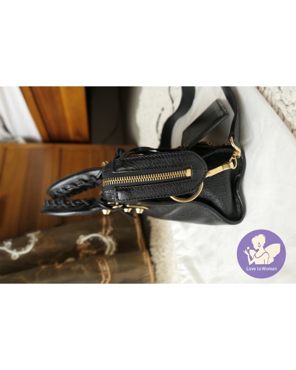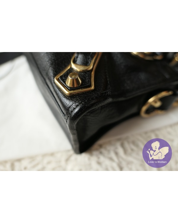 Balenciaga機車包 山羊皮EDGE MINI CITY 1000黑 (黑金)