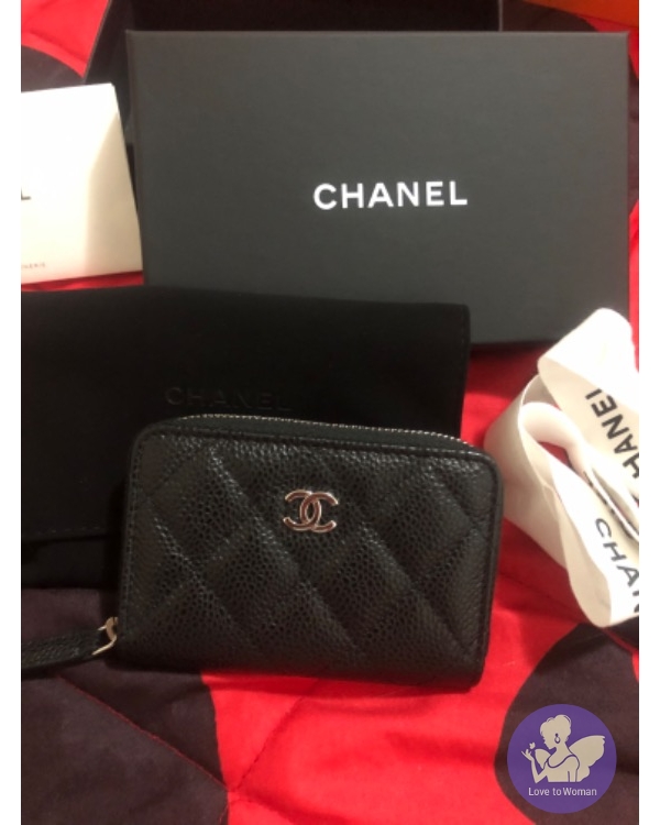 首頁 精品包包 全新香奈兒新款3層黑荔枝零錢包銀扣