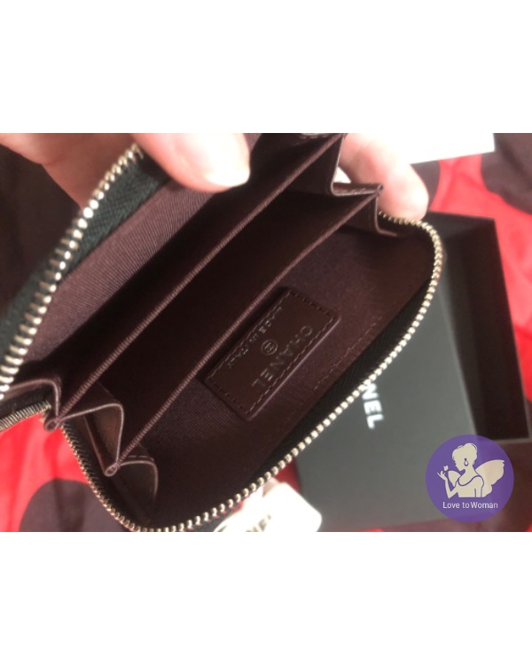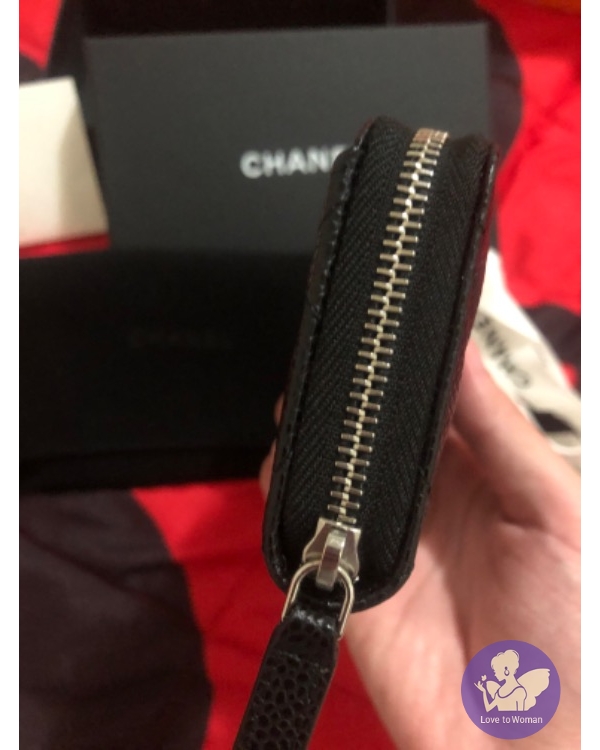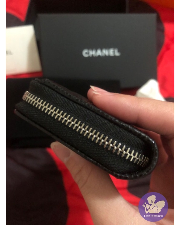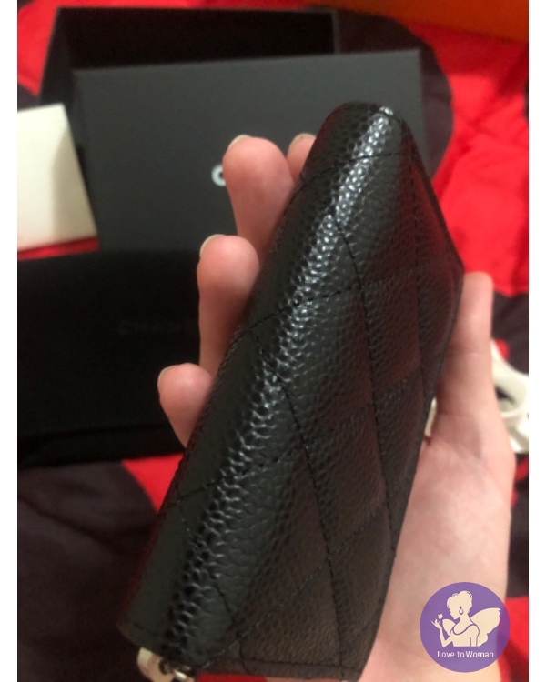 全新香奈兒新款3層黑荔枝零錢包銀扣