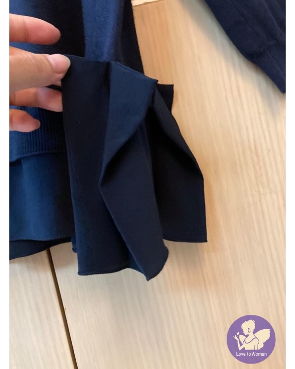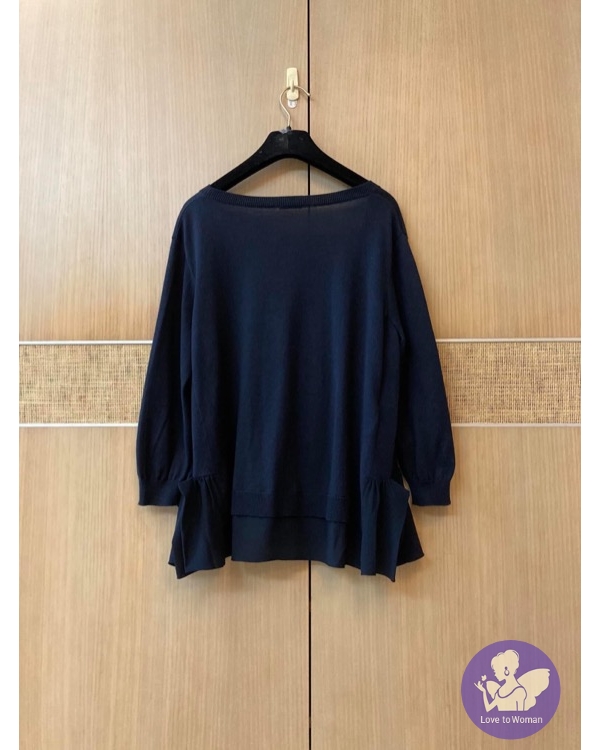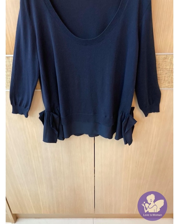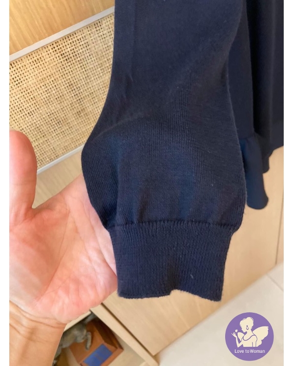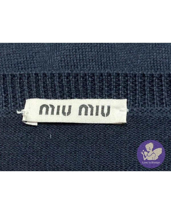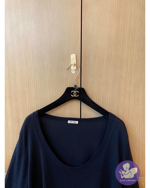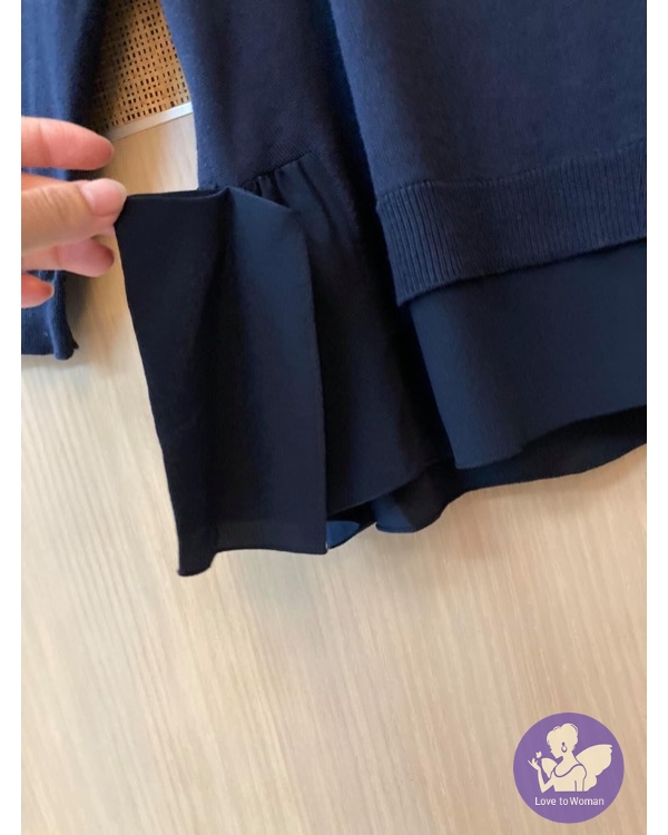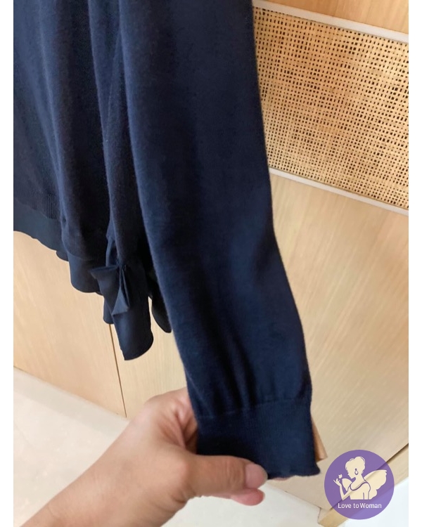 MIU MIU藍色針織下擺拼接紗質兩側皺折上衣購於專櫃購價約$21800穿過幾次尺寸42長61.5胸53.5落肩款 細緻的針織材質深藍色沈穩內斂下擺拼接紗質兩側皺折做出特別的垂墜感不論搭配長褲裙子都很好看喔 出清價$2680含運售出不退感謝辛苦管理員謝謝美女們推喔她團