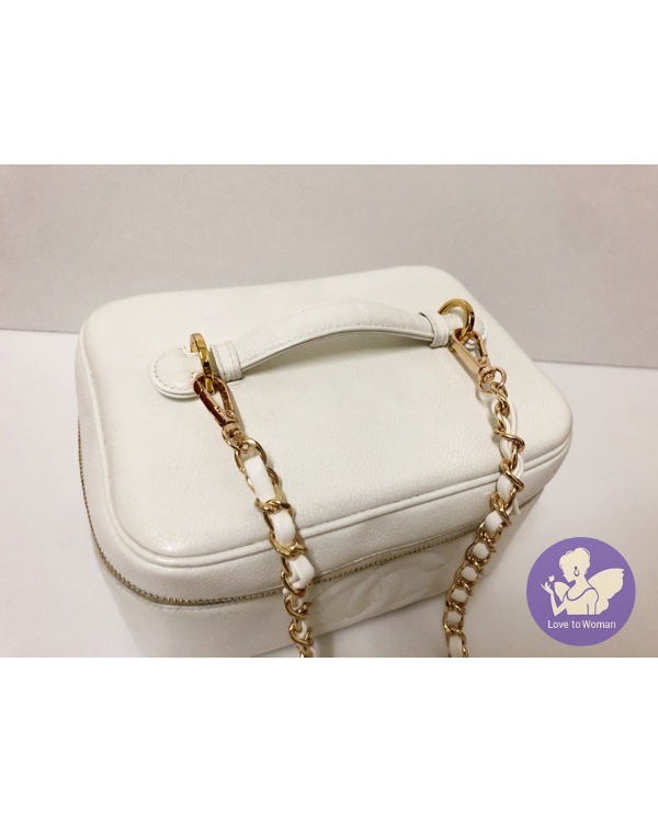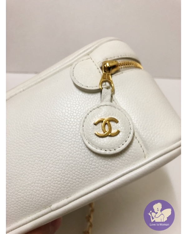 首頁 精品包包 ​Chanel 香奈兒 小香 經典老香 白色荔枝皮 化妝箱包 手提 肩背 斜背包✨